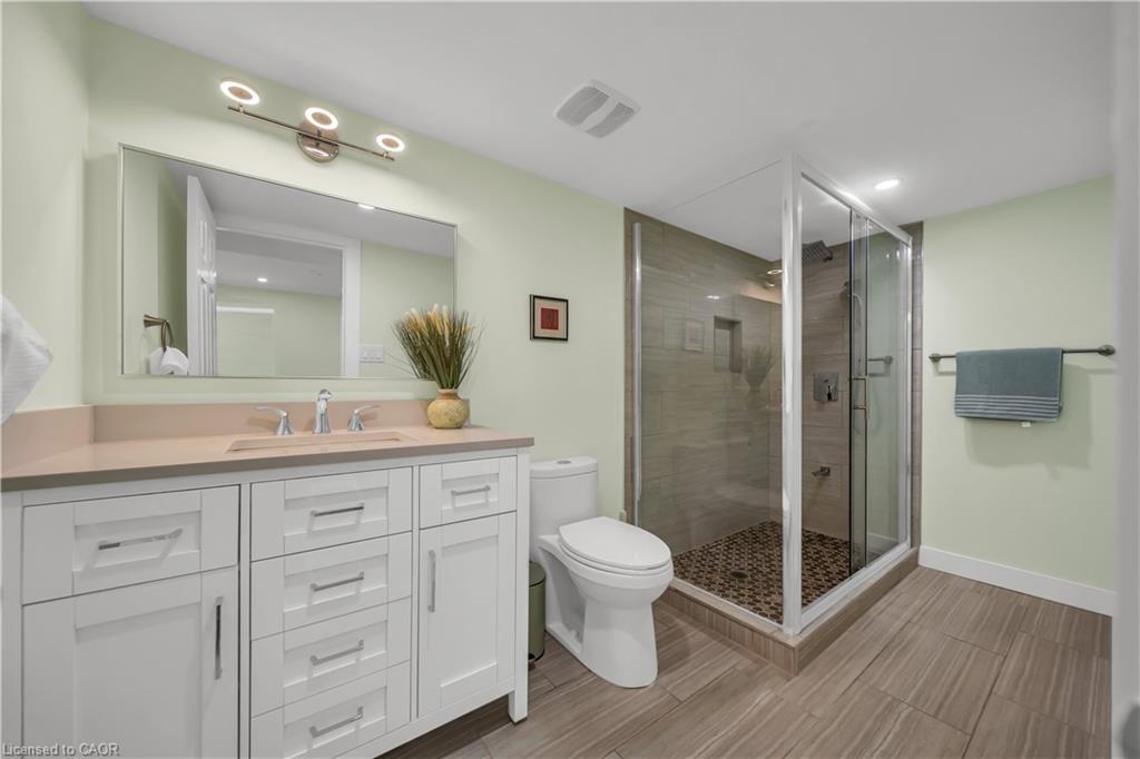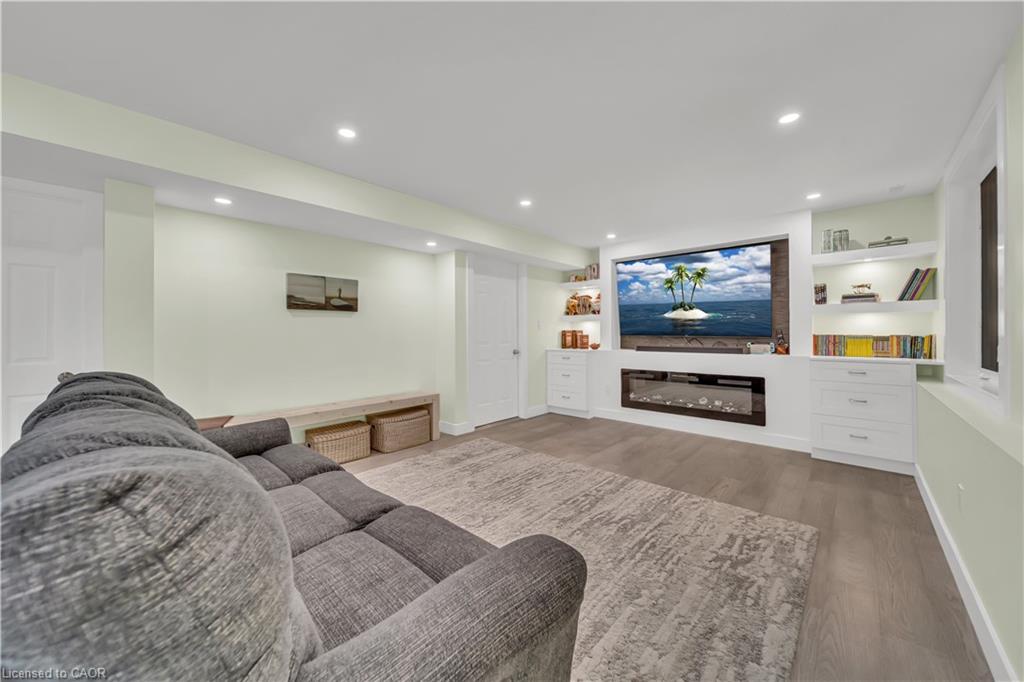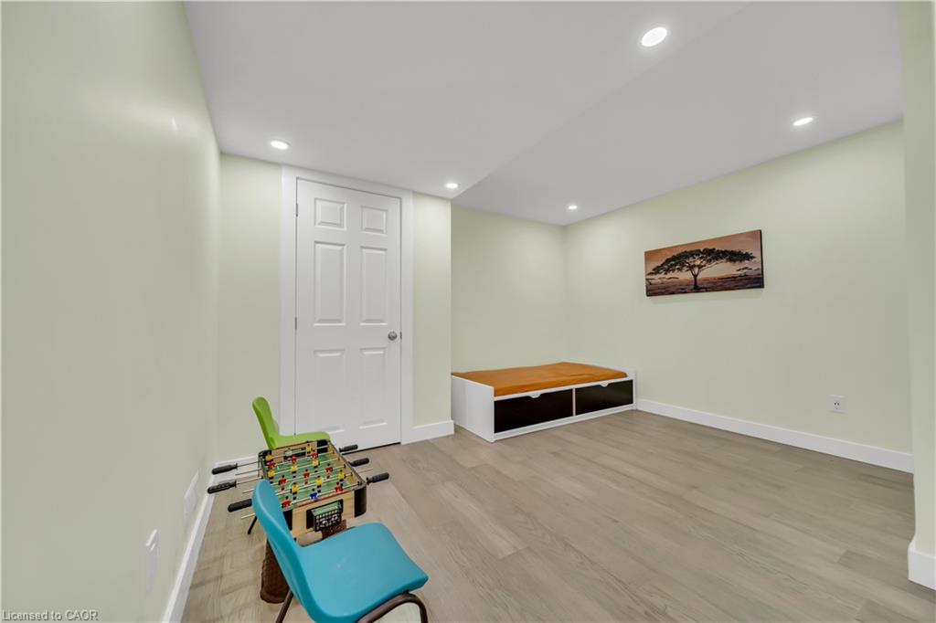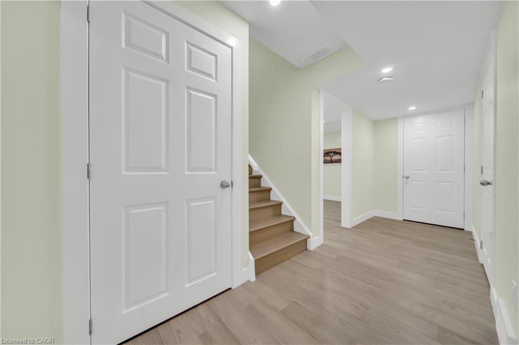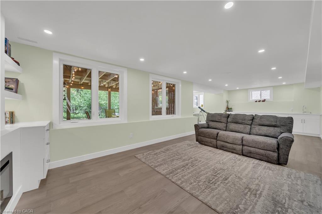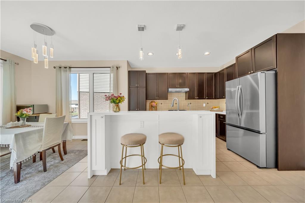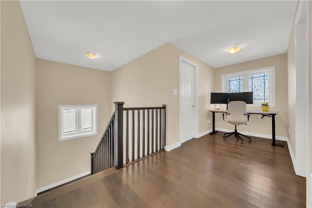 Welcome to 437 Zeller Drive, a rare gem nestled in the perfect family-friendly neighbourhood of Lackner Woods, Kitchener. This stunning home sits on a premium RAVINE LOT & offers a fully finished WALKOUT BASEMENT. Boasting parking for up to 4 vehicles (2-car garage + 2 driveway) & Exterior pot-lights surrounding the entire house. Step inside to a welcoming foyer overlooking a spacious MAIN FLOOR BEDROOM which can also be used as home office. The home features premium mirage hardwood floors throughout, 9-ft ceilings on the main floor & a bright, open-concept living area flooded with natural light. The upgraded kitchen, where you’ll find quartz countertops (renovated in 2022), SS Appliances (2024 fridge & dishwasher), stylish backsplash & ample cabinet space. The adjacent dining area overlooks the backyard(green space with matured trees) creating the perfect setting for hosting family dinners or entertaining guests. The main floor also includes a laundry room with custom cabinets & storage. The hardwood staircase leads to the upper level featuring 3 spacious bedrooms, 2 Full bathrooms & a versatile space that’s ideal for a home office or study area. Each bedroom includes custom closet organizers, Maximizing storage. The primary suite offers its own walk-in closet & luxurious ensuite with a 6’ soak in tub & walk in shower. Downstairs is fully finished walkout basement which is a showstopper in itself featuring Rec Room with an electric fireplace, large windows, kitchenette setup, 5th bedroom & modern 3pc bathroom with a glass shower. Additional updates include a new furnace (2024), AC (2023) & modernized features throughout. Step outside to enjoy your fully fenced backyard with NO REAR NEIGHBOUR, complete with a raised deck & patio, perfect for relaxation while enjoying the serene views. Located mins from the Grand River, Trails, top-rated schools & all essential amenities, this is not just a home, it’s a lifestyle. Don’t miss the opportunity, Book your showing today!