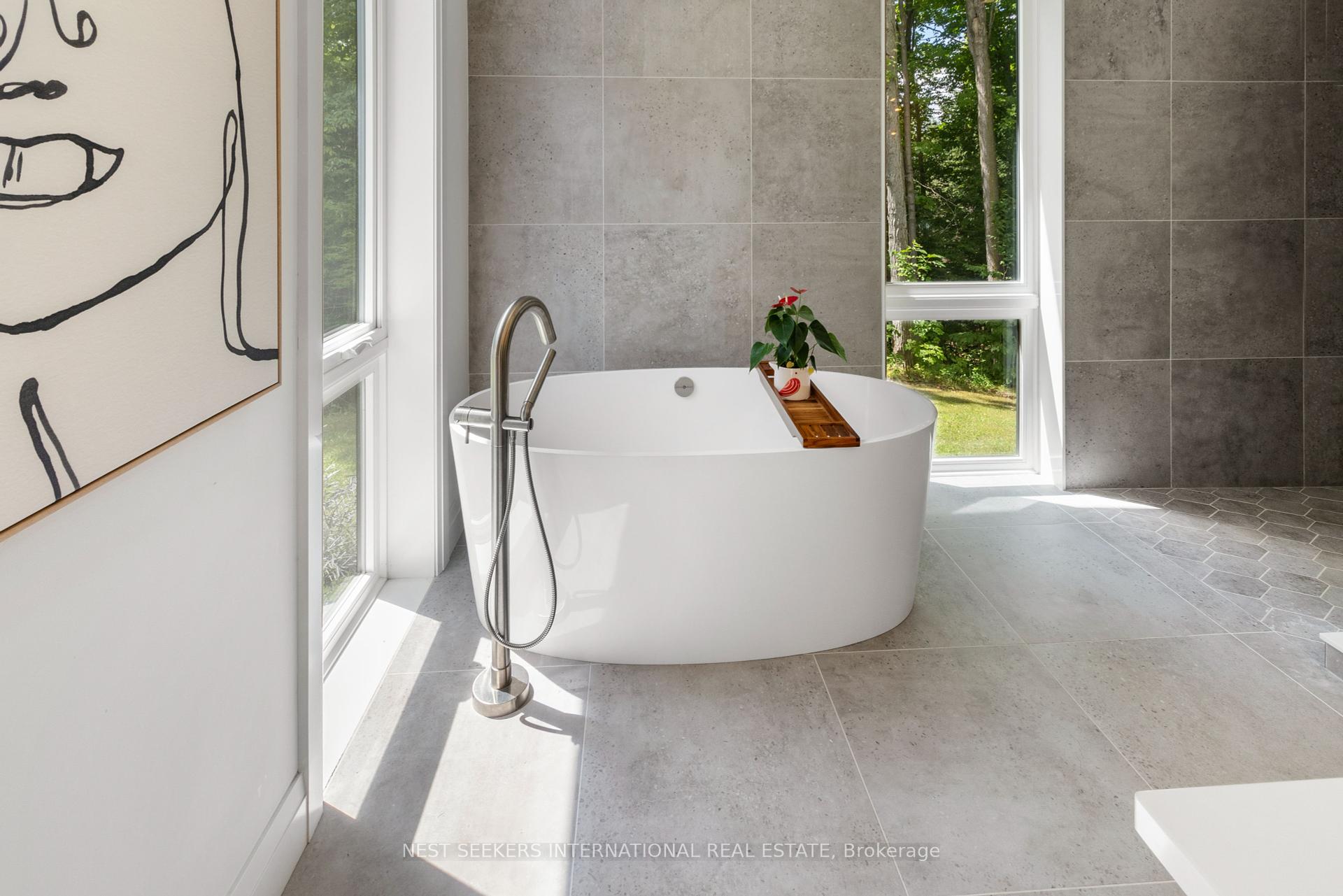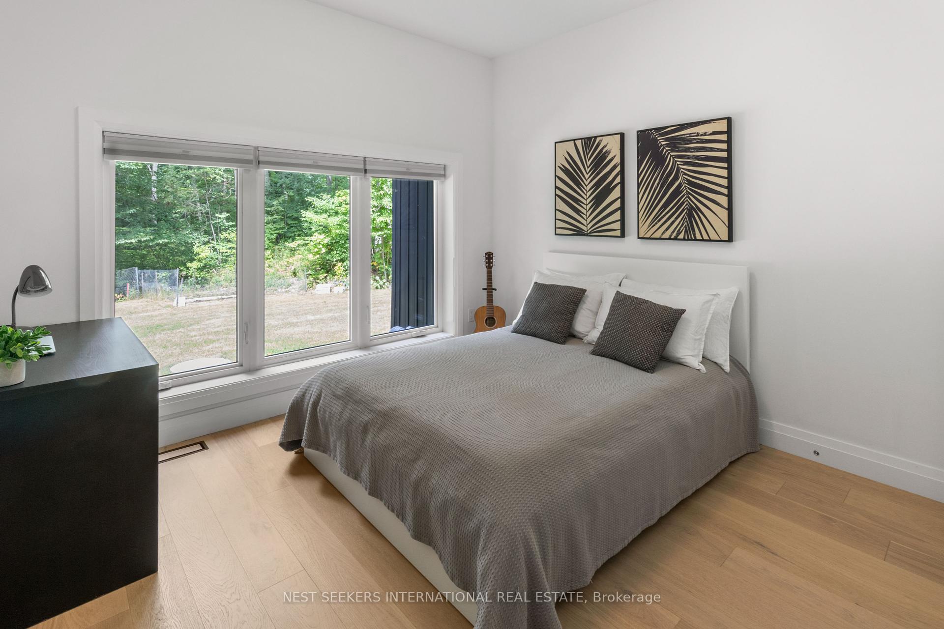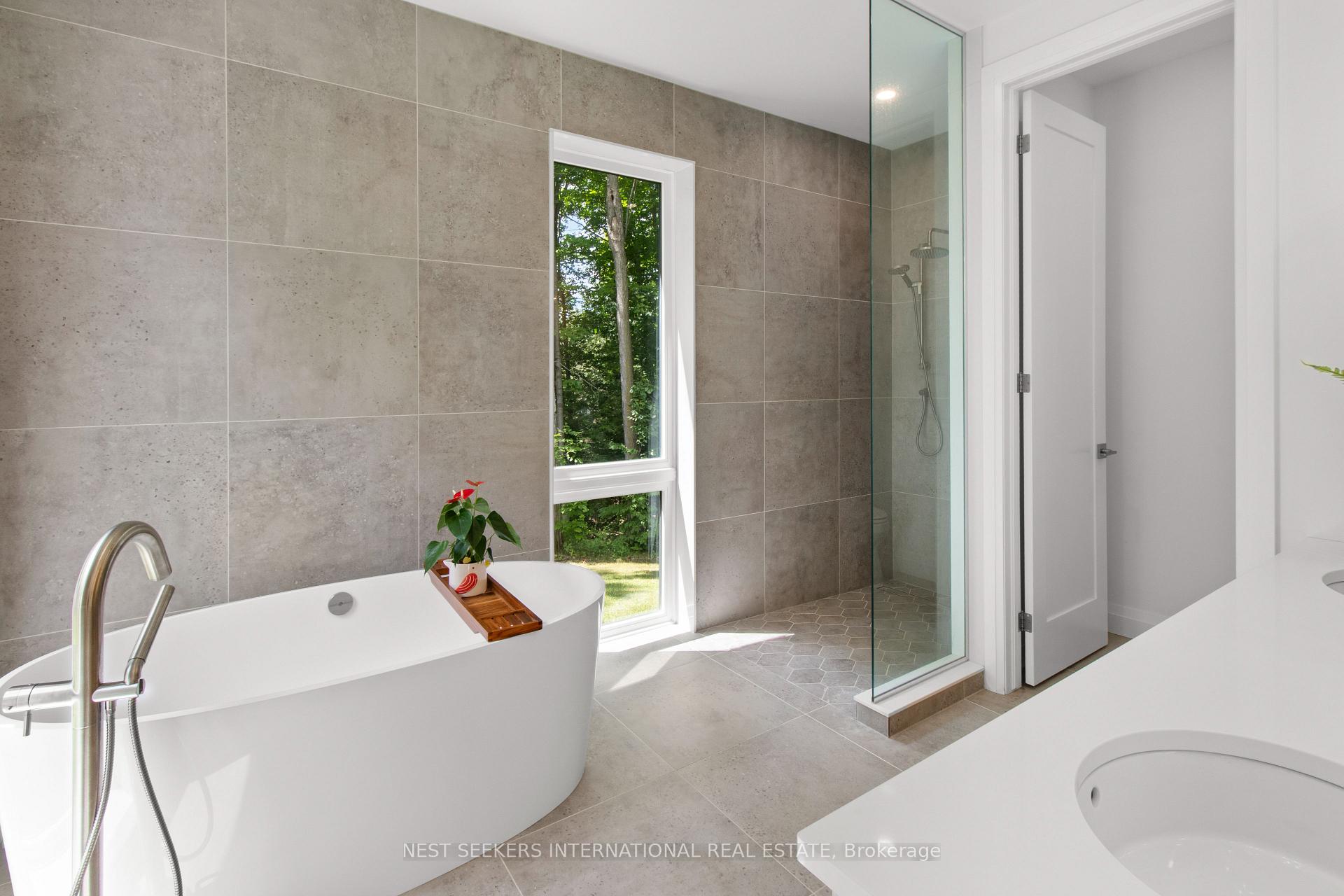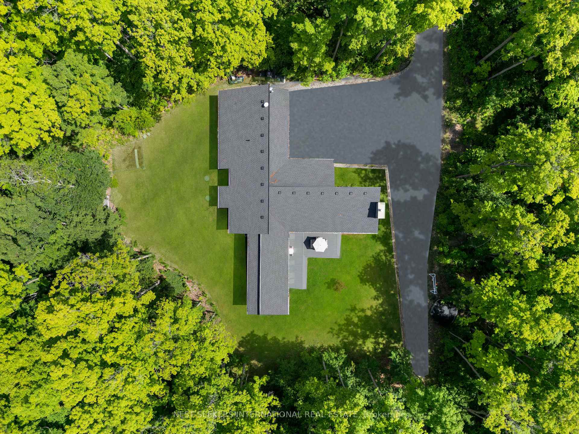 45 acres. Pure privacy. Scandinavian-inspired elegance. Just 10 minutes from Guelph, Milton & the 401 lies a custom 2021-built bungalow with nearly 3,000 SF of finished living space, in-law and income potential, and Tarion warranty protection accessed by a private laneway. Step inside and you are greeted by a proper foyer, mudroom with built-in bench and storage, then soaring 14 ft. vaulted ceilings and floor-to-ceiling windows that flood the home with woodland views. A sunken living room anchored by a wood-burning fireplace meets engineered oak floors and custom maple cabinetry, while the chefs kitchen shines with built-in appliances, quartz slab backsplashes, a paneled fridge, oversized island with extensive storage, and separate work-desk station. The primary ensuite is a retreat with double sinks, volcanic limestone tub, curbless dual shower, and a private water closet. Two more bedrooms share a spa-like 6-piece bath & a flex-space and powder room complete this floor. Downstairs, find in-law or guest suite capability with sound-proofing, bedroom, bath, office, and roughed-in kitchen plumbing plus 800 sq. ft. unfinished for your vision. Outdoors, the lifestyle is unmatched: fresh water from your own private well, kilometres of private trails, chicken coop, vegetable garden, fire-pit, and multiple entertaining spaces including a composite deck and covered aggregate porch – PLUS a bunkie with its own firepit and outhouse a short ATV ride away. Agriculturally zoned with Managed Forestry Program benefits, you enjoy remarkably low taxes. An oversized garage stores vehicles and recreational toys alike, while a full air exchange and UV water and filtration system elevate comfort. Be a part of the family-focused hamlet of Aberfoyle that has an excellent school, library, sports park and plenty of yearly events to gather the community. The kind of place where the world disappears the second you arrive, space for a pool & endless potential to create the ultimate paradise.