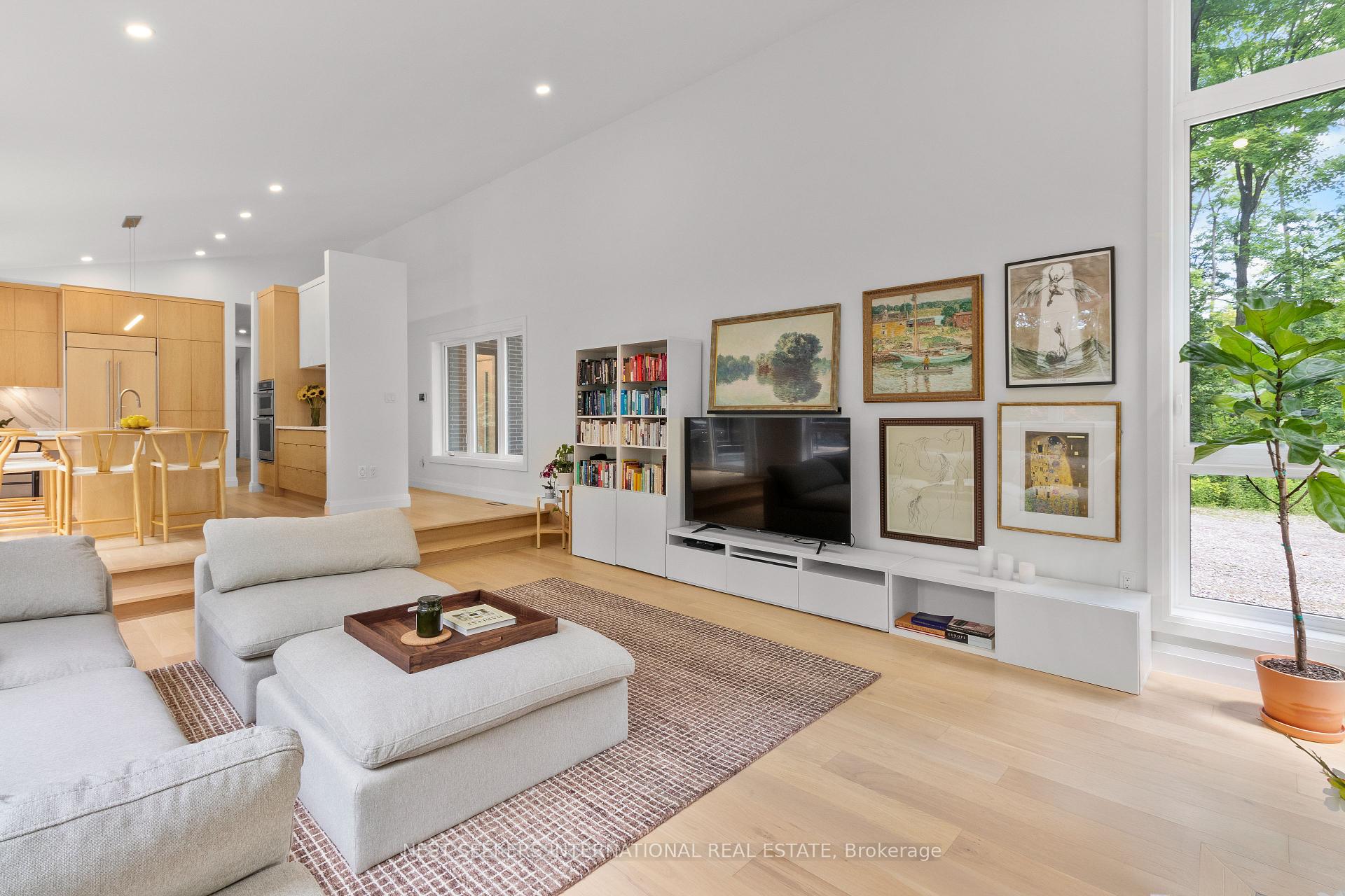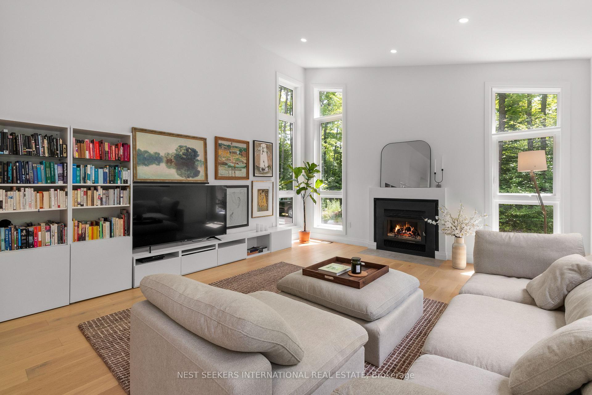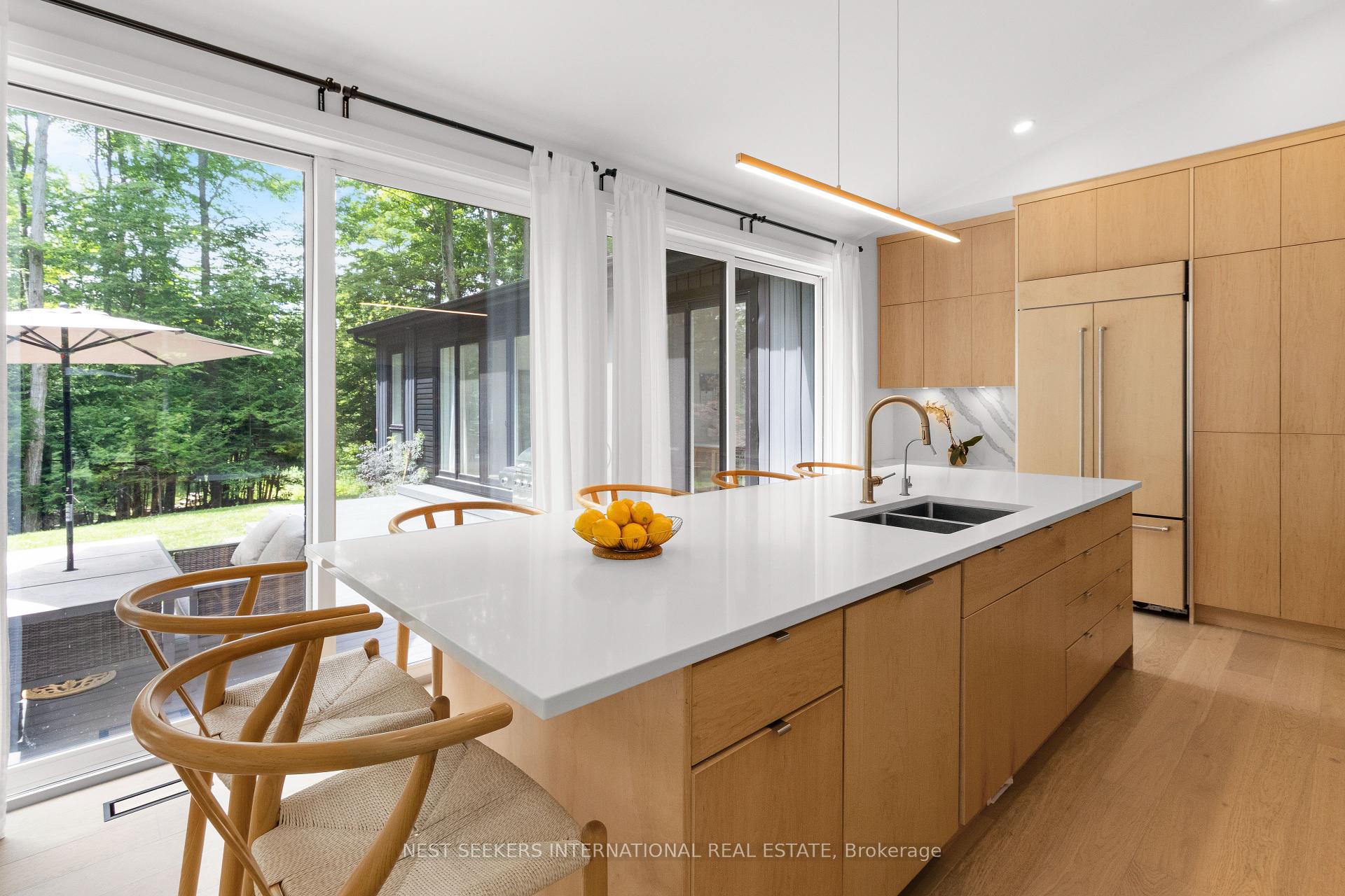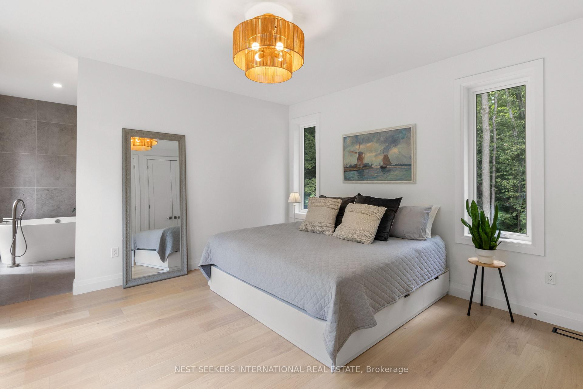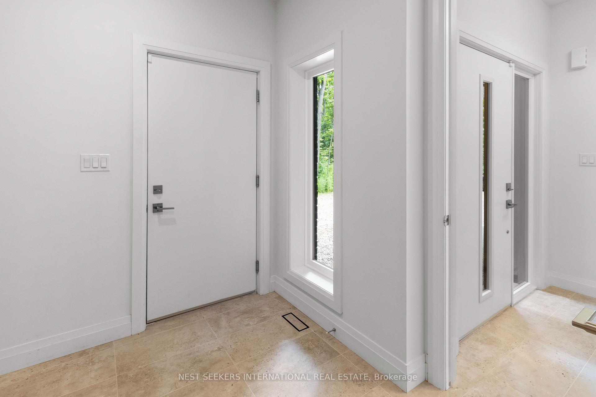 45 acres. Pure privacy. Scandinavian-inspired elegance. Just 10 minutes from Guelph, Milton & the 401 lies a custom 2021-built bungalow with nearly 3,000 SF of finished living space, in-law and income potential, and Tarion warranty protection accessed by a private laneway. Step inside and you are greeted by a proper foyer, mudroom with built-in bench and storage, then soaring 14 ft. vaulted ceilings and floor-to-ceiling windows that flood the home with woodland views. A sunken living room anchored by a wood-burning fireplace meets engineered oak floors and custom maple cabinetry, while the chefs kitchen shines with built-in appliances, quartz slab backsplashes, a paneled fridge, oversized island with extensive storage, and separate work-desk station. The primary ensuite is a retreat with double sinks, volcanic limestone tub, curbless dual shower, and a private water closet. Two more bedrooms share a spa-like 6-piece bath & a flex-space and powder room complete this floor. Downstairs, find in-law or guest suite capability with sound-proofing, bedroom, bath, office, and roughed-in kitchen plumbing plus 800 sq. ft. unfinished for your vision. Outdoors, the lifestyle is unmatched: fresh water from your own private well, kilometres of private trails, chicken coop, vegetable garden, fire-pit, and multiple entertaining spaces including a composite deck and covered aggregate porch – PLUS a bunkie with its own firepit and outhouse a short ATV ride away. Agriculturally zoned with Managed Forestry Program benefits, you enjoy remarkably low taxes. An oversized garage stores vehicles and recreational toys alike, while a full air exchange and UV water and filtration system elevate comfort. Be a part of the family-focused hamlet of Aberfoyle that has an excellent school, library, sports park and plenty of yearly events to gather the community. The kind of place where the world disappears the second you arrive, space for a pool & endless potential to create the ultimate paradise.