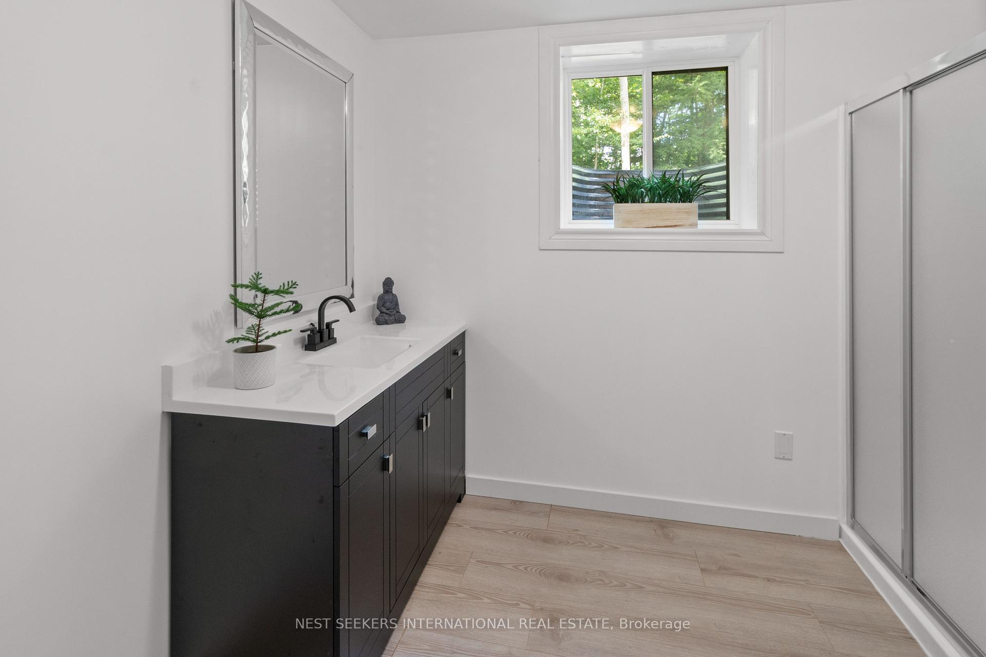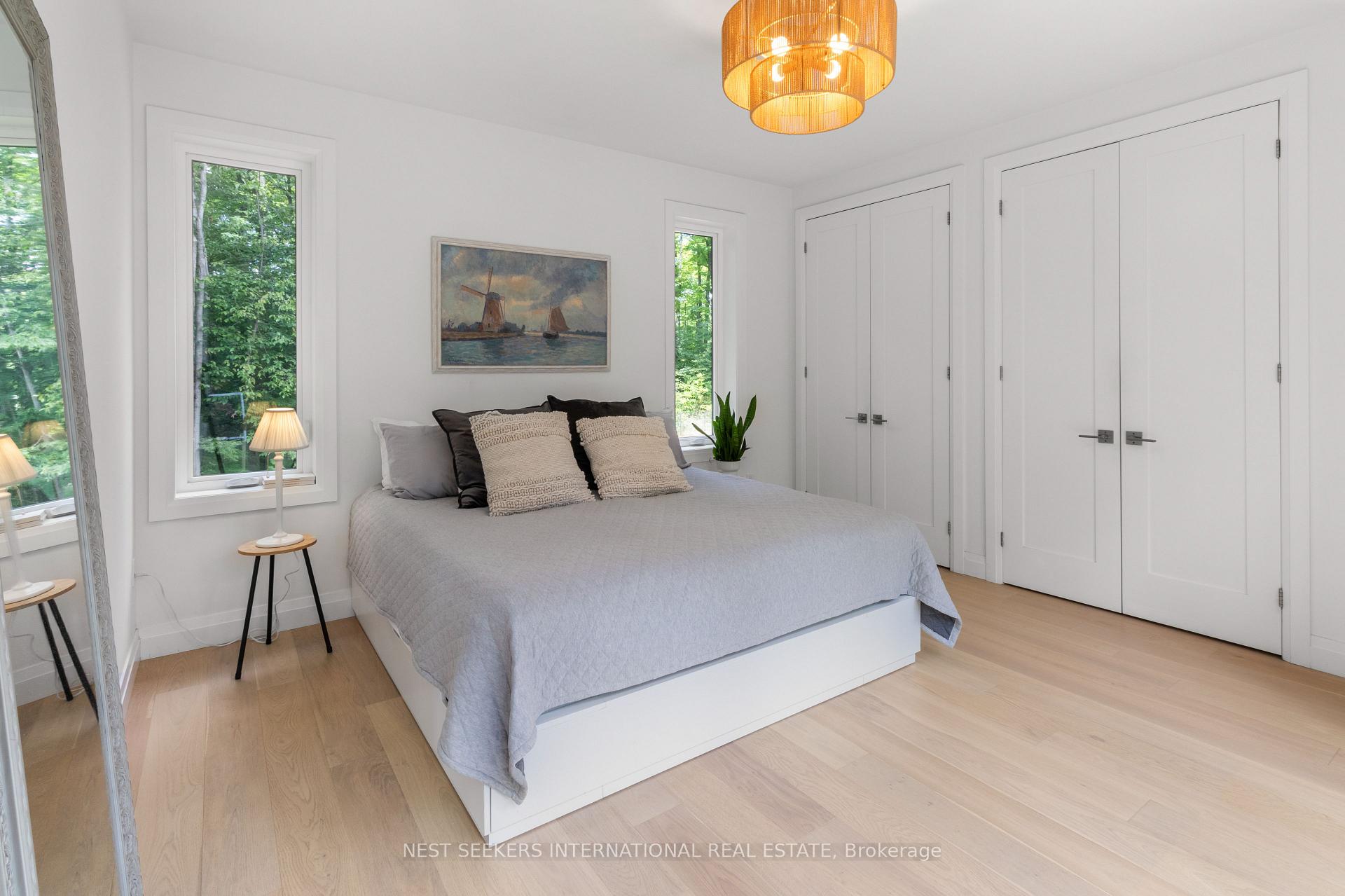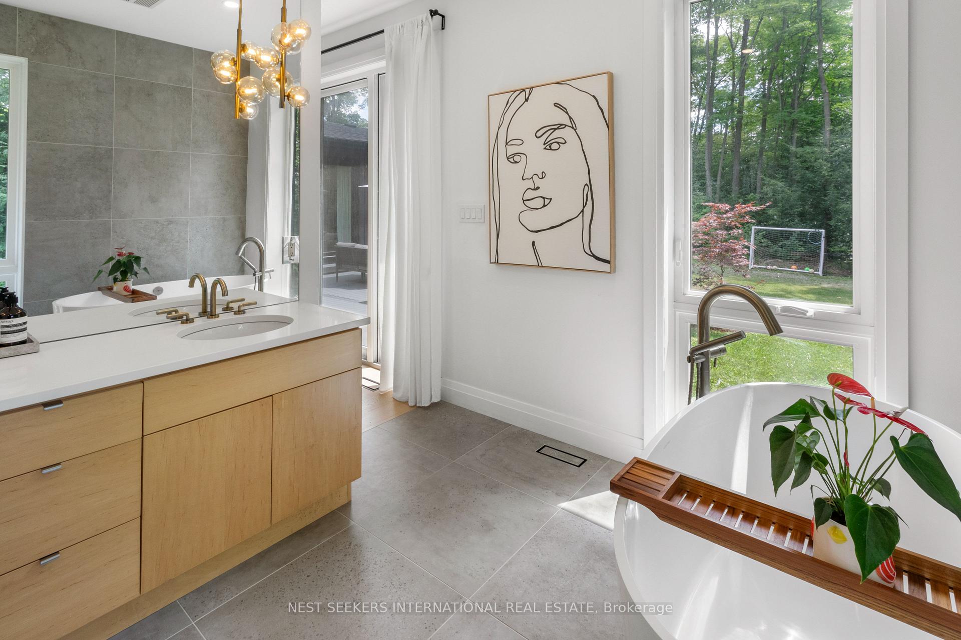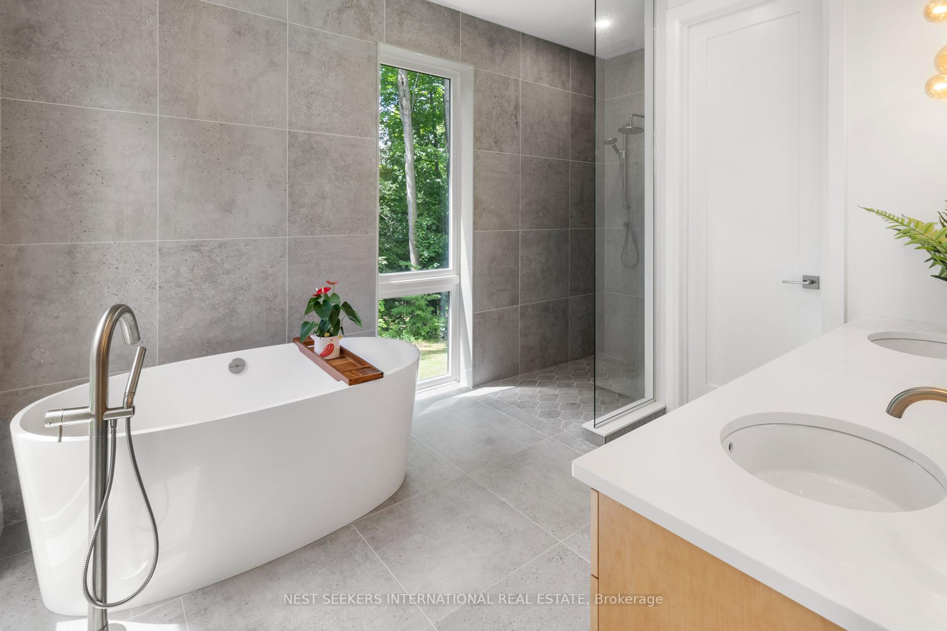 45 acres. Pure privacy. Scandinavian-inspired elegance. Just 10 minutes from Guelph, Milton & the 401 lies a custom 2021-built bungalow with nearly 3,000 SF of finished living space, in-law and income potential, and Tarion warranty protection accessed by a private laneway. Step inside and you are greeted by a proper foyer, mudroom with built-in bench and storage, then soaring 14 ft. vaulted ceilings and floor-to-ceiling windows that flood the home with woodland views. A sunken living room anchored by a wood-burning fireplace meets engineered oak floors and custom maple cabinetry, while the chefs kitchen shines with built-in appliances, quartz slab backsplashes, a paneled fridge, oversized island with extensive storage, and separate work-desk station. The primary ensuite is a retreat with double sinks, volcanic limestone tub, curbless dual shower, and a private water closet. Two more bedrooms share a spa-like 6-piece bath & a flex-space and powder room complete this floor. Downstairs, find in-law or guest suite capability with sound-proofing, bedroom, bath, office, and roughed-in kitchen plumbing plus 800 sq. ft. unfinished for your vision. Outdoors, the lifestyle is unmatched: fresh water from your own private well, kilometres of private trails, chicken coop, vegetable garden, fire-pit, and multiple entertaining spaces including a composite deck and covered aggregate porch – PLUS a bunkie with its own firepit and outhouse a short ATV ride away. Agriculturally zoned with Managed Forestry Program benefits, you enjoy remarkably low taxes. An oversized garage stores vehicles and recreational toys alike, while a full air exchange and UV water and filtration system elevate comfort. Be a part of the family-focused hamlet of Aberfoyle that has an excellent school, library, sports park and plenty of yearly events to gather the community. The kind of place where the world disappears the second you arrive, space for a pool & endless potential to create the ultimate paradise.