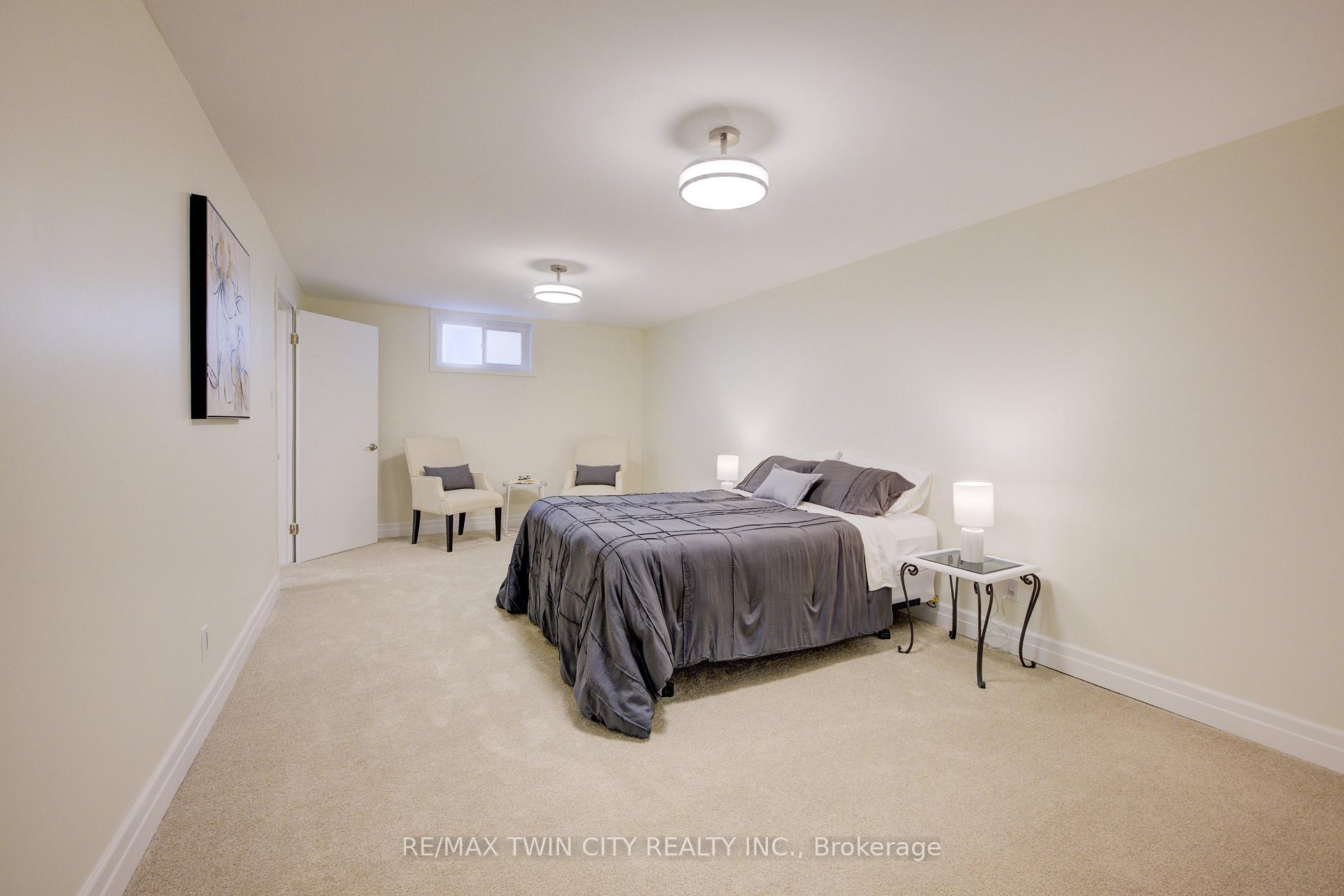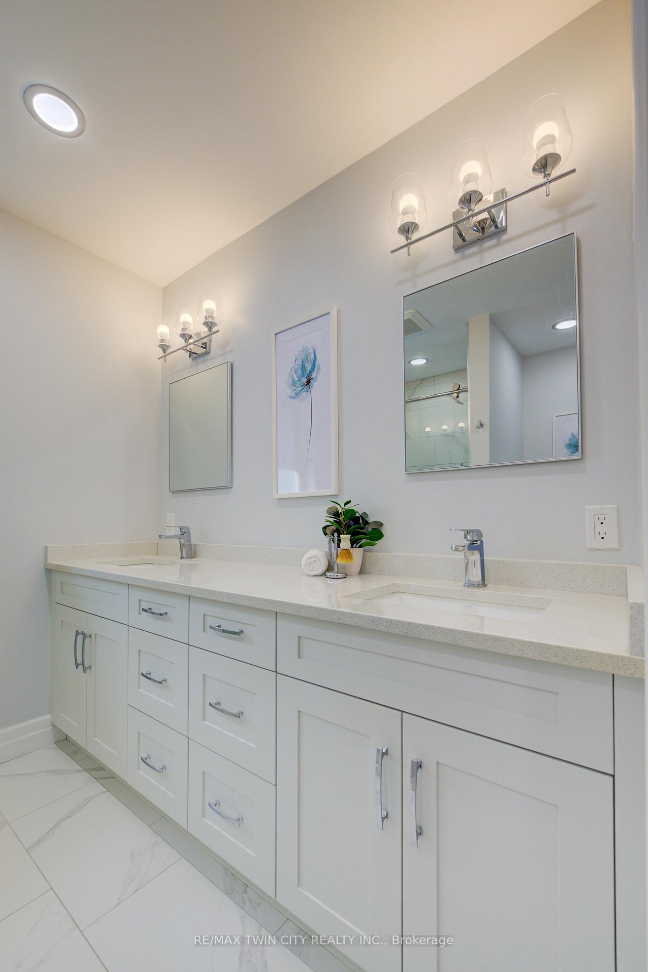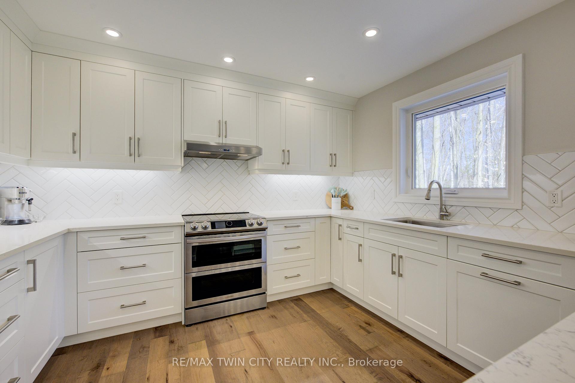 Rare Opportunity Bungalow With Over 3,000 Sq Ft of Living Space in the Desirable North Lakeshore neighbourhood that Backs onto Gorgeous Greenspace. Beautiful Hardwood throughout the Main Floor. Updated Spacious Kitchen includes Quartz Counters, Stainless Steel Appliances and a Large Pantry Cupboard. Living Room Features a Stunning Gas Fireplace and Beautiful Views. From the Eat-In Area You can Access a Large Deck Where You can Enjoy Nature in Your Own Backyard! The Dining Room is Separate. Large Main Bedroom has a Lovely Arch Window, Walk-in Closet and Updated 4 pc Ensuite with Double Sinks and Walk-In Shower. Main Floor also has Powder Room, 2 Large Bedrooms and a 4 pc Bath. Lower level is Newly Carpeted with a Big Bedroom and Updated 3 pc Bathroom. Huge Family Room is Full of Possibilities. Laundry Room has Handy 2nd Staircase to the 2 Car Garage. Walk or Bike on the trail behind Your House to St. Jacobs Market. This is Cottage Living in the City!!
