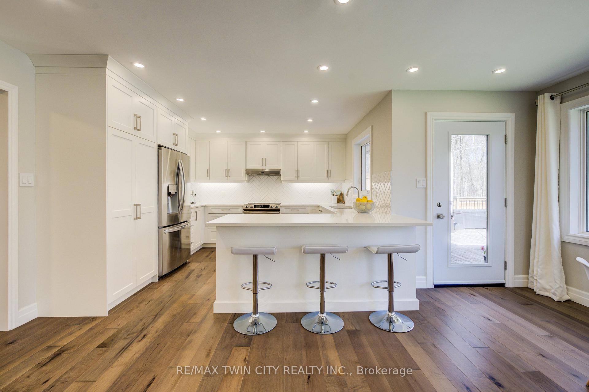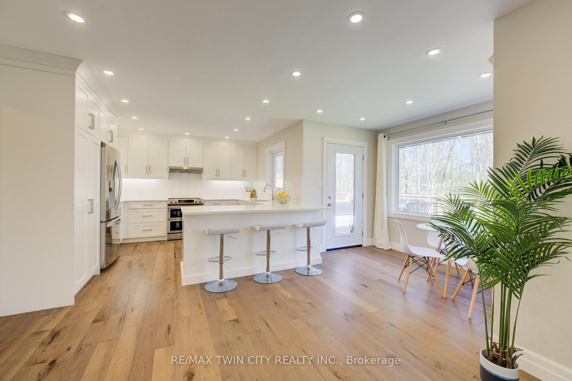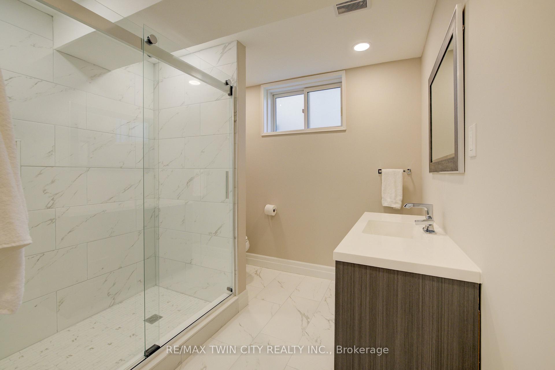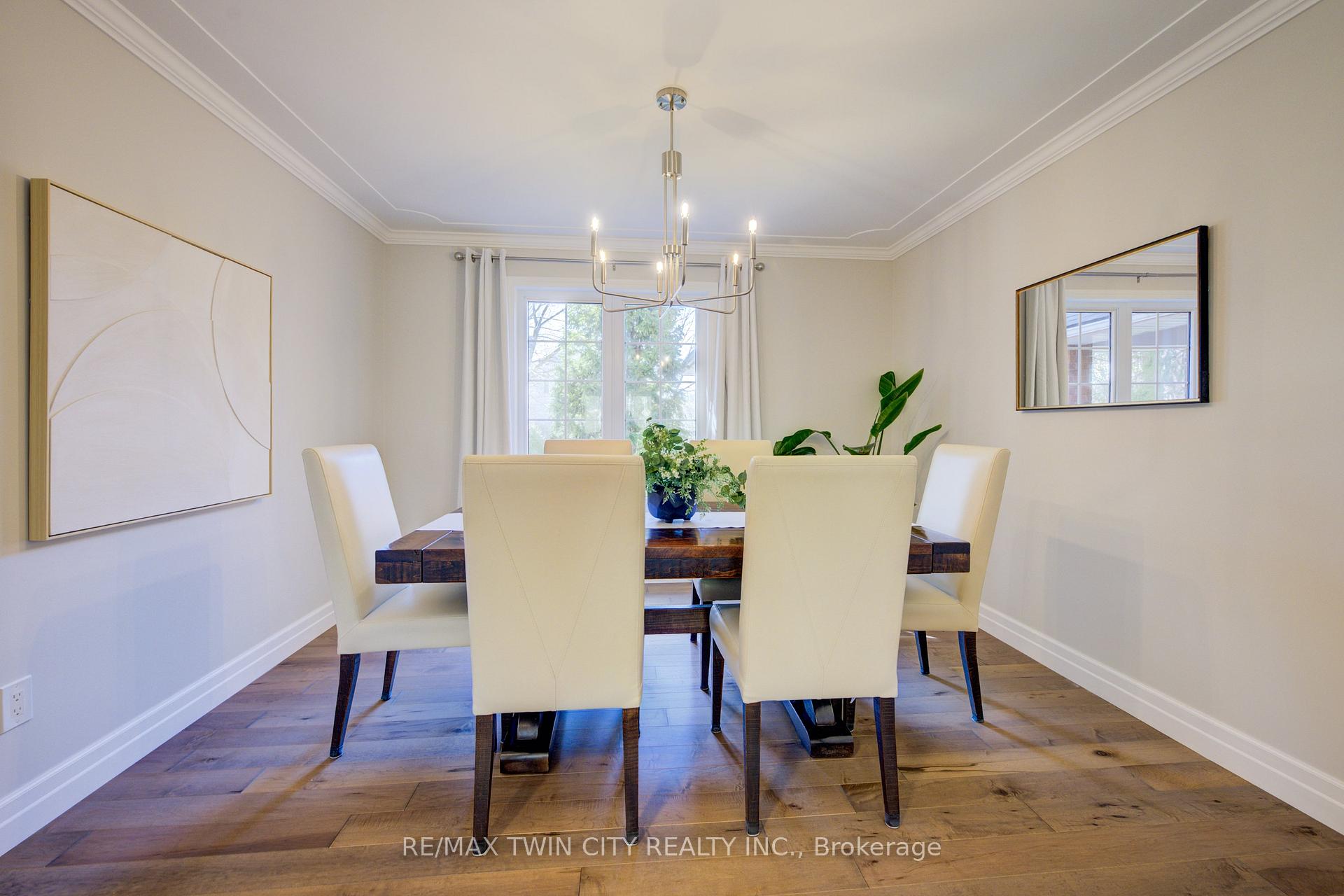 Rare Opportunity Bungalow With Over 3,000 Sq Ft of Living Space in the Desirable North Lakeshore neighbourhood that Backs onto Gorgeous Greenspace. Beautiful Hardwood throughout the Main Floor. Updated Spacious Kitchen includes Quartz Counters, Stainless Steel Appliances and a Large Pantry Cupboard. Living Room Features a Stunning Gas Fireplace and Beautiful Views. From the Eat-In Area You can Access a Large Deck Where You can Enjoy Nature in Your Own Backyard! The Dining Room is Separate. Large Main Bedroom has a Lovely Arch Window, Walk-in Closet and Updated 4 pc Ensuite with Double Sinks and Walk-In Shower. Main Floor also has Powder Room, 2 Large Bedrooms and a 4 pc Bath. Lower level is Newly Carpeted with a Big Bedroom and Updated 3 pc Bathroom. Huge Family Room is Full of Possibilities. Laundry Room has Handy 2nd Staircase to the 2 Car Garage. Walk or Bike on the trail behind Your House to St. Jacobs Market. This is Cottage Living in the City!!