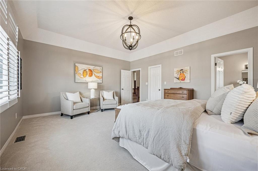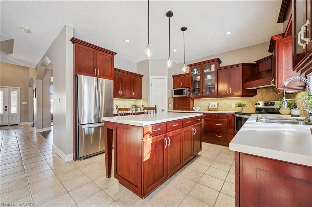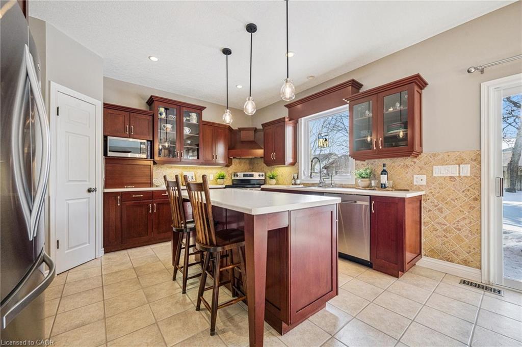 Welcome home to Executive Living on this Prestigious Crescent in Elmira! This exceptional two-story residence is offering 3,300 sq ft of beautifully finished living space, nestled on a quiet, estate-like crescent in the heart of Elmira — just minutes to Waterloo. Set on an impressive 53 x 135 ft lot, this 5 bed, 4 bath home delivers the perfect balance of elegance, space, and modern updates — ideal for growing families and those who love to entertain. From the moment you arrive, the curb appeal is undeniable. Recently redone stucco, a newer roof, manicured landscaping, and a mature streetscape create a distinguished first impression. The double-car garage and spacious driveway offer convenience and functionality for busy households. Inside, the home has been refreshed with newly painted interiors, updated flooring, and modern light fixtures that elevate every room. The generous principal spaces offer both openness and warmth — perfect for everyday living and hosting alike. Enjoy 4 bedrooms on the second level with Laundry and an oversized primary suite and bath. The finished basement provides incredible flexibility, whether you envision a recreation room, home gym, office space, or guest retreat with a walk up staircase . Step outside to your private backyard oasis. The interlocking patio creates a stunning entertaining space surrounded by mature trees and lush landscaping, supported by a full irrigation system to keep everything vibrant and low-maintenance. This home is Located in one of Elmira’s most desirable settings and is move in ready. Upgrades include Paint (22) Flooring and carpet (22) lighting(22) Stucco (25) roof (19) new front door (21)