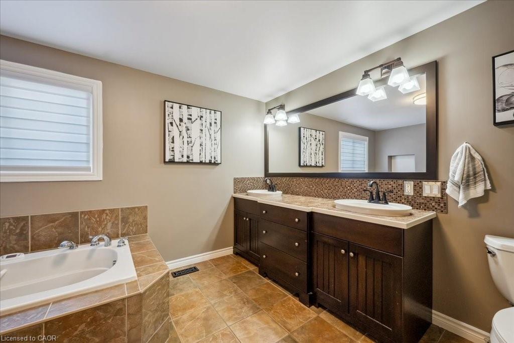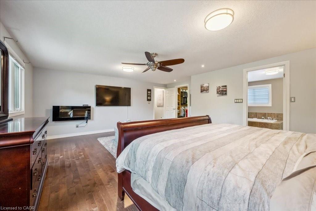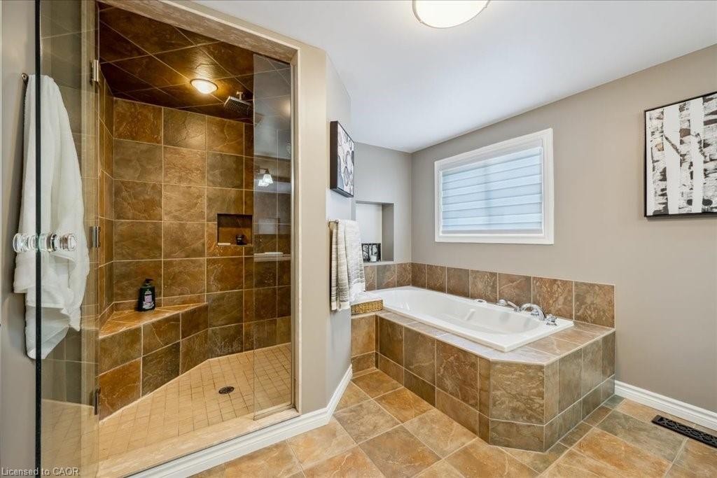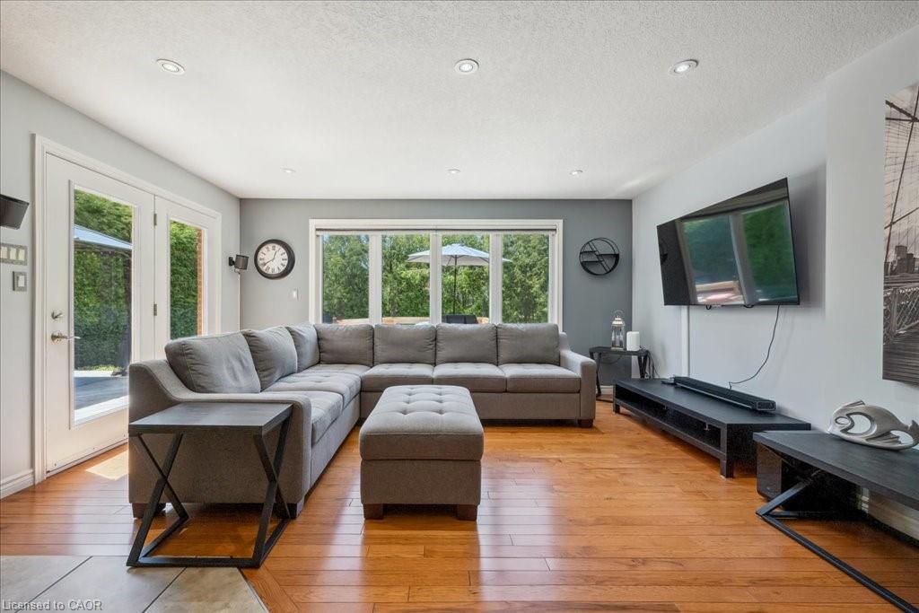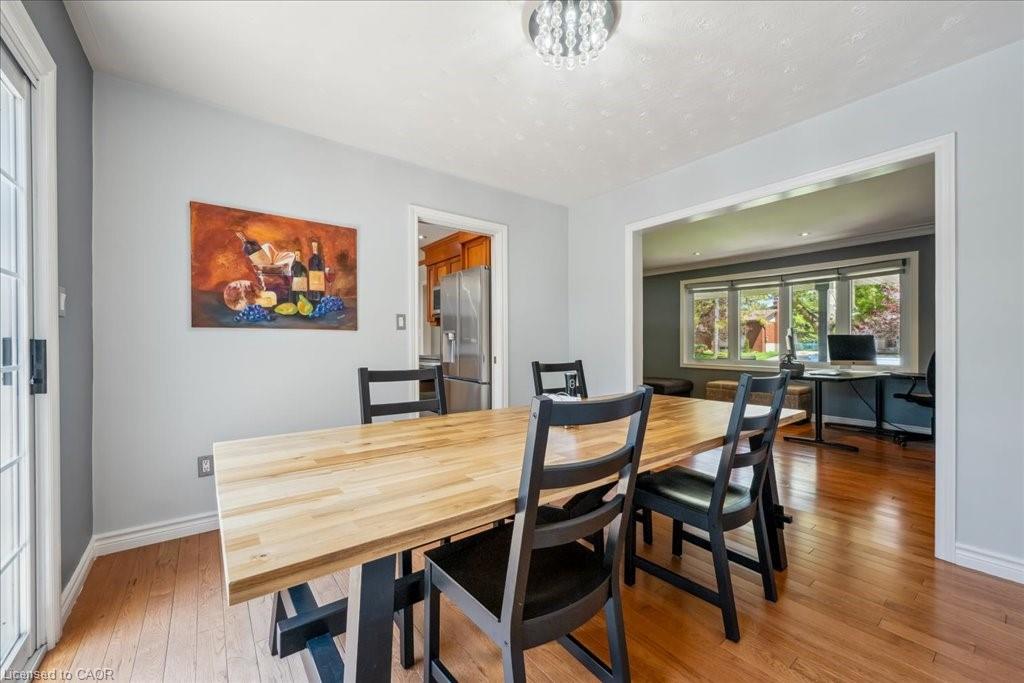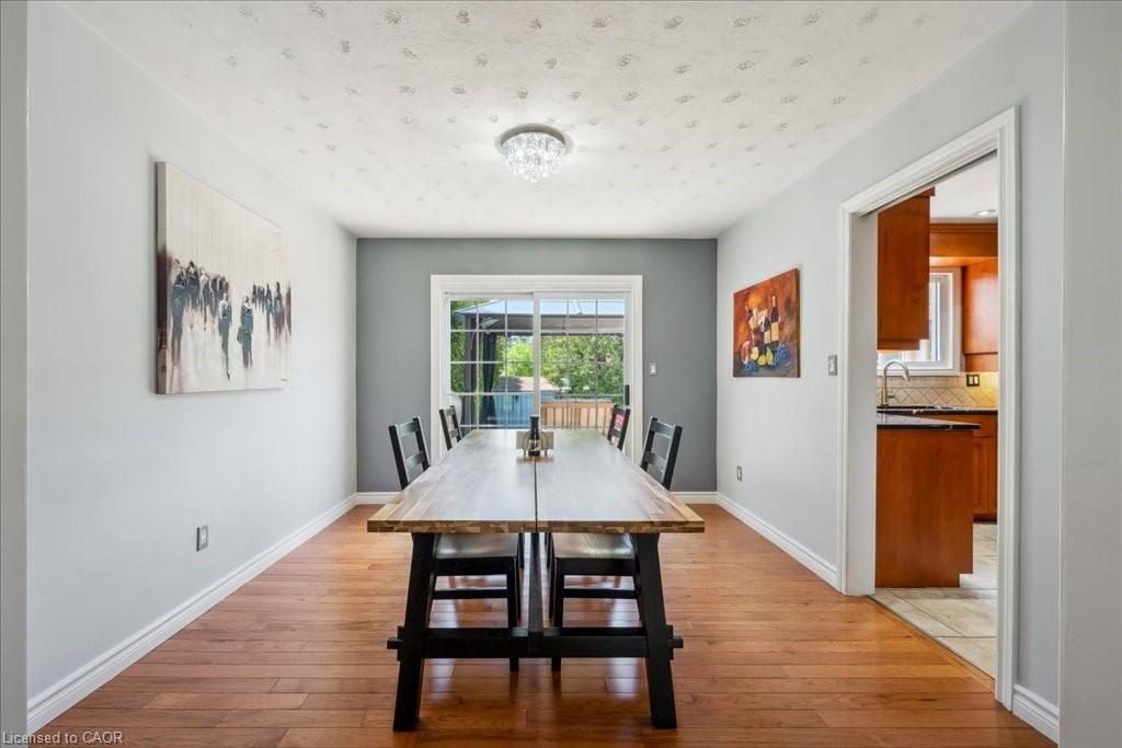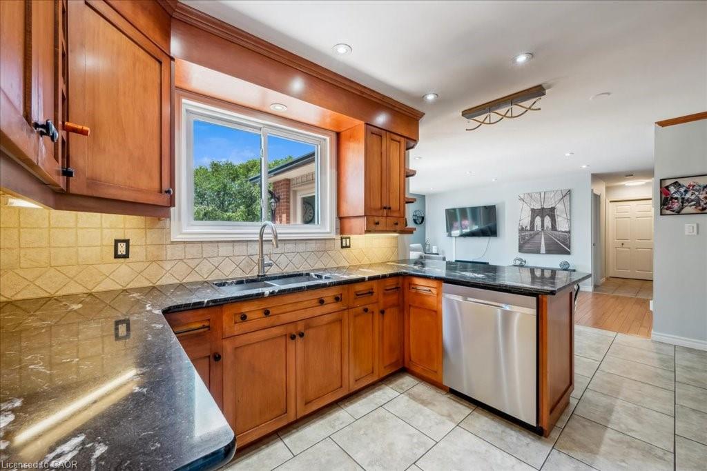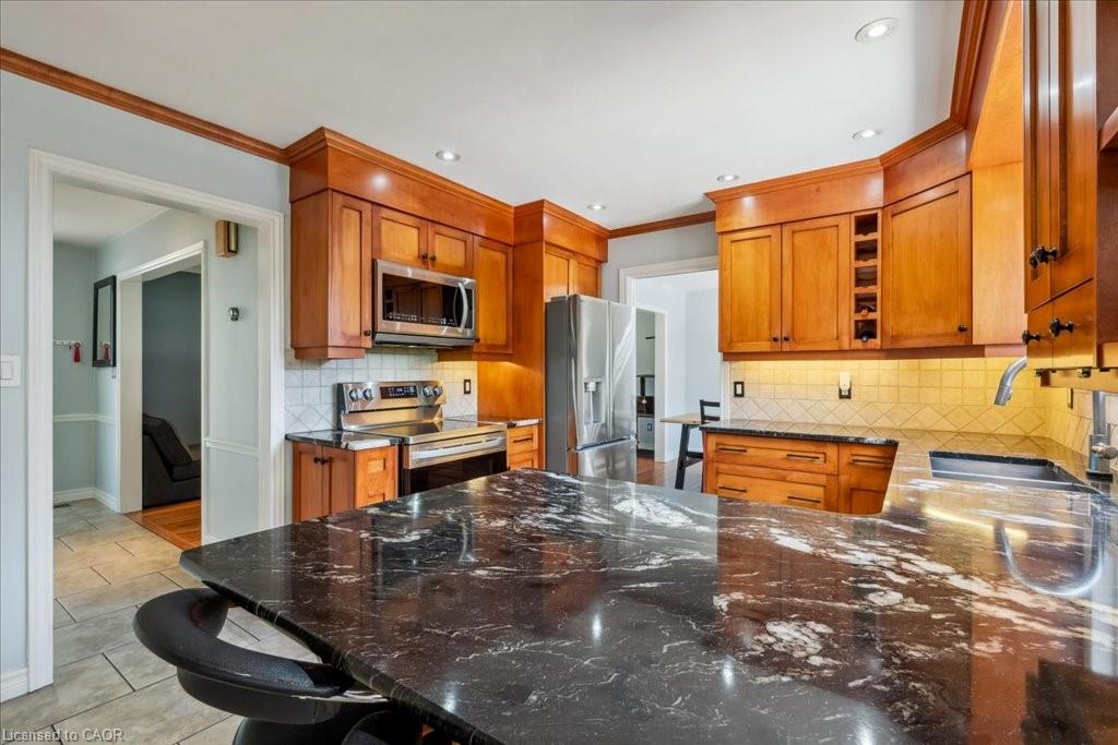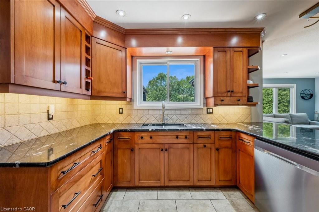 Welcome to Your Private Paradise in East Guelph! Tucked away in a beautiful, mature, and quiet neighbourhood, this exceptional 4+1 bedroom, 3-bathroom home offers over 2,500 sq ft of well-designed living space – inside and out. The backyard oasis is truly something special. Surrounded by tall trees for complete privacy, it features a heated in-ground saltwater pool, hot tub, a fully lit deck, elegant stone patio, fire pit lounge with privacy fencing, and a pool house/storage shed. Whether you’re hosting or relaxing solo, this space delivers. Inside, the heart of the home is a custom Barzotti kitchen, paired with new premium stainless steel appliances – a standout combination of craftsmanship and functionality. The main floor also offers a formal living and dining room, a cozy family room with backyard views, two walkouts, and LED lighting throughout. Upstairs, you’ll find four generous bedrooms and a bright upper-level laundry room. The primary suite features a spa-like ensuite with an air tub, walk-in closets, and custom cabinetry. The finished basement includes a gas fire place, large rec room, and a dedicated craft room, plus ample storage. The double garage is wired for a workshop with multiple 250V outlets perfect for serious projects and EV chargers. Additional highlights include: Barzotti cabinetry and granite counters. Newer pool liner. Newer roof. Carpet free – except for stairs. New window treatments. New entry doors and insulated garage door. Finished garage interior with new epoxy flooring. Upgraded attic insulation. Closet built-ins. Owned previously by a well-known home inspector and electrician. Plus much more! Easy access to Guelph Lake, sports facilities, parks, trails, schools, and all major amenities. This home has been thoughtfully upgraded with quality you can feel and trust! Book your private showing today. This isn’t just a home – its a lifestyle.