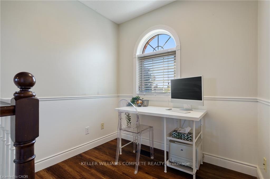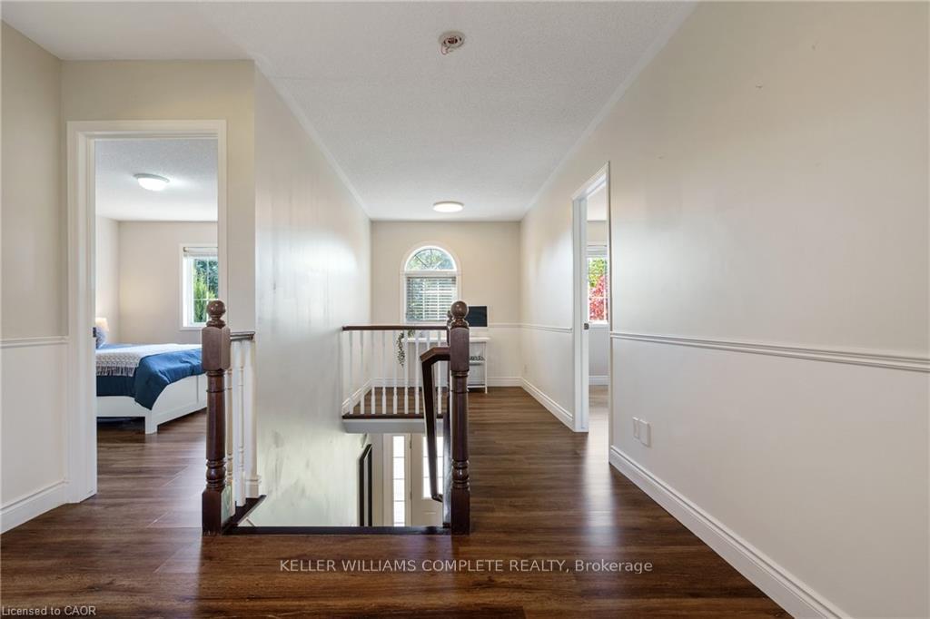 Welcome to 44 Grassyplain Drive, a charming red-brick home with great curb appeal and beautiful, award-winning gardens. Situated in a family-friendly neighborhood, this home is surrounded by well-maintained, detached properties. As you enter, youre greeted by a bright foyer that leads to a sunny dining room and a spacious, open-concept kitchen and living room. The kitchen was updated in 2023 with quartz countertops, a matching backsplash, stainless steel appliances, and a central island with seating. The main floor is carpet-free, making it easy to clean, and has a practical layout for both everyday living and entertaining. Upstairs, the large primary bedroom features a walk-in closet and a private 4-piece ensuite. There are also three additional bedrooms, each with plenty of closet space and large windows that let in lots of natural light. A 4-piece bathroom and an office/flex space complete the second level. The finished basement includes a cozy rec room, which could easily be converted into another bedroom if needed. Outside, you can relax on the patio and enjoy the quiet view with no rear neighbors. This home is just minutes away from schools, parks, and the Ancaster Meadowlands Shopping Centre. Well-maintained and move-in ready, it has everything a growing family needs. Book a showing today before its gone!