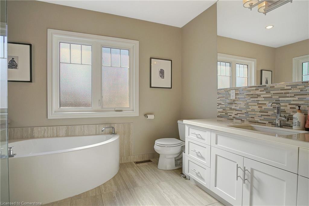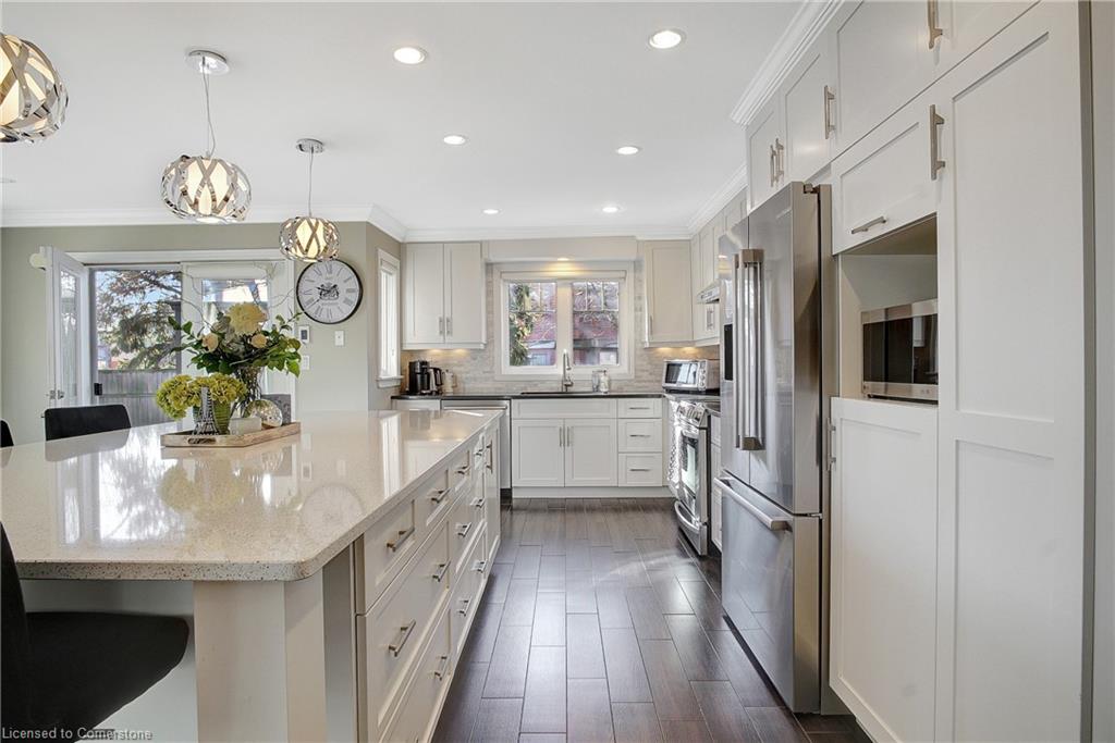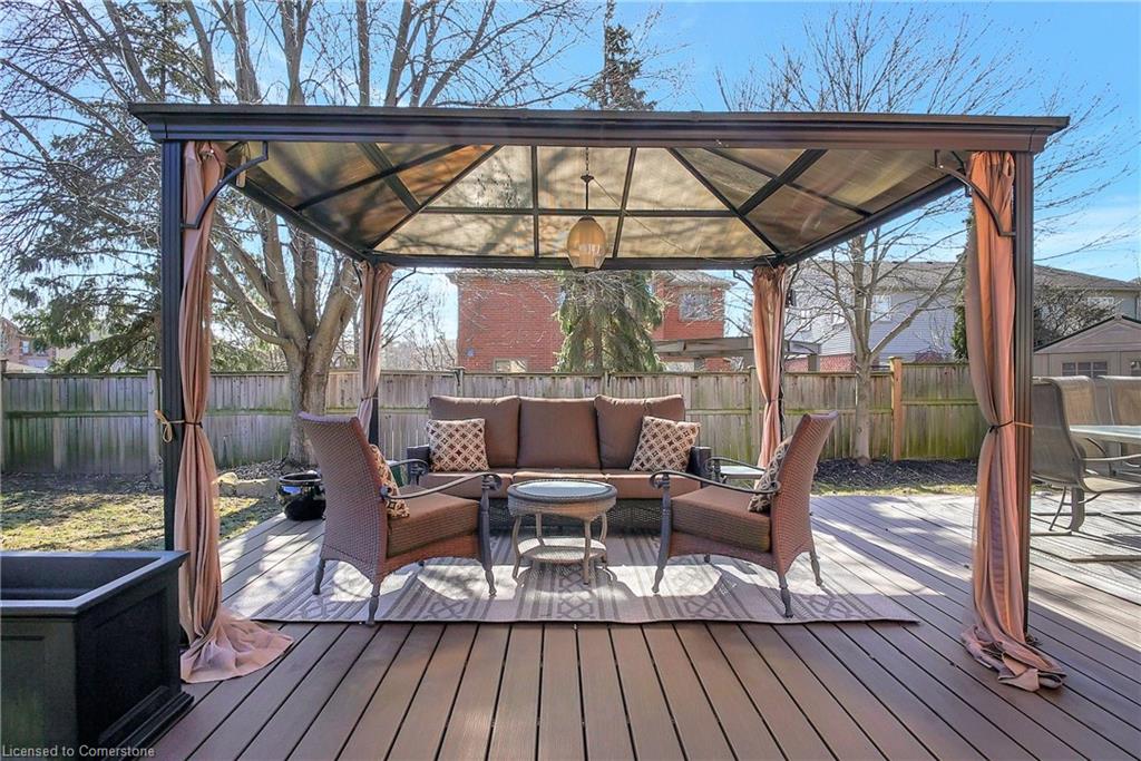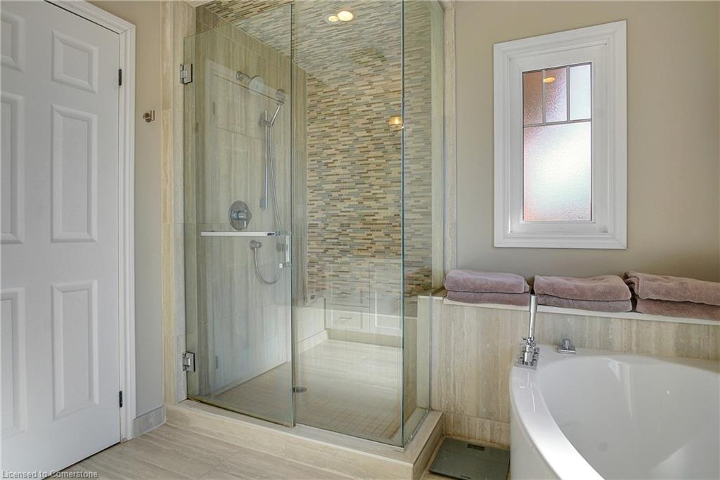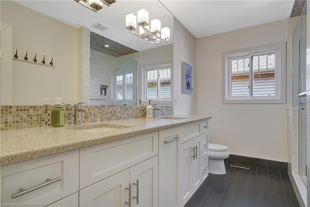 INDULGE IN THE ESSENCE OF FAMILY LIVING with this exquisite over 2,900sqft residence, perfectly positioned on a quiet premium corner lot in a highly sought-after neighbourhood. From the moment you step inside, you’ll be captivated by the turret living room, where large windows flood the space with natural light & a cozy fireplace adds warmth. The open-concept design leads to the stunning kitchen, featuring custom cabinetry, Cambria quartz countertops, & a striking marble backsplash. The adjoining dining area offers ample space for gatherings & direct access to the fully fenced backyard, where you can enjoy breakfast as the morning sun pours in. A family room with a second fireplace provides the perfect setting for relaxation. The main level also includes a mudroom, an office, & a stylish powder room. In-floor heating & abundant storage enhance the functionality of this level. Upstairs, you’ll find 4 generously sized bedrooms, including the luxurious primary suite, complete with 3 closets & a spa-like ensuite featuring a glass-enclosed shower, a standalone soaker tub, & in-floor heating. A beautifully appointed 4pc bathroom, also with in-floor heating, serves the remaining bedrooms, while the upper-level laundry room adds an extra layer of ease to everyday life. The fully finished basement offers a massive recreation room, & a flexible space that can be used as a home gym or even a 5th bedroom. Every inch of this home is designed with quality and comfort in mind, from the skylight to the composite deck & extended driveway. Additional updates include AC 2020, upgraded baseboards & crown molding, & a striking marble feature wall in the powder room. The upper level & basement flooring were updated in 2025, & the home also offers laundry connections on both the upper & lower levels. Nestled in a family-friendly community, surrounded by top-rated schools, scenic walking & biking trails, & just minutes from the 401.