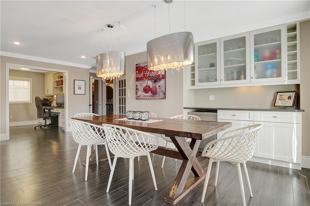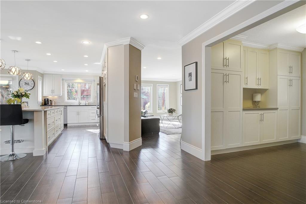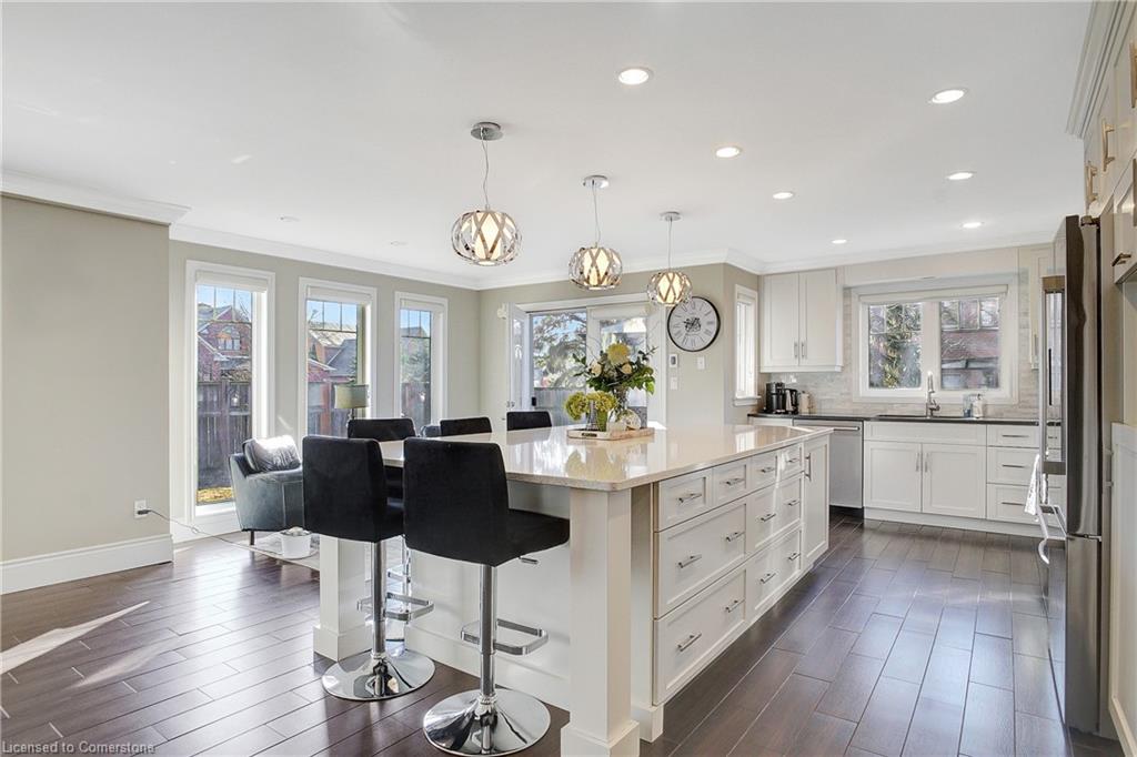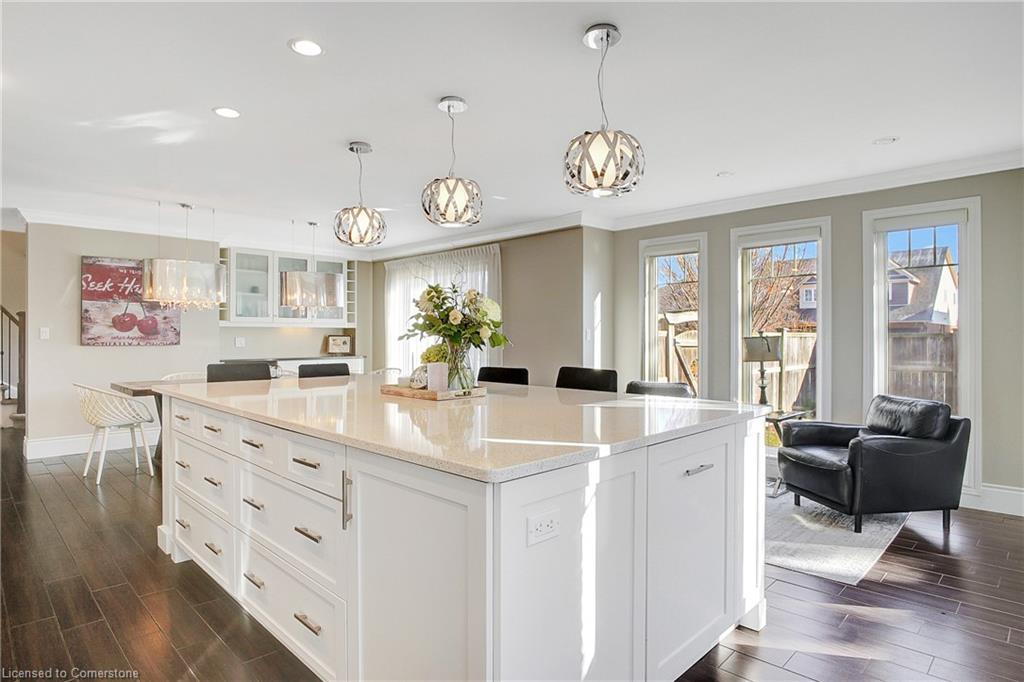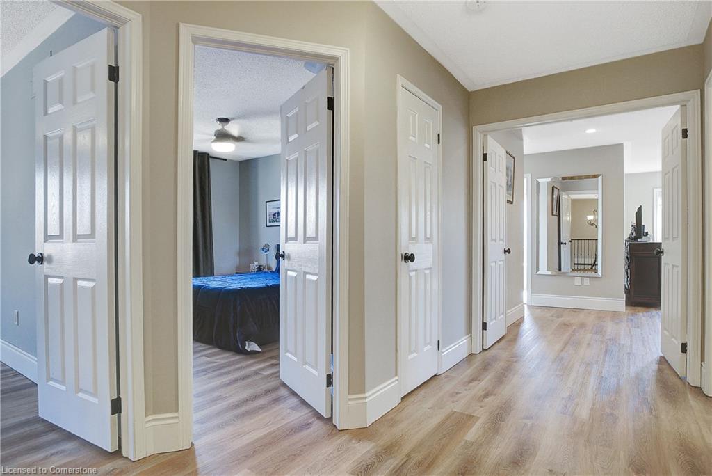 INDULGE IN THE ESSENCE OF FAMILY LIVING with this exquisite over 2,900sqft residence, perfectly positioned on a quiet premium corner lot in a highly sought-after neighbourhood. From the moment you step inside, you’ll be captivated by the turret living room, where large windows flood the space with natural light & a cozy fireplace adds warmth. The open-concept design leads to the stunning kitchen, featuring custom cabinetry, Cambria quartz countertops, & a striking marble backsplash. The adjoining dining area offers ample space for gatherings & direct access to the fully fenced backyard, where you can enjoy breakfast as the morning sun pours in. A family room with a second fireplace provides the perfect setting for relaxation. The main level also includes a mudroom, an office, & a stylish powder room. In-floor heating & abundant storage enhance the functionality of this level. Upstairs, you’ll find 4 generously sized bedrooms, including the luxurious primary suite, complete with 3 closets & a spa-like ensuite featuring a glass-enclosed shower, a standalone soaker tub, & in-floor heating. A beautifully appointed 4pc bathroom, also with in-floor heating, serves the remaining bedrooms, while the upper-level laundry room adds an extra layer of ease to everyday life. The fully finished basement offers a massive recreation room, & a flexible space that can be used as a home gym or even a 5th bedroom. Every inch of this home is designed with quality and comfort in mind, from the skylight to the composite deck & extended driveway. Additional updates include AC 2020, upgraded baseboards & crown molding, & a striking marble feature wall in the powder room. The upper level & basement flooring were updated in 2025, & the home also offers laundry connections on both the upper & lower levels. Nestled in a family-friendly community, surrounded by top-rated schools, scenic walking & biking trails, & just minutes from the 401.