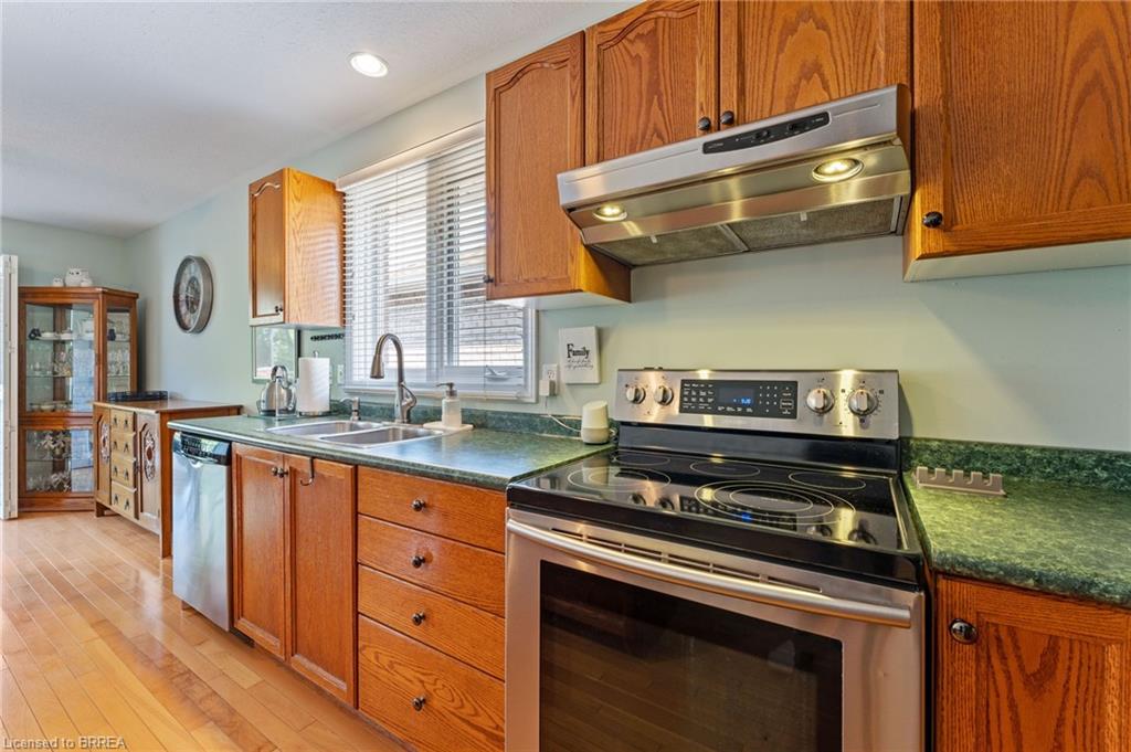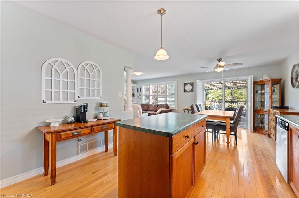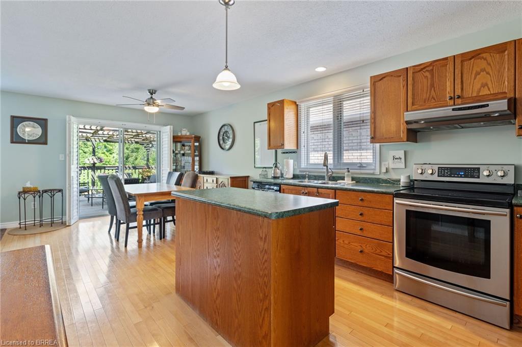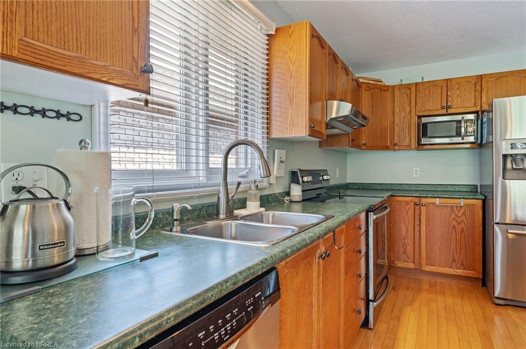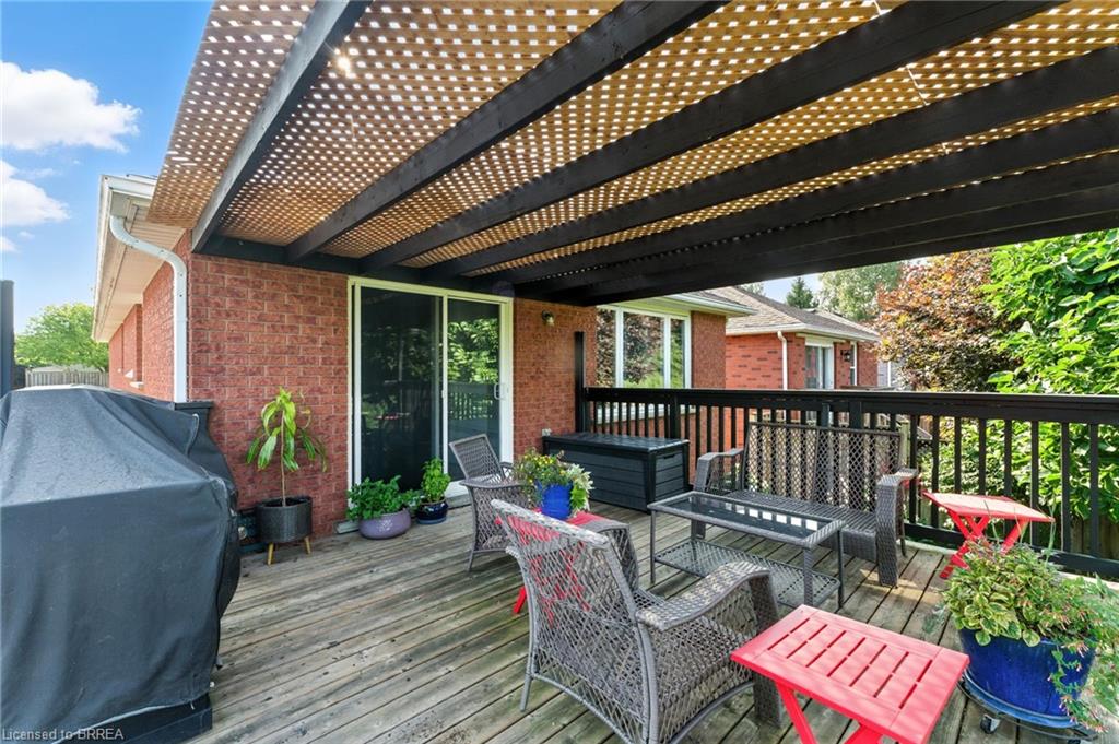 WOW!! This solid brick 3 bedroom, 2 bathroom, bungalow is sure to impress. This Donovan built, quality home, is in the very desirable north end of Paris. As you walk in the main level you will find an inviting open concept where pride of ownership is apparent. As you pass the two bedrooms and full bathroom you are flooded with natural light and a gas fire place making this a wonderful space to enjoy. Sliding doors off the back will lead you to a large deck with no back neighbours. An incredible view of green space, ponds, and nature. With natural gas hook up ready to go it will be the perfect spot to barbeque, unwind and enjoy the view. As you move to the lower level, you will find more finished living area to enjoy. On this level is the second gas fire place, beautiful oak bar, bedroom and full bathroom. A spot to enjoy or for a family member that needs their own space. This home sits on a quiet street in a wonderful neighbourhood. Upgrades of owned air conditioner 2021, furnace in 2020 and water softener 2017 makes this one you do not want to miss.