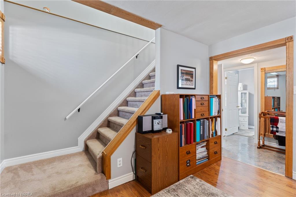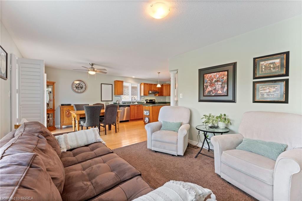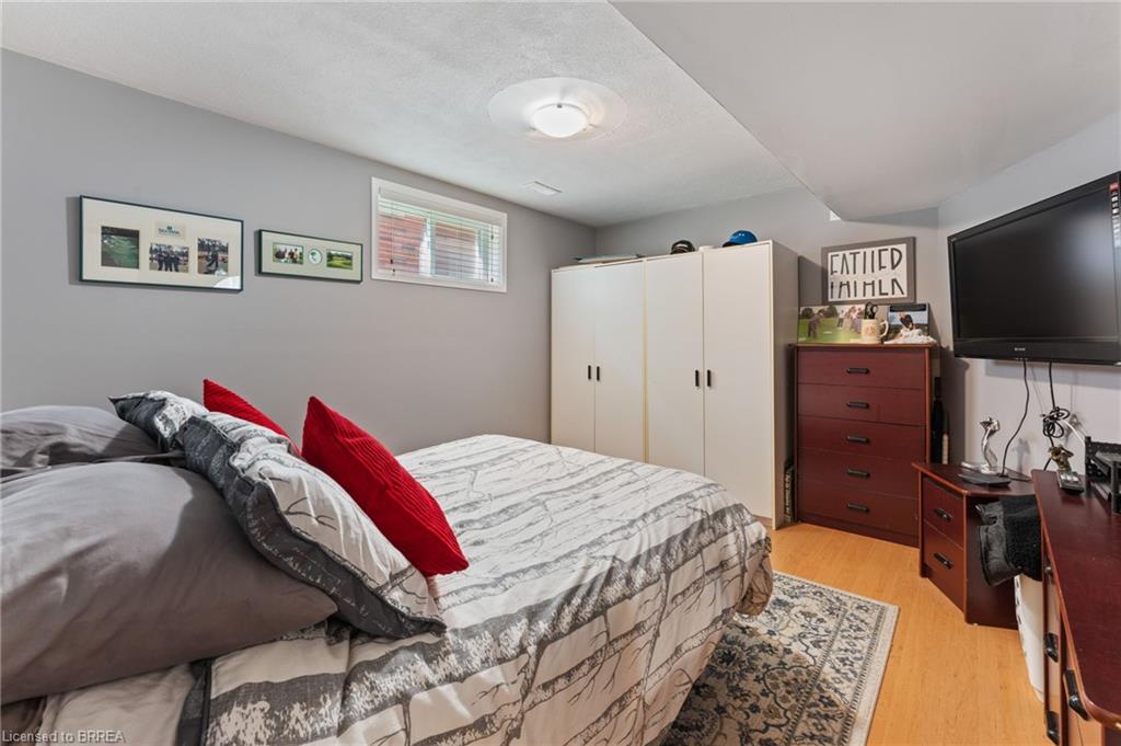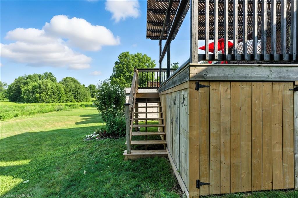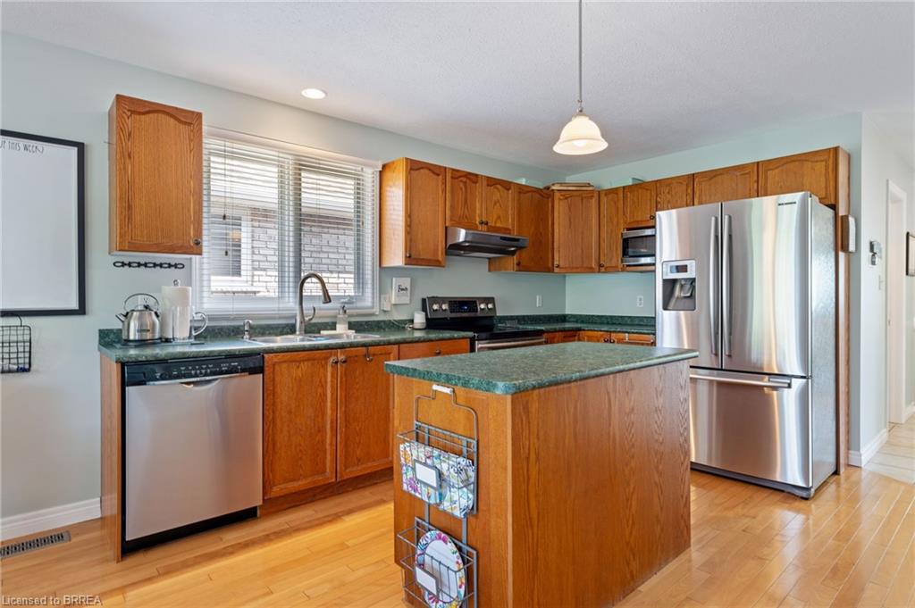 WOW!! This solid brick 3 bedroom, 2 bathroom, bungalow is sure to impress. This Donovan built, quality home, is in the very desirable north end of Paris. As you walk in the main level you will find an inviting open concept where pride of ownership is apparent. As you pass the two bedrooms and full bathroom you are flooded with natural light and a gas fire place making this a wonderful space to enjoy. Sliding doors off the back will lead you to a large deck with no back neighbours. An incredible view of green space, ponds, and nature. With natural gas hook up ready to go it will be the perfect spot to barbeque, unwind and enjoy the view. As you move to the lower level, you will find more finished living area to enjoy. On this level is the second gas fire place, beautiful oak bar, bedroom and full bathroom. A spot to enjoy or for a family member that needs their own space. This home sits on a quiet street in a wonderful neighbourhood. Upgrades of owned air conditioner 2021, furnace in 2020 and water softener 2017 makes this one you do not want to miss.