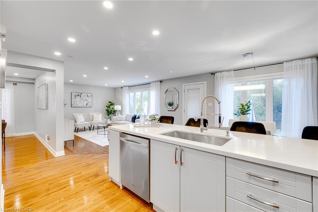 Welcome to 44 Pentland Rd, a modern and move-in-ready family home in one of Waterdown’s most desirable neighborhoods. Recently updated throughout, this 3+1 bedroom property combines style, comfort, and functionality. The bright, open living areas feature oversized windows and pot lights, creating a warm and inviting atmosphere. A sleek kitchen with quartz countertops and stainless steel appliances flows seamlessly to the private, fully fenced backyard—perfect for relaxing or entertaining. Upstairs you’ll find three spacious bedrooms, a newly renovated main bathroom, and the convenience of bedroom-level laundry. The thoughtfully finished basement offers a living room, bedroom, 3-piece bath, its own laundry, and a full kitchen with new appliances, making it ideal for an in-law suite or potential rental income, with a permit available for a separate entrance. Additional highlights include a sunroom entry, mudroom with storage, heated garage, new roof (2020), furnace, AC and water heater (2021), and fresh concrete pathways (2024) that boost both accessibility and curb appeal. Close to trails, parks, schools, shopping, and restaurants, this home offers the perfect blend of modern upgrades, flexible living space, and unbeatable location