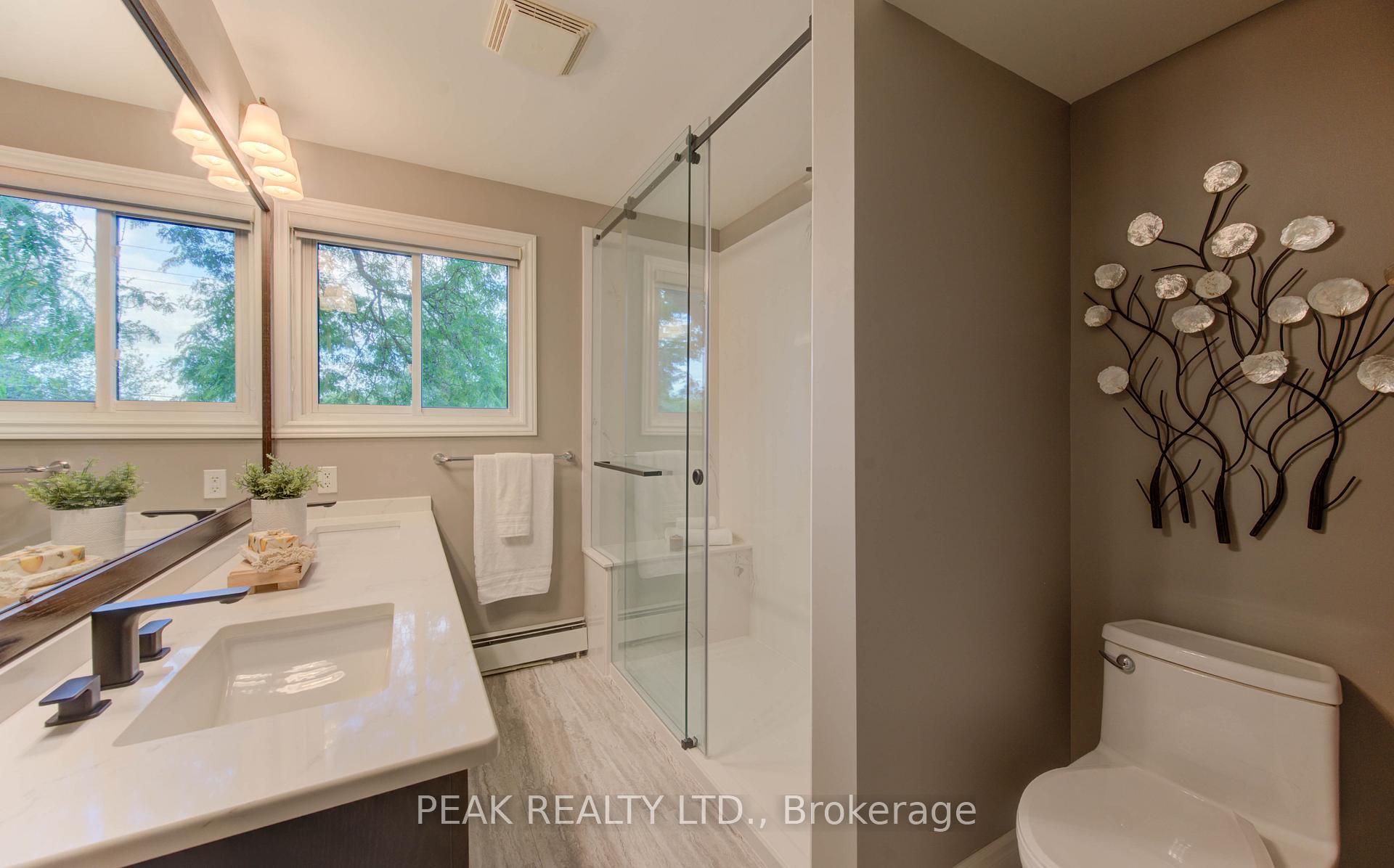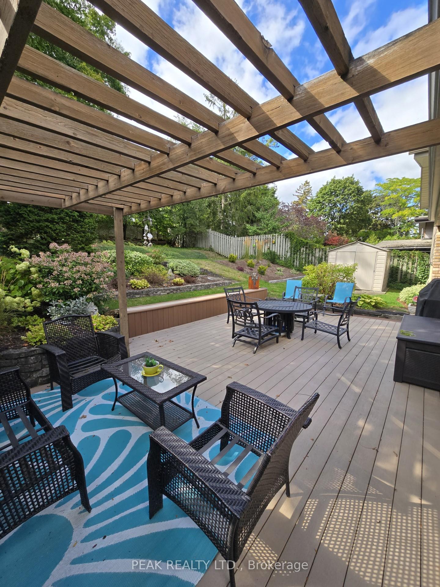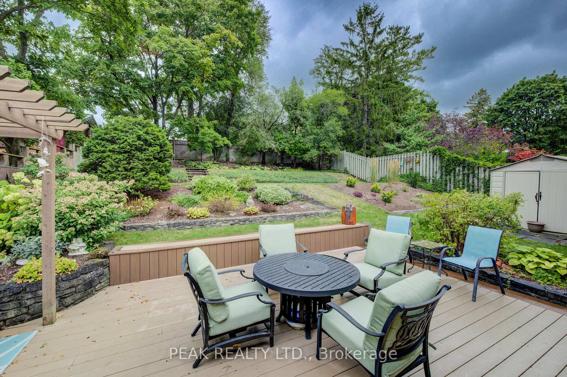 Highly sought-after Manchester Road! Heres your opportunity to own a home in this desirable neighbourhood. The first thing youll notice is the large resurfaced driveway (2018), offering plenty of parking. The single-car garage has been converted into additional living space perfect for storage, a home office, or hobby room but can easily be returned to a garage if desired. This charming 3-bedroom, 1.5-bath side-split looks onto greenspace with a playground nearby. Bright windows fill the home with natural light, while the renovated kitchen is a true highlight, featuring large window overlooking the tiered, private backyard. Enjoy entertaining outdoors with the updated composite deck, complete with pergola and privacy. Upstairs, youll find three generous bedrooms and a beautifully updated main bath (2021). The cozy family room is anchored by a fieldstone fireplace, now converted to gas for comfort and convenience. The lower level offers a workshop area and a well-placed laundry room. All this in a fantastic location close to shopping, schools, the expressway, and so much more.