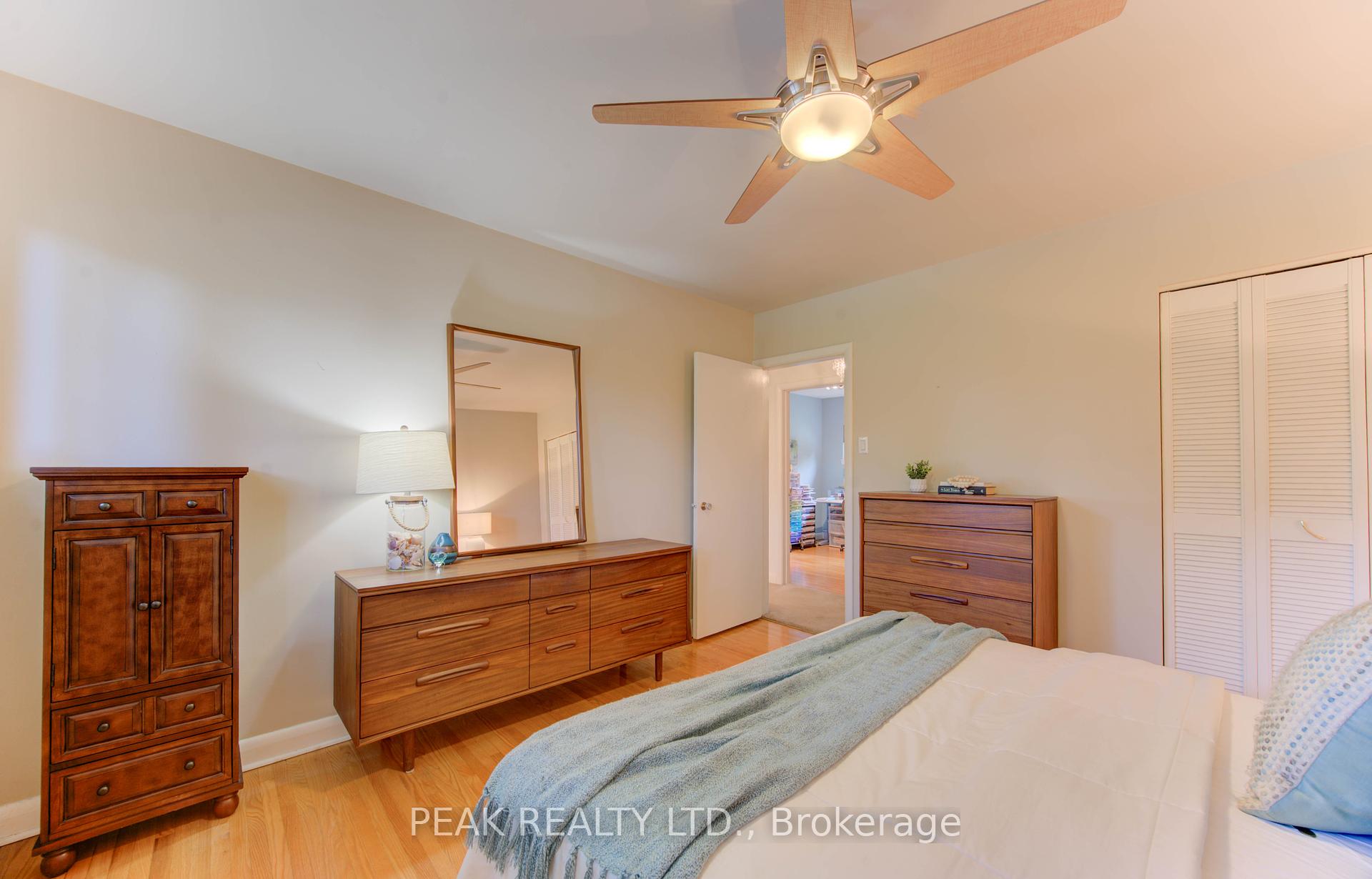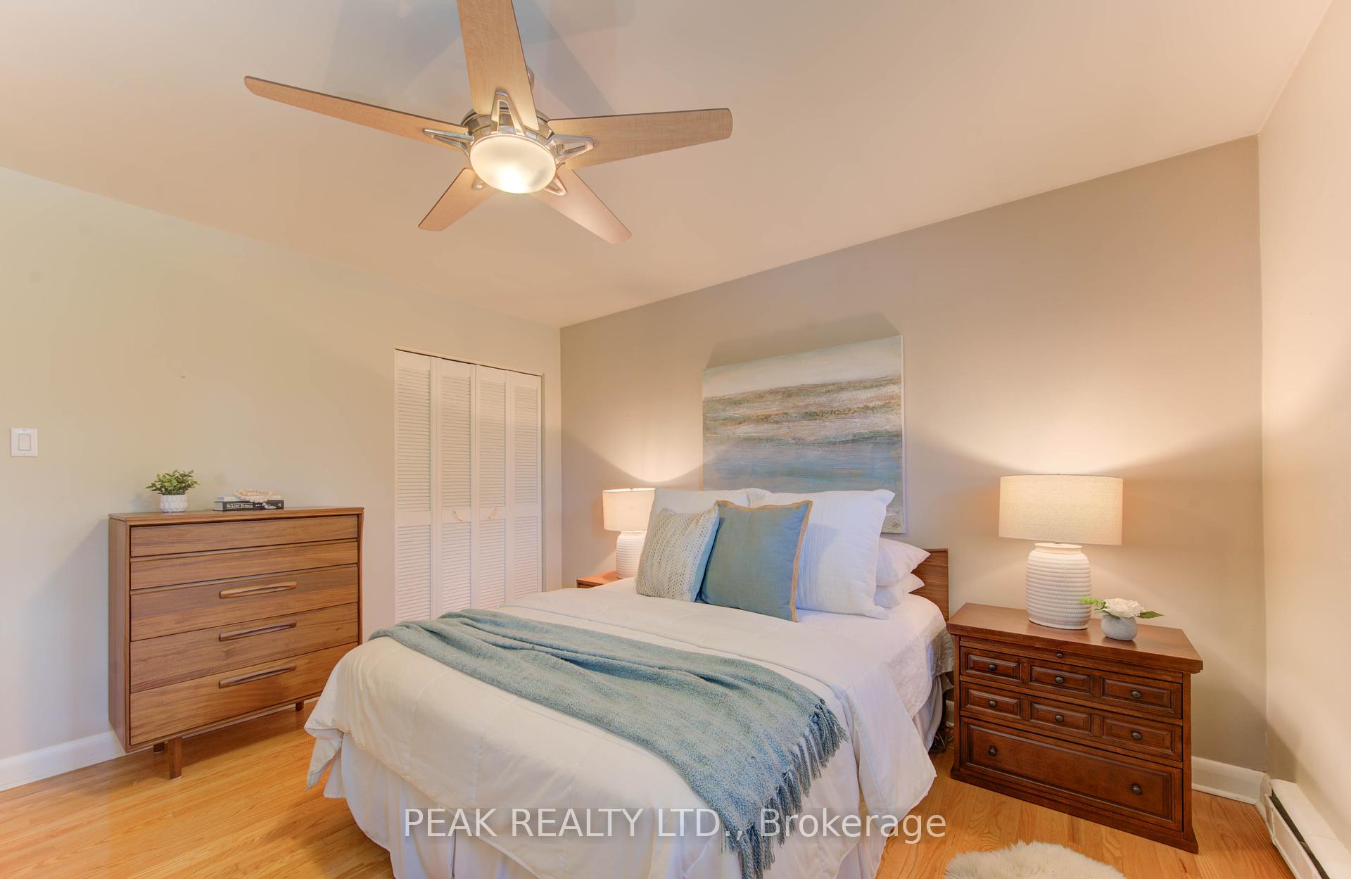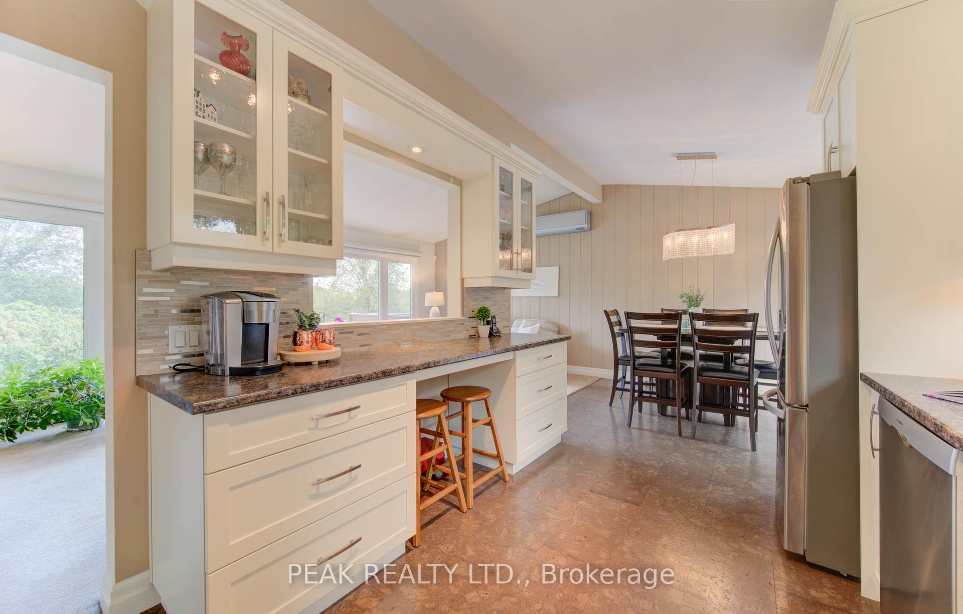 Highly sought-after Manchester Road! Heres your opportunity to own a home in this desirable neighbourhood. The first thing youll notice is the large resurfaced driveway (2018), offering plenty of parking. The single-car garage has been converted into additional living space perfect for storage, a home office, or hobby room but can easily be returned to a garage if desired. This charming 3-bedroom, 1.5-bath side-split looks onto greenspace with a playground nearby. Bright windows fill the home with natural light, while the renovated kitchen is a true highlight, featuring large window overlooking the tiered, private backyard. Enjoy entertaining outdoors with the updated composite deck, complete with pergola and privacy. Upstairs, youll find three generous bedrooms and a beautifully updated main bath (2021). The cozy family room is anchored by a fieldstone fireplace, now converted to gas for comfort and convenience. The lower level offers a workshop area and a well-placed laundry room. All this in a fantastic location close to shopping, schools, the expressway, and so much more.
