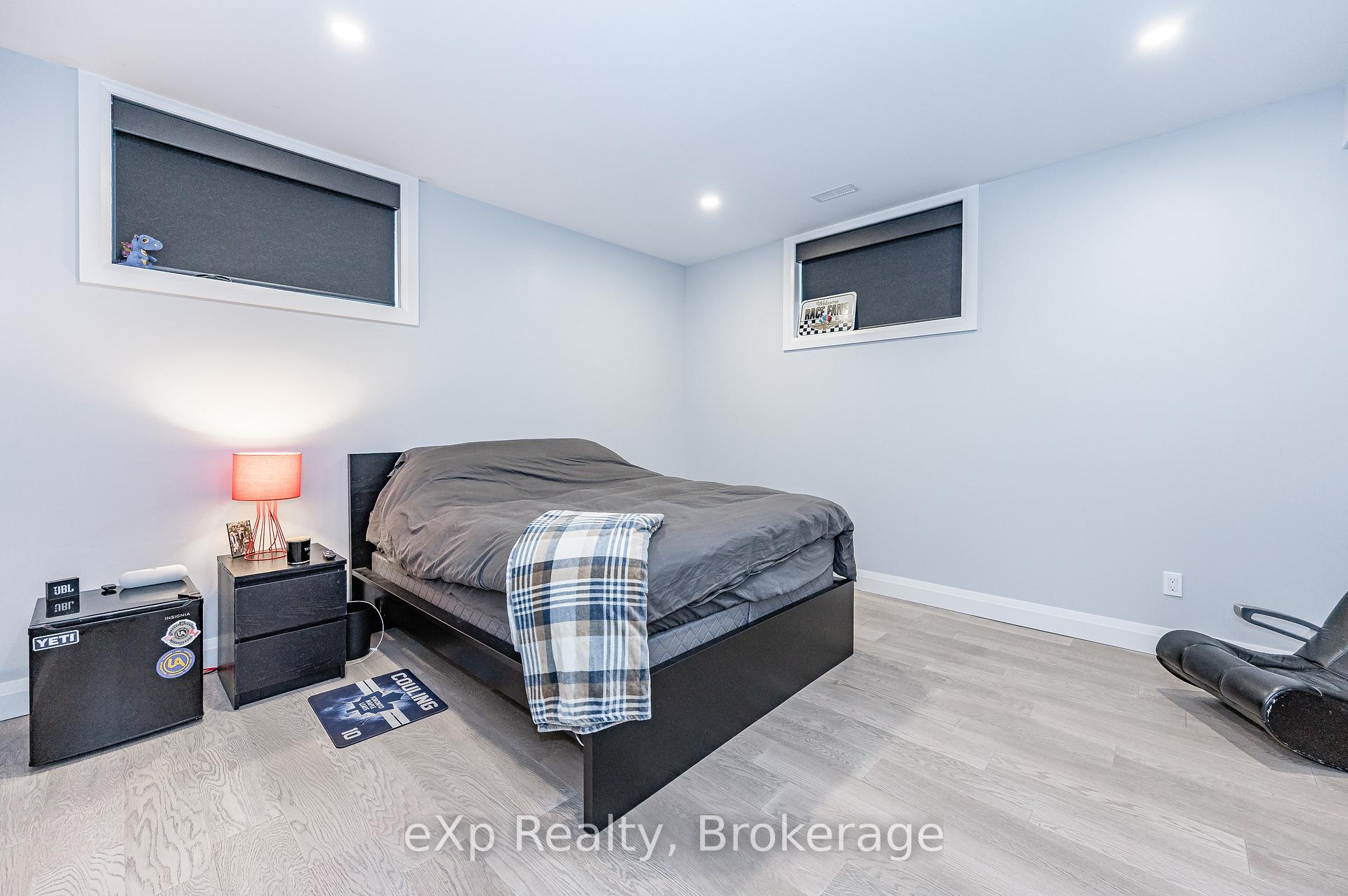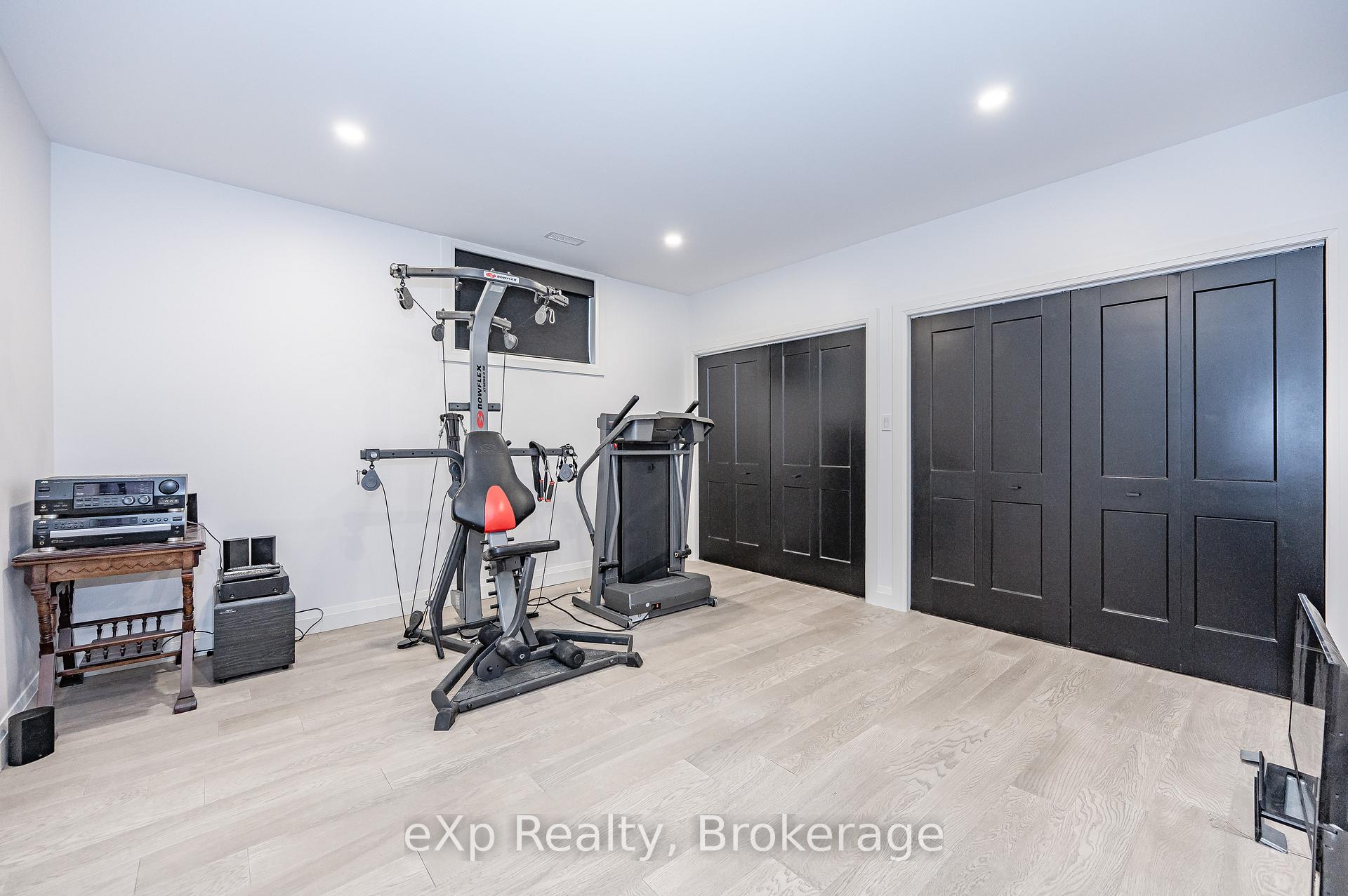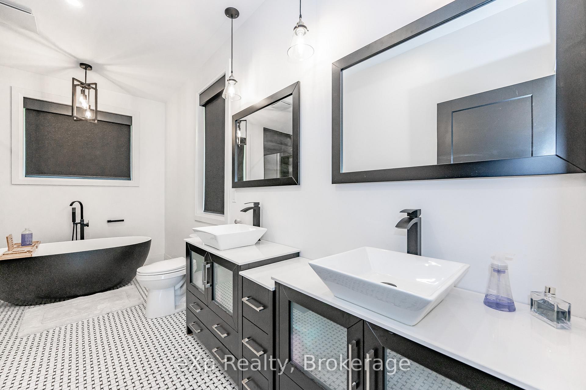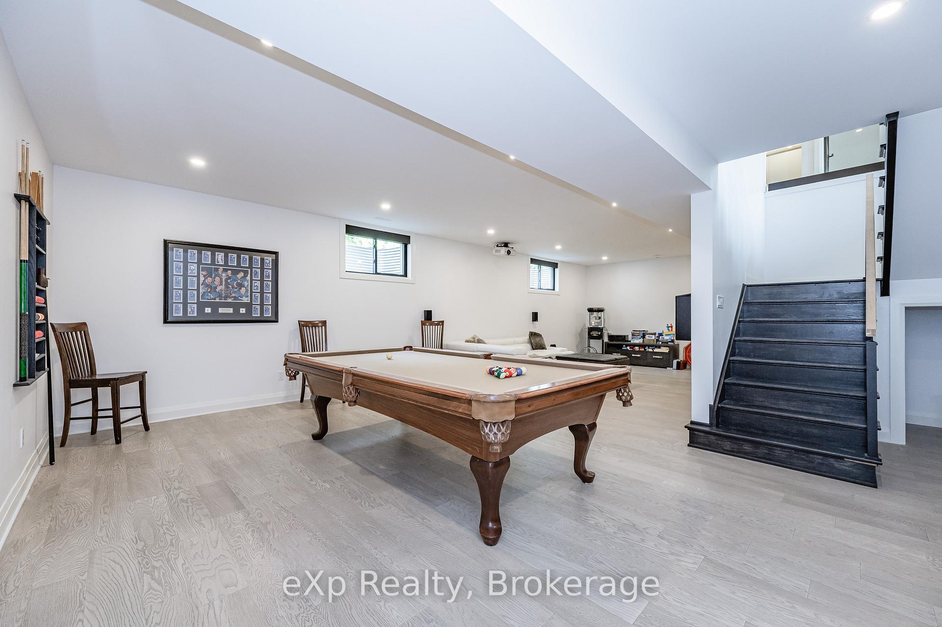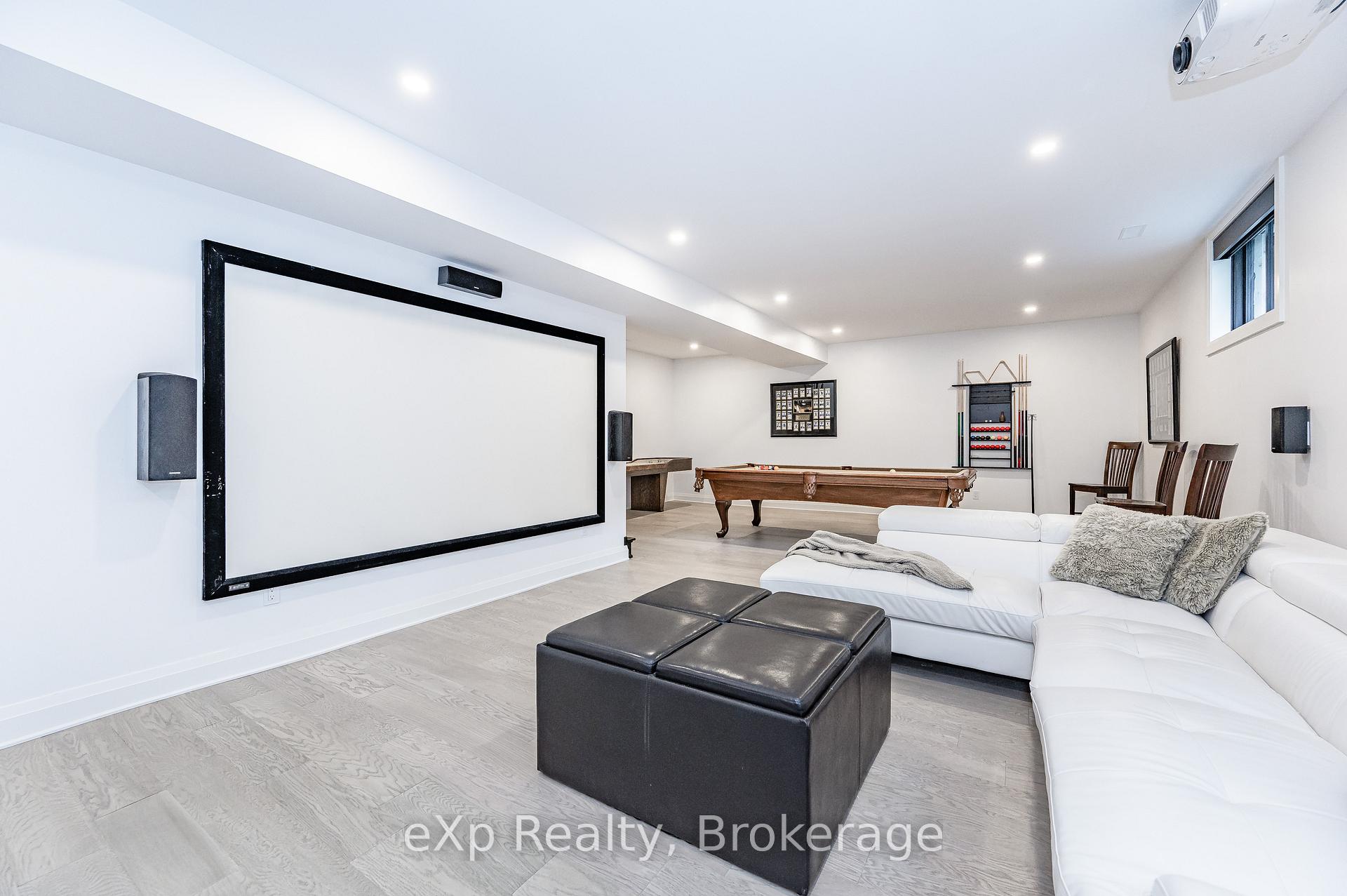 Set along the Grand River on one of Elora’s most desirable roads, this exceptional bungalow offers refined design, meticulous care, and peaceful riverside living. With over 3,850 square feet of finished space, this 5-bedroom home showcases quality craftsmanship and thoughtful upgrades throughout. The manicured property features a private, tree-lined backdrop with captivating river views, a wide asphalt driveway, and an oversized 3-car garage with epoxy flooring and separated third bay. Inside, the open-concept design is bright and elegant with engineered hardwood, large windows, and a beautifully appointed kitchen featuring high-end appliances, granite counters, a 9-foot waterfall island, and a hidden walk-in pantry with a second fridge and coffee bar. The dining and family rooms flow seamlessly beside a glass-enclosed wine cellar. The main level includes a mudroom with walk-in storage, a 3-piece bath, laundry room, and three spacious bedrooms. The primary suite offers a walk-in closet and a luxurious ensuite with heated floors, curbless shower, and freestanding tub. The finished lower level features heated floors, 9-foot ceilings, two bedrooms, a recreation area, and a 3-piece bath. Outdoor living includes a covered porch, composite deck, gas BBQ hookup, bocce court, fire pit, and stunning river views. Additional highlights include a new well with continuous pressure system, water softener with iron filter, on-demand boiler, CAT5 wiring, and full spray-foam insulation.