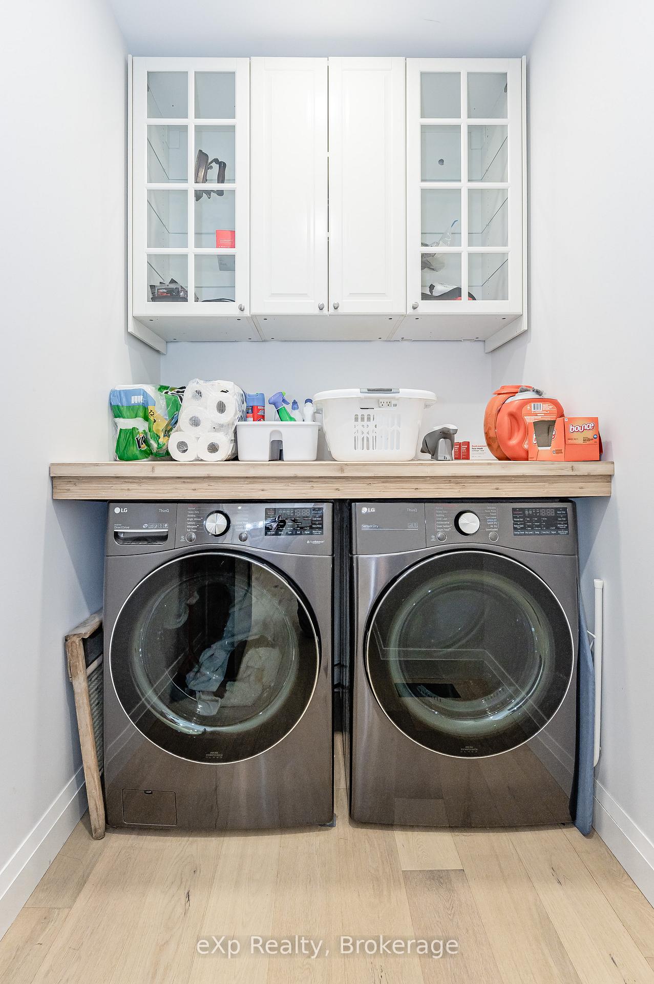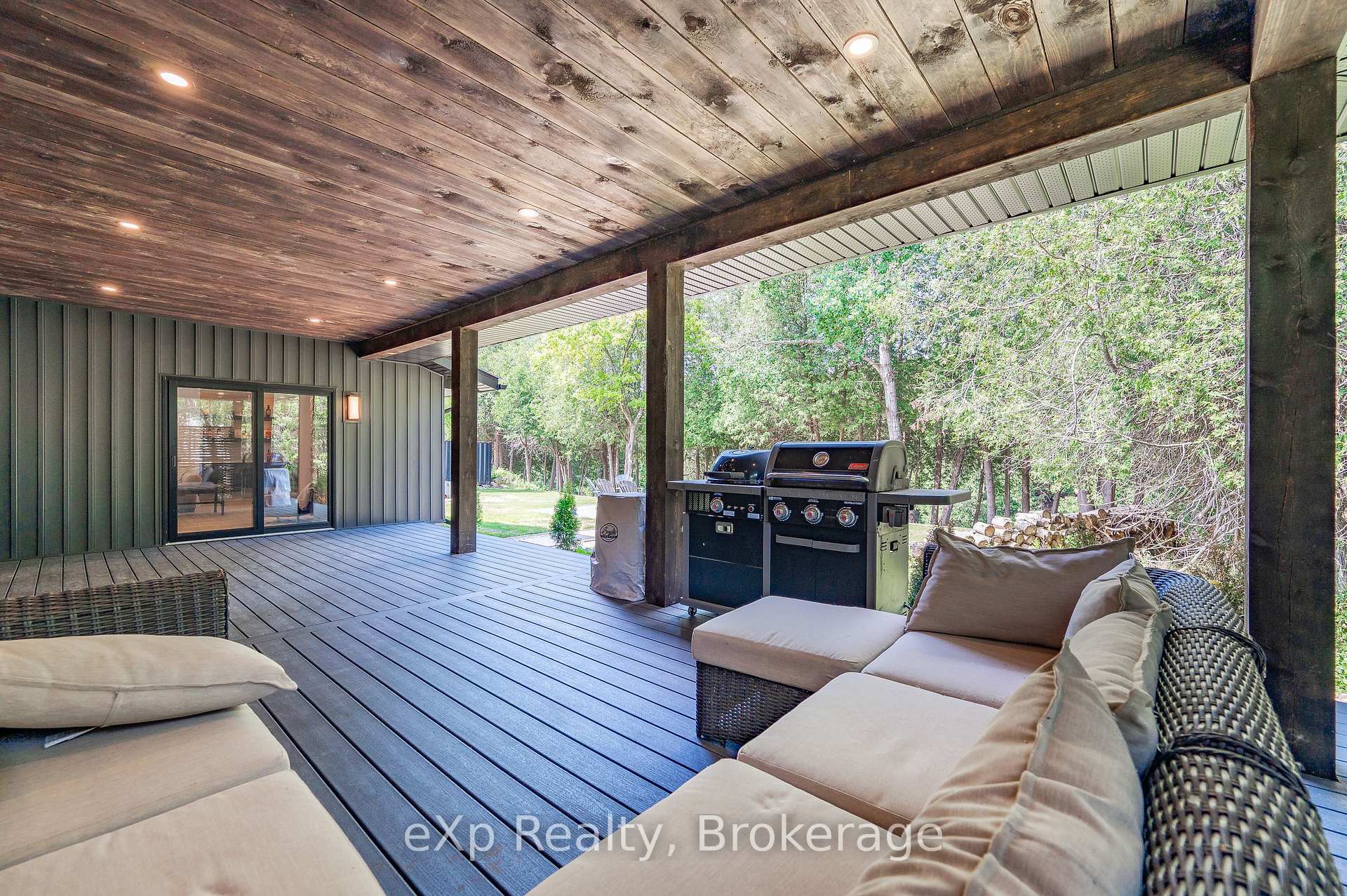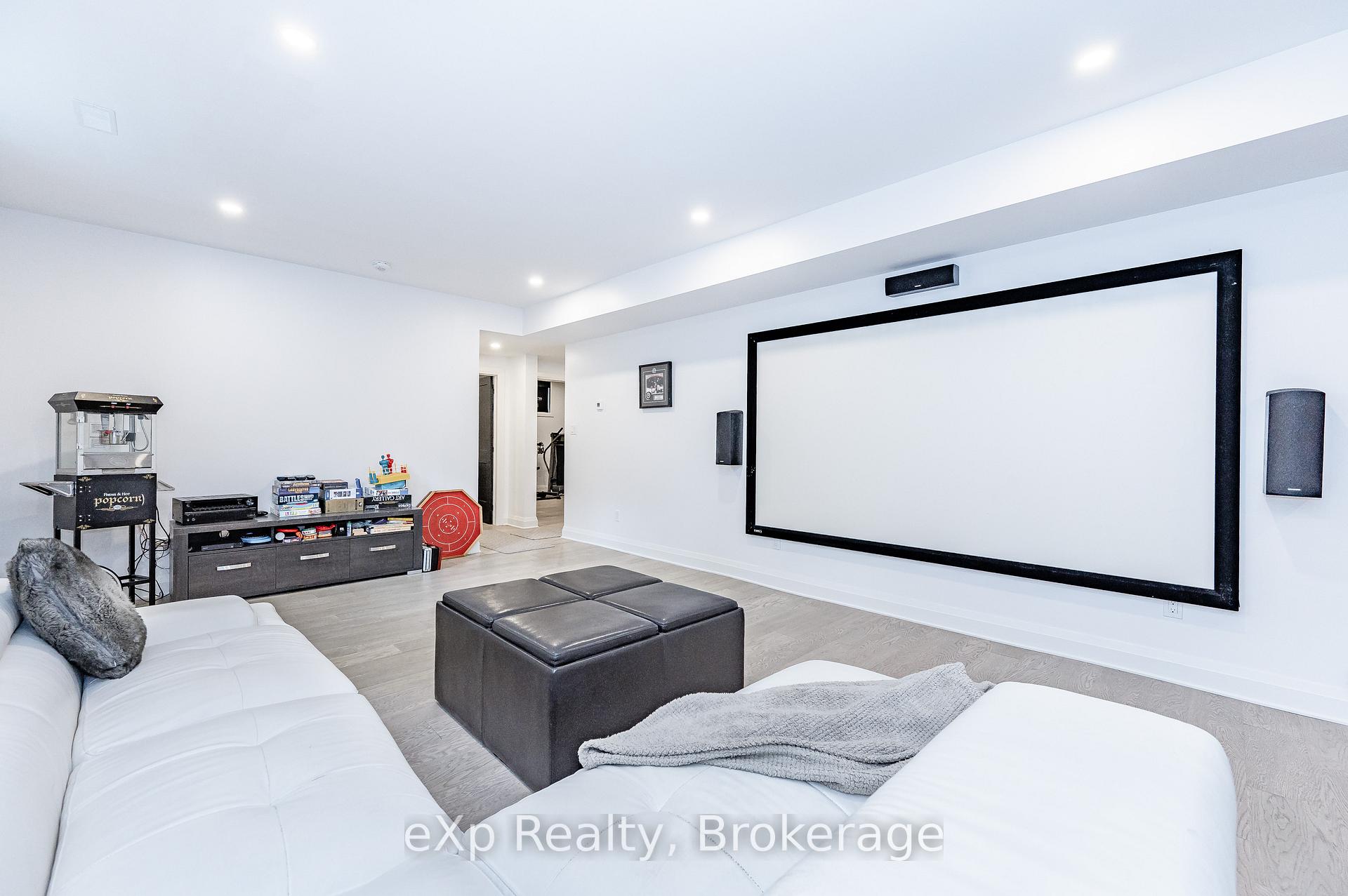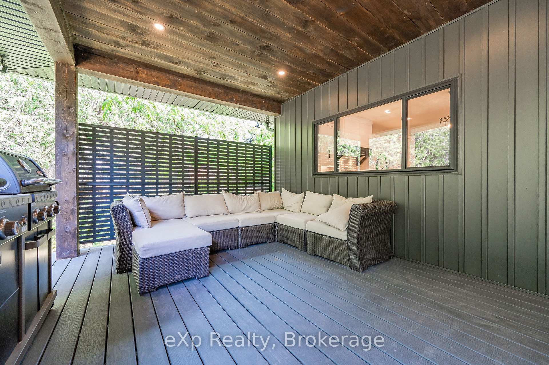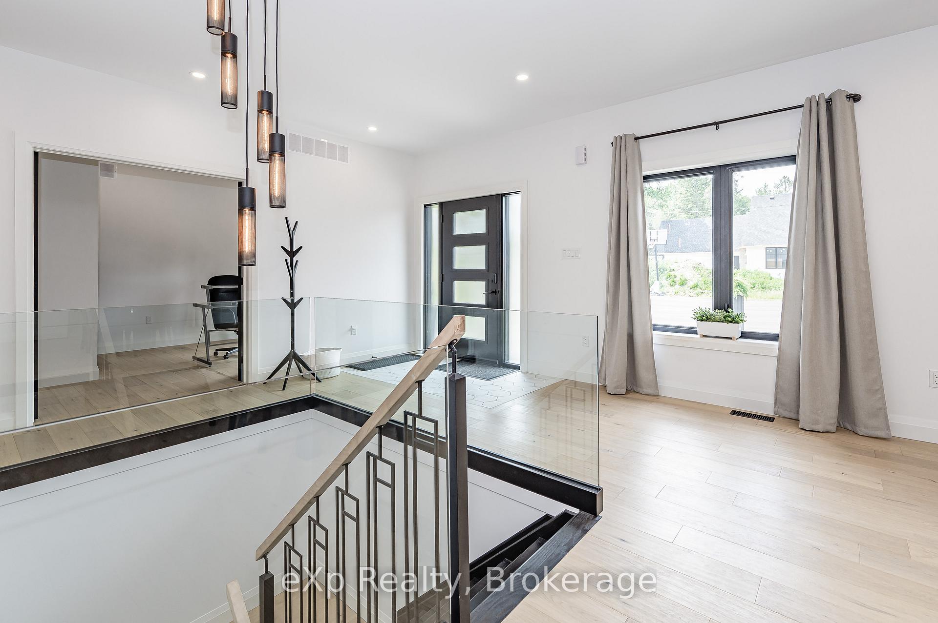 Set along the Grand River on one of Elora’s most desirable roads, this exceptional bungalow offers refined design, meticulous care, and peaceful riverside living. With over 3,850 square feet of finished space, this 5-bedroom home showcases quality craftsmanship and thoughtful upgrades throughout. The manicured property features a private, tree-lined backdrop with captivating river views, a wide asphalt driveway, and an oversized 3-car garage with epoxy flooring and separated third bay. Inside, the open-concept design is bright and elegant with engineered hardwood, large windows, and a beautifully appointed kitchen featuring high-end appliances, granite counters, a 9-foot waterfall island, and a hidden walk-in pantry with a second fridge and coffee bar. The dining and family rooms flow seamlessly beside a glass-enclosed wine cellar. The main level includes a mudroom with walk-in storage, a 3-piece bath, laundry room, and three spacious bedrooms. The primary suite offers a walk-in closet and a luxurious ensuite with heated floors, curbless shower, and freestanding tub. The finished lower level features heated floors, 9-foot ceilings, two bedrooms, a recreation area, and a 3-piece bath. Outdoor living includes a covered porch, composite deck, gas BBQ hookup, bocce court, fire pit, and stunning river views. Additional highlights include a new well with continuous pressure system, water softener with iron filter, on-demand boiler, CAT5 wiring, and full spray-foam insulation.