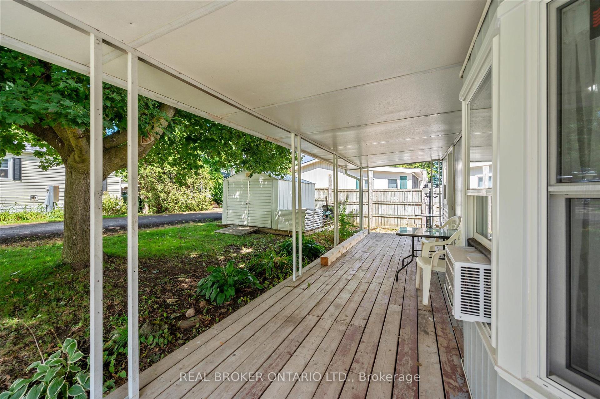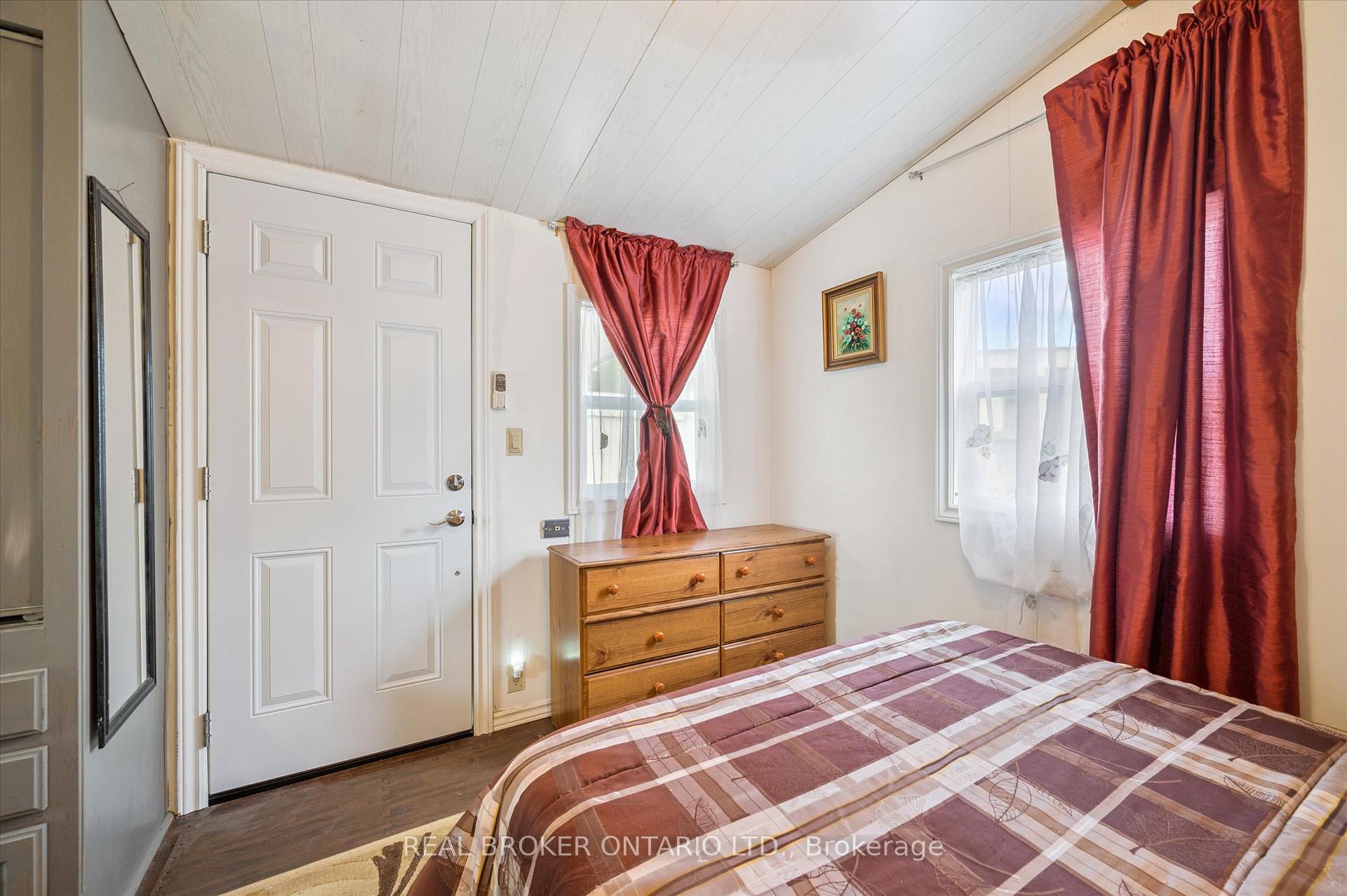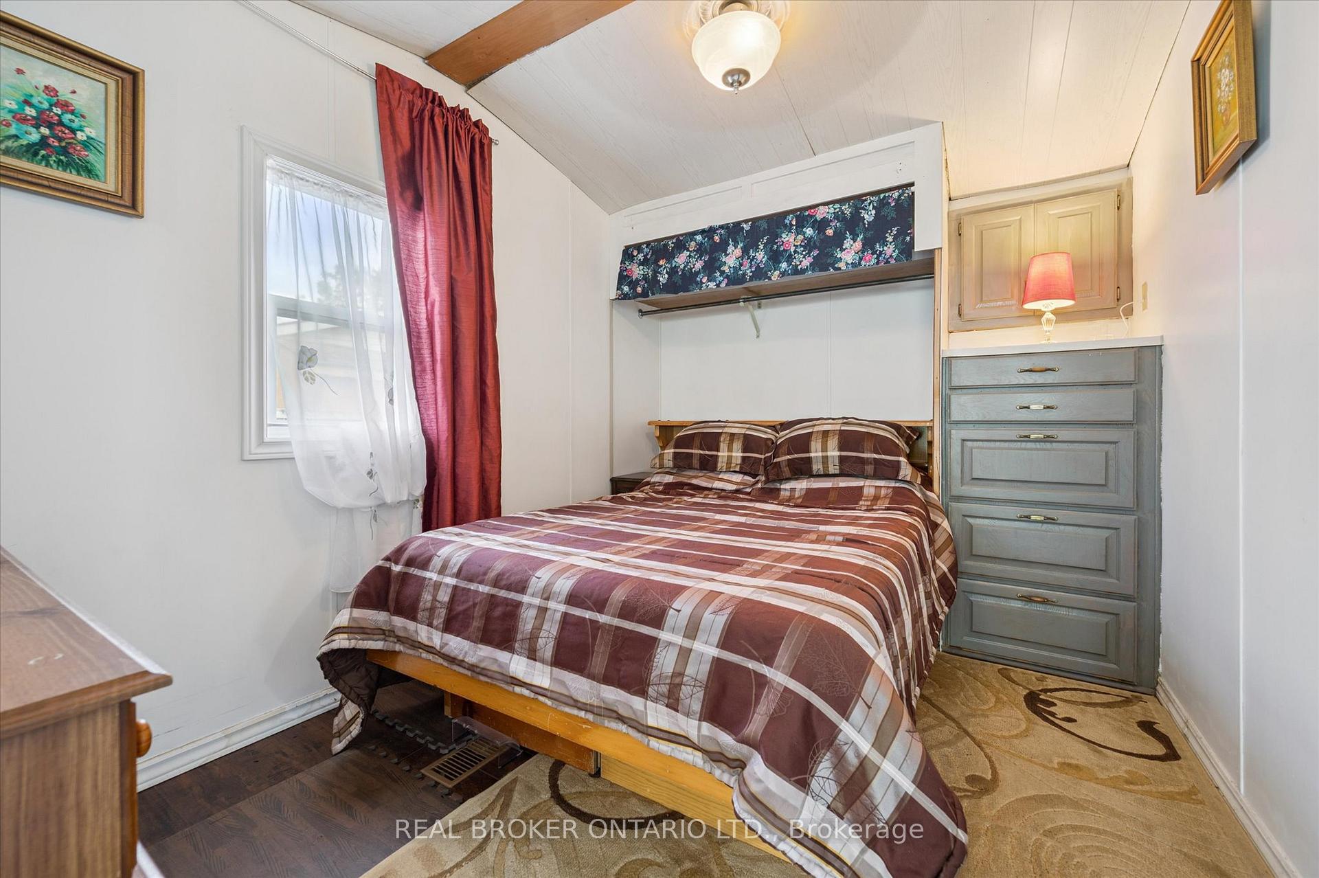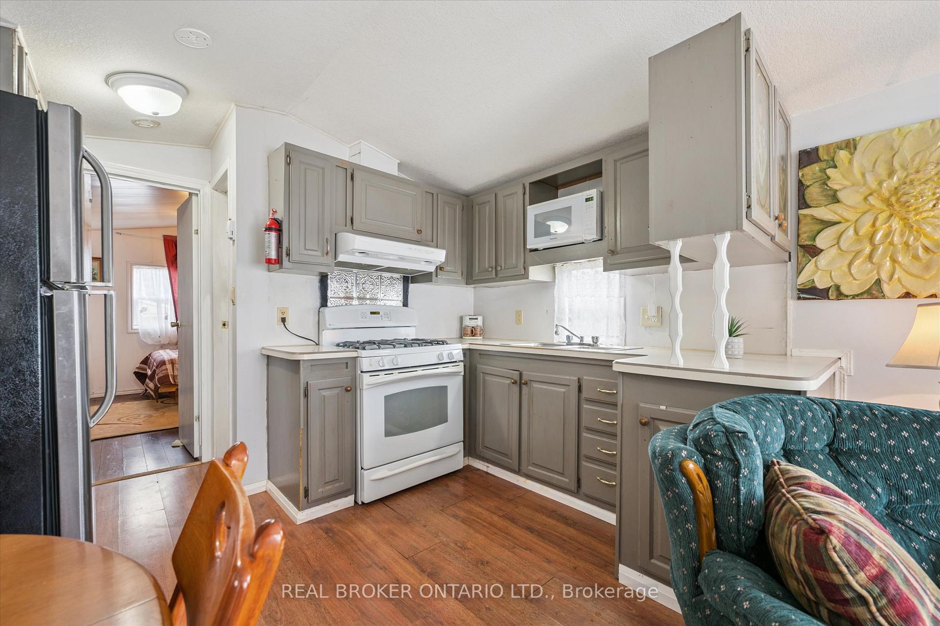Welcome to this cozy year round home in Maple Leaf Acres. This one bedroom, one bathroom mobil home is situated on a large corner lot. A covered deck runs the full length of the unit, has been professionally water sealed and also has potential to be enclosed for more living space. The back yard space is semi-private and partially fenced. Large metal shed with solid foundation, ramp and sky light. All plumbing, electrical and propane lines have been inspected by certified contractors. Roof, most windows, door, toilet, eavestroughs, down spouts, and heat trace lines have been replaced in the last 3 years. No laundry, but there is room in a closet to install a small set. Maple Leaf Acres offers many activities year round and many amenities such as an indoor pool, hot tub, recreation hall, outdoor pool, restaurant, playground, horse shoe pits, basket ball nets, lake front area with boat launch with dock, pond, multiple green spaces, garden plots and so much more! This park is extremely well kept and maintained. Amazing neighbours and sense of community. Park Maintenance fee is $363.61 per month (2025). Seller may consider offering a VTB (vendor take back) mortgage for qualified purchasers.