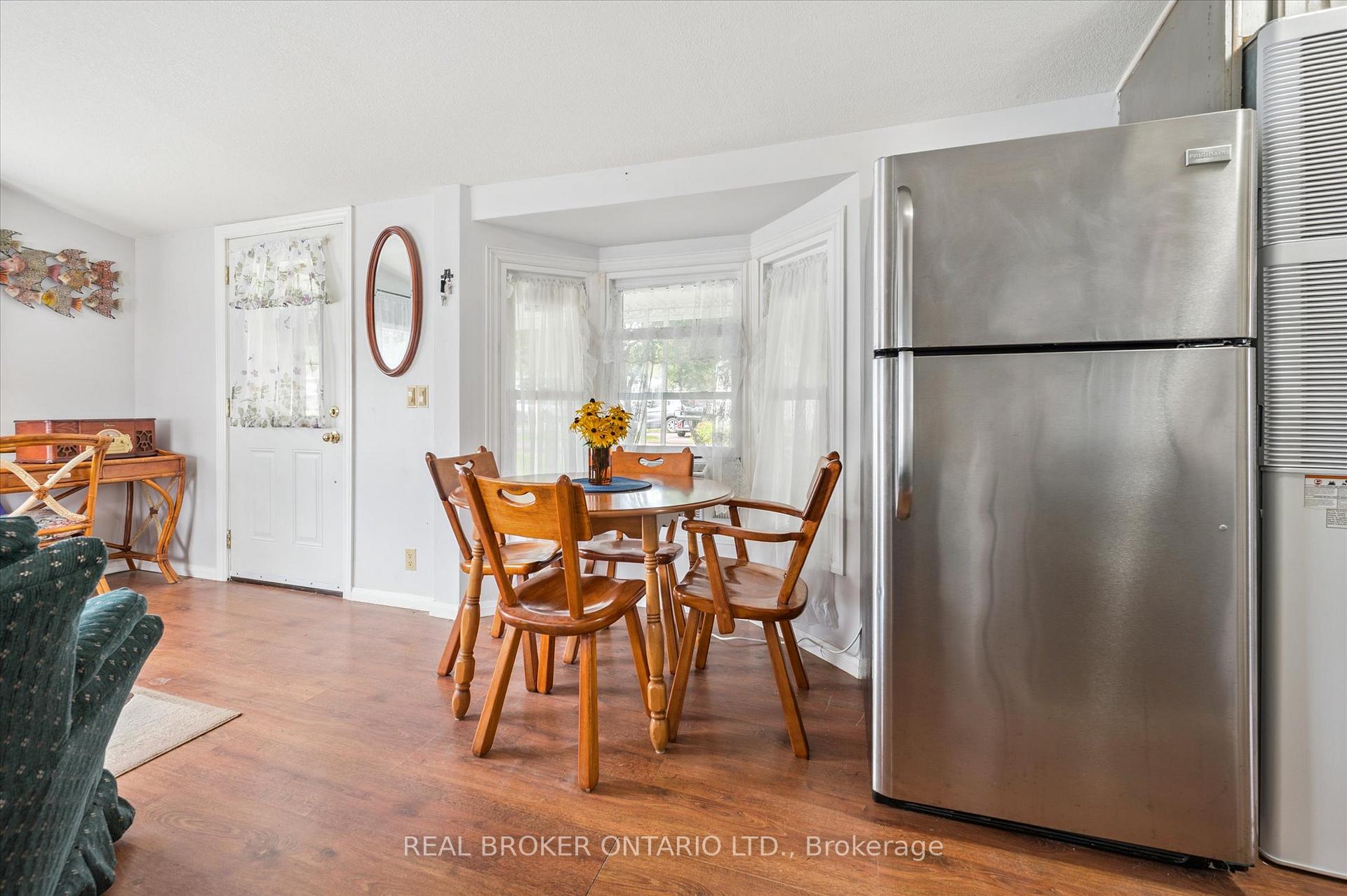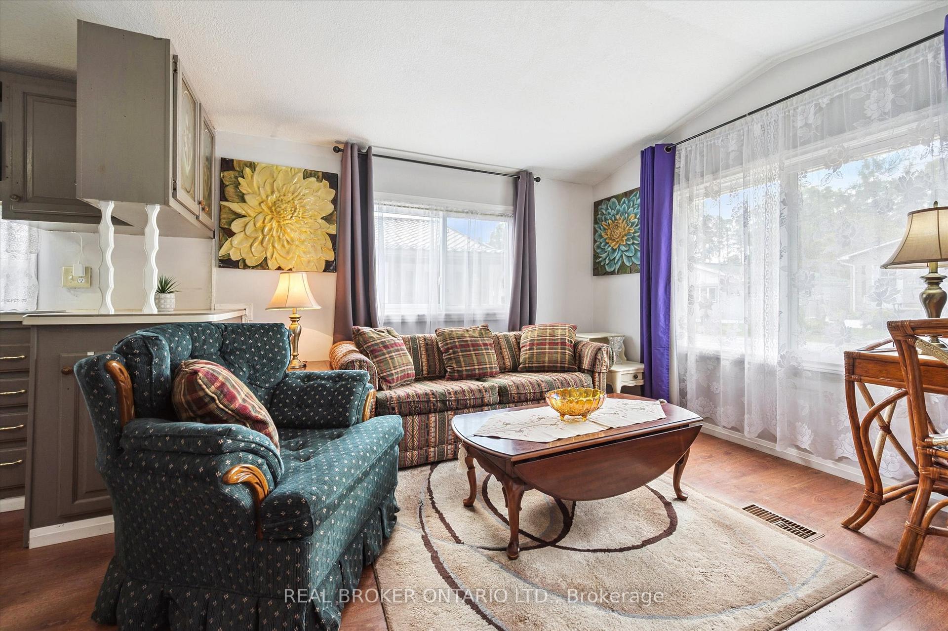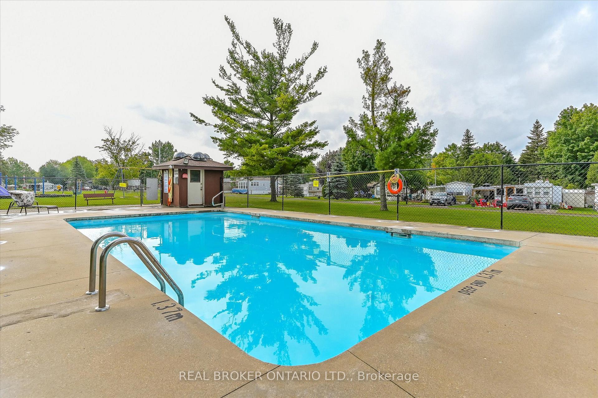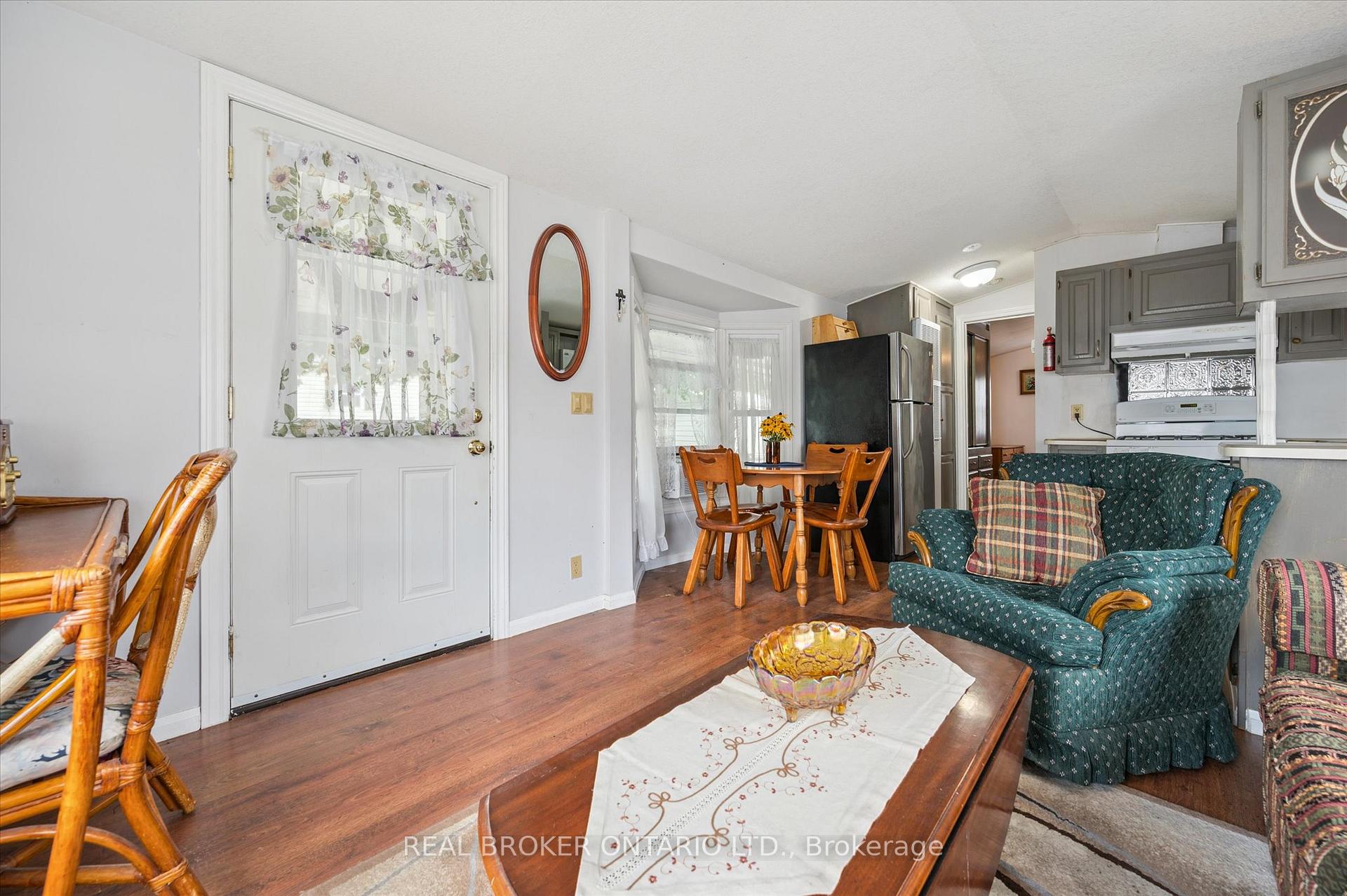 Welcome to this cozy year round home in Maple Leaf Acres. This one bedroom, one bathroom mobil home is situated on a large corner lot. A covered deck runs the full length of the unit, has been professionally water sealed and also has potential to be enclosed for more living space. The back yard space is semi-private and partially fenced. Large metal shed with solid foundation, ramp and sky light. All plumbing, electrical and propane lines have been inspected by certified contractors. Roof, most windows, door, toilet, eavestroughs, down spouts, and heat trace lines have been replaced in the last 3 years. No laundry, but there is room in a closet to install a small set. Maple Leaf Acres offers many activities year round and many amenities such as an indoor pool, hot tub, recreation hall, outdoor pool, restaurant, playground, horse shoe pits, basket ball nets, lake front area with boat launch with dock, pond, multiple green spaces, garden plots and so much more! This park is extremely well kept and maintained. Amazing neighbours and sense of community. Park Maintenance fee is $363.61 per month (2025). Seller may consider offering a VTB (vendor take back) mortgage for qualified purchasers.