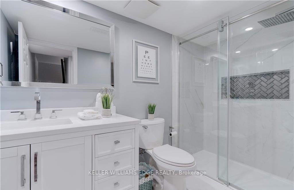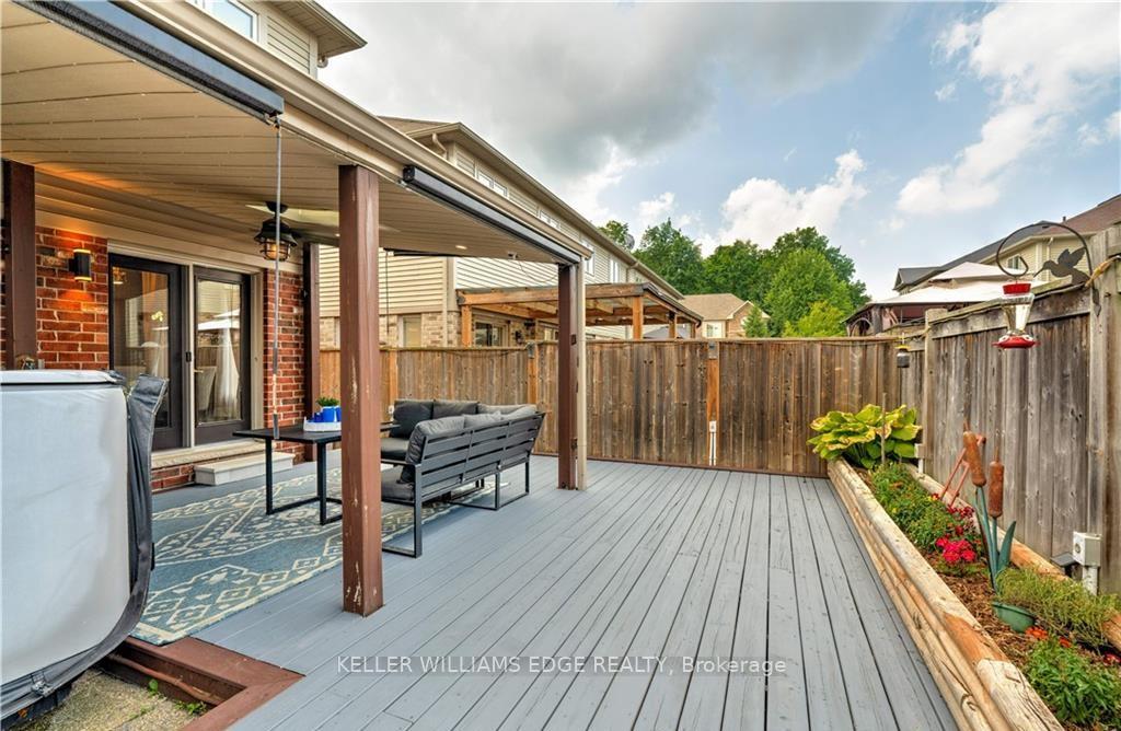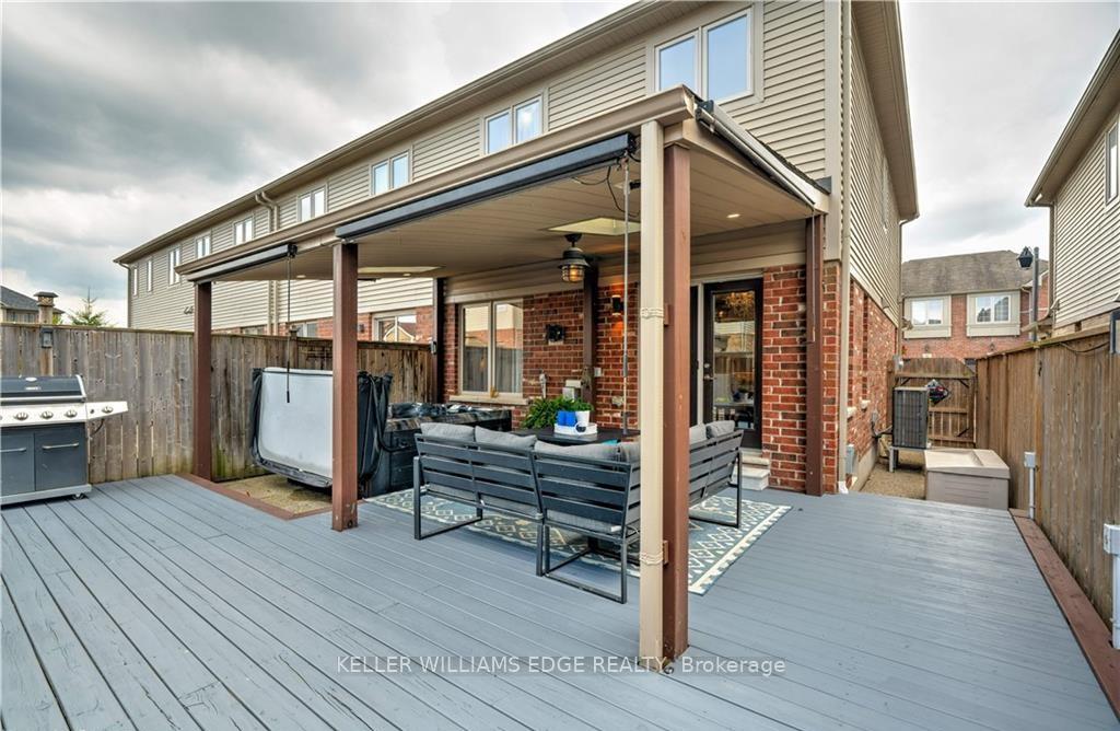 If you’ve been searching for a move-in ready home, this is it! With lots of updates and high end finishes through out the home you step into this immaculate 2-storey end unit townhome offering 3 bedrooms, 3.5 bathrooms, and 2000 sqft of total living space designed for comfort and style. As you enter, you are greeted by an elegant main level with an open-concept layout, pristine hardwood and tile flooring, high-end light fixtures, and pot lights that create a warm, inviting ambiance. The gourmet kitchen is a chefs dream with newer black stainless steel appliances, granite countertops, glass tile backsplash, a large undermount sink with a commercial-style faucet, and exquisite cabinetry with tasteful lighting surrounding a functional kitchen island that is perfect for meal prep and casual gatherings. The spacious dining and living area flows seamlessly, highlighted by a gas fireplace and a striking feature wall, while a convenient 2-piece bathroom completes the main level. Upstairs, retreat to the large primary suite featuring a massive walk-in closet and a spa-like 4-piece ensuite with a soaker tub and glass walk-in shower. Two additional bedrooms with excellent closet space and an updated 4-piece bathroom offer comfort for family or guests. The finished basement expands your living space with a generous rec room, modern 3-piece bathroom, and a well-appointed laundry room. Step outside to a fully fenced backyard designed for relaxing and entertaining. Enjoy the stunning covered deck with skylights and outdoor roller shades for privacy, leading to a private entrance via a beautiful walkway. Additional features include a water osmosis system, owned water softener and new heat pump for heating and cooling. This home has lots of updates, is an end unit and is ready for you to move in and enjoy!