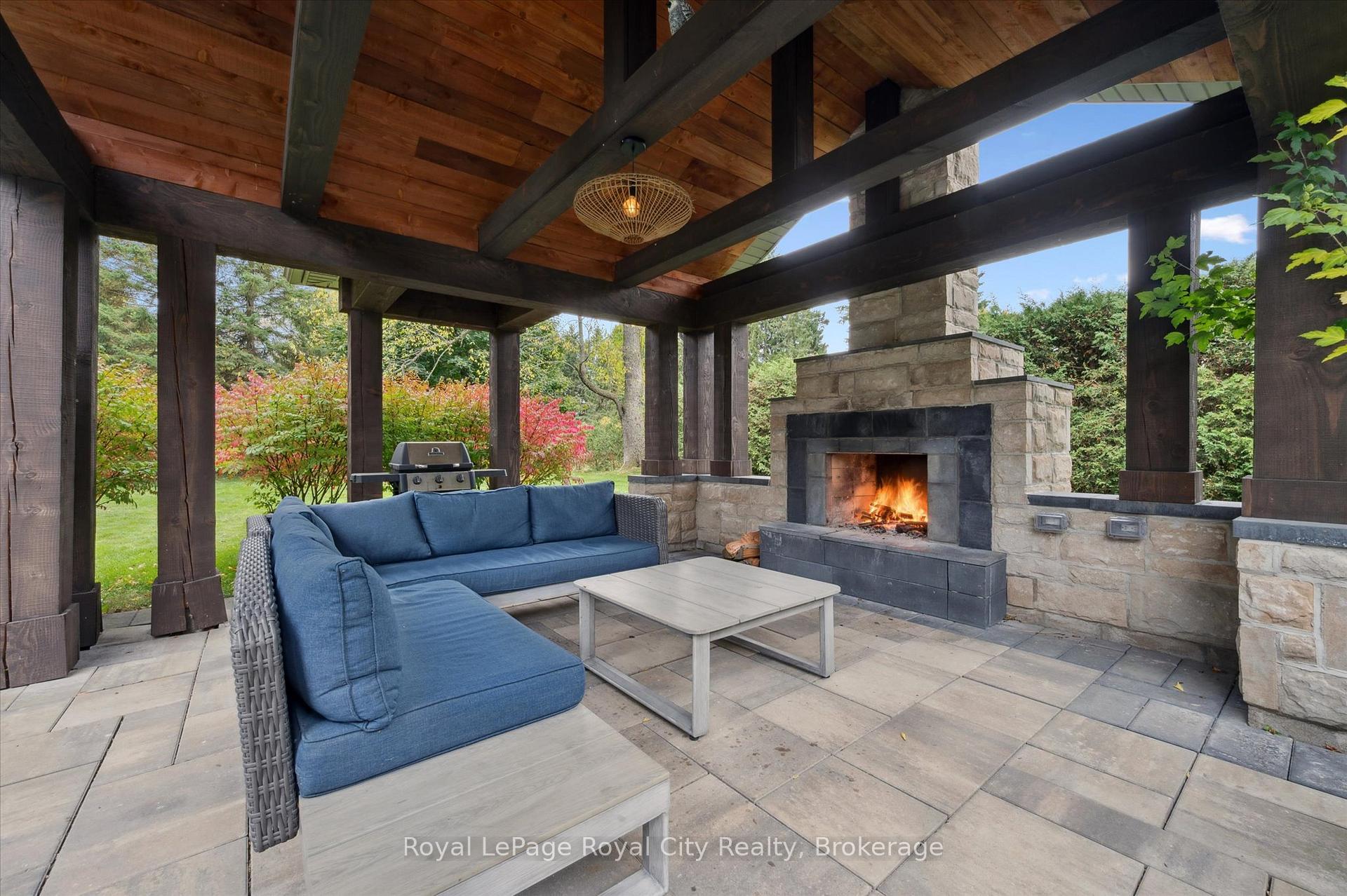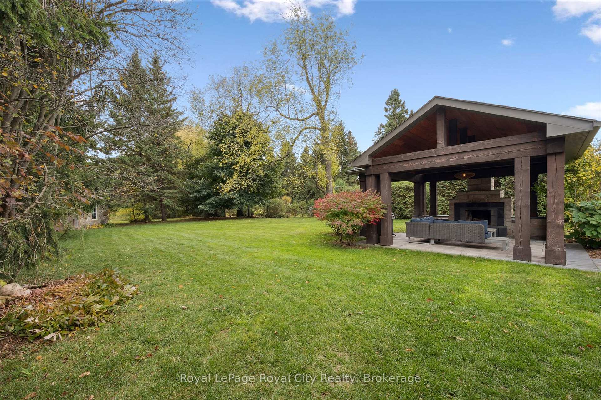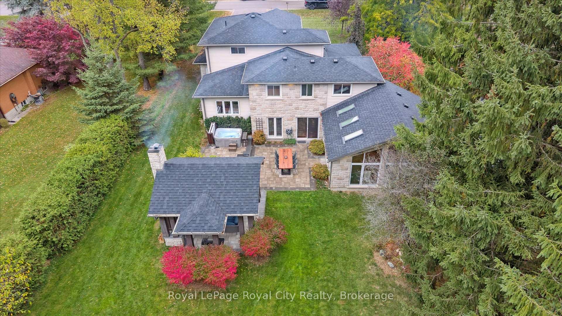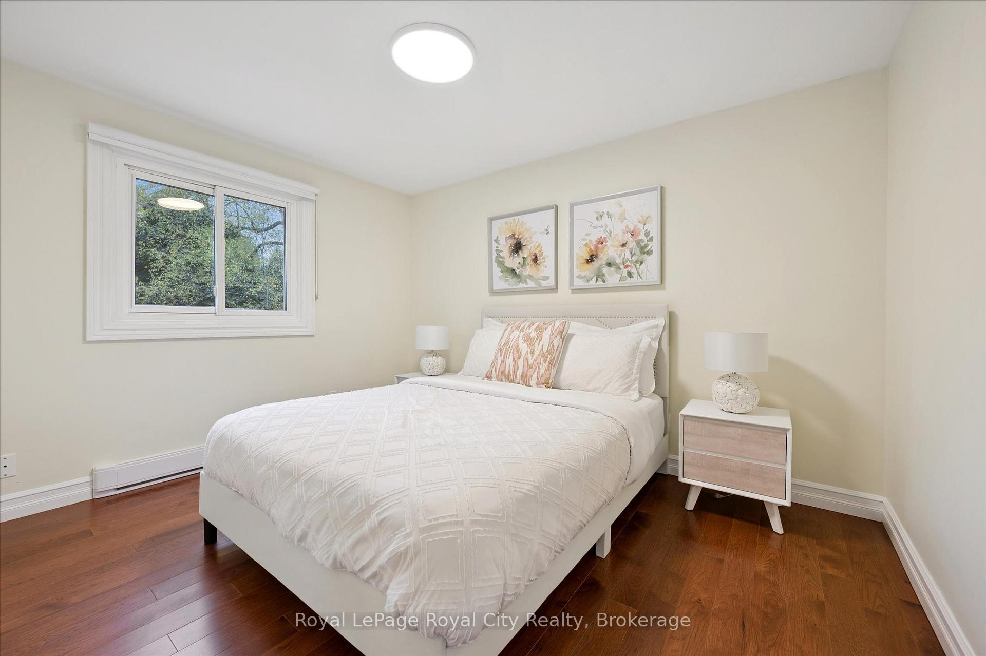 Tucked away on over an acre of peaceful, tree-lined property, this thoughtfully designed multi-level home offers a rare blend of space, style, and soul. From its inviting front porch to the rustic entertaining space out back, every inch of this 5-bedroom, 3-bathroom property invites connection with family, friends, and the natural beauty that surrounds it. Upon entrance, you will quickly fall in love with the open-concept design, enhanced by gleaming hardwood flooring. The chef-inspired kitchen showcases sleek Corian countertops, custom cabinetry, and a functional island that flows perfectly into the combined living/dining room, creating an elegant space for entertaining. A sizable main floor bedroom is ideal for guests or a home office, while a well-equipped mudroom supports busy family living. Descend to the show-stopping lower-level family room, anchored by an attractive fireplace, and flaunting vaulted ceilings, engineered hardwood, skylights, and floor-to-ceiling windows capturing breathtaking backyard views. The adjoining games/rec area is designed for fun and function, complete with heated floors, backyard access, and a modern 3pc bathroom. Upstairs, the 2nd level provides 2 generous bedrooms and a loft space, perfect for a reading nook or study, alongside an updated 4pc bathroom. The private, 3rd level offers a primary suite with a walk-in closet and a 5pc ensuite, as well as a 5th spacious bedroom. The finished basement extends a versatile living or recreational space, complemented by a dedicated laundry room and storage/utility room. Step outside and prepare to be captivated: a 2-tier stone patio frames alfresco dining and a rejuvenating hot tub area, while the rustic post-and-beam gazebo with a striking stone fireplace promises memorable evenings under the stars. Surrounded by mature trees and lush green space, this property evokes the feel of a private resort retreat- just minutes from essential amenities and ready to welcome your next chapter.