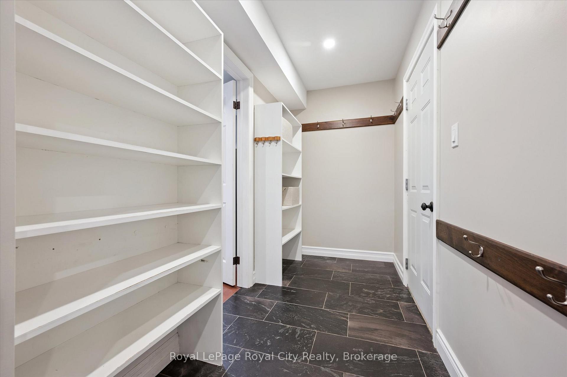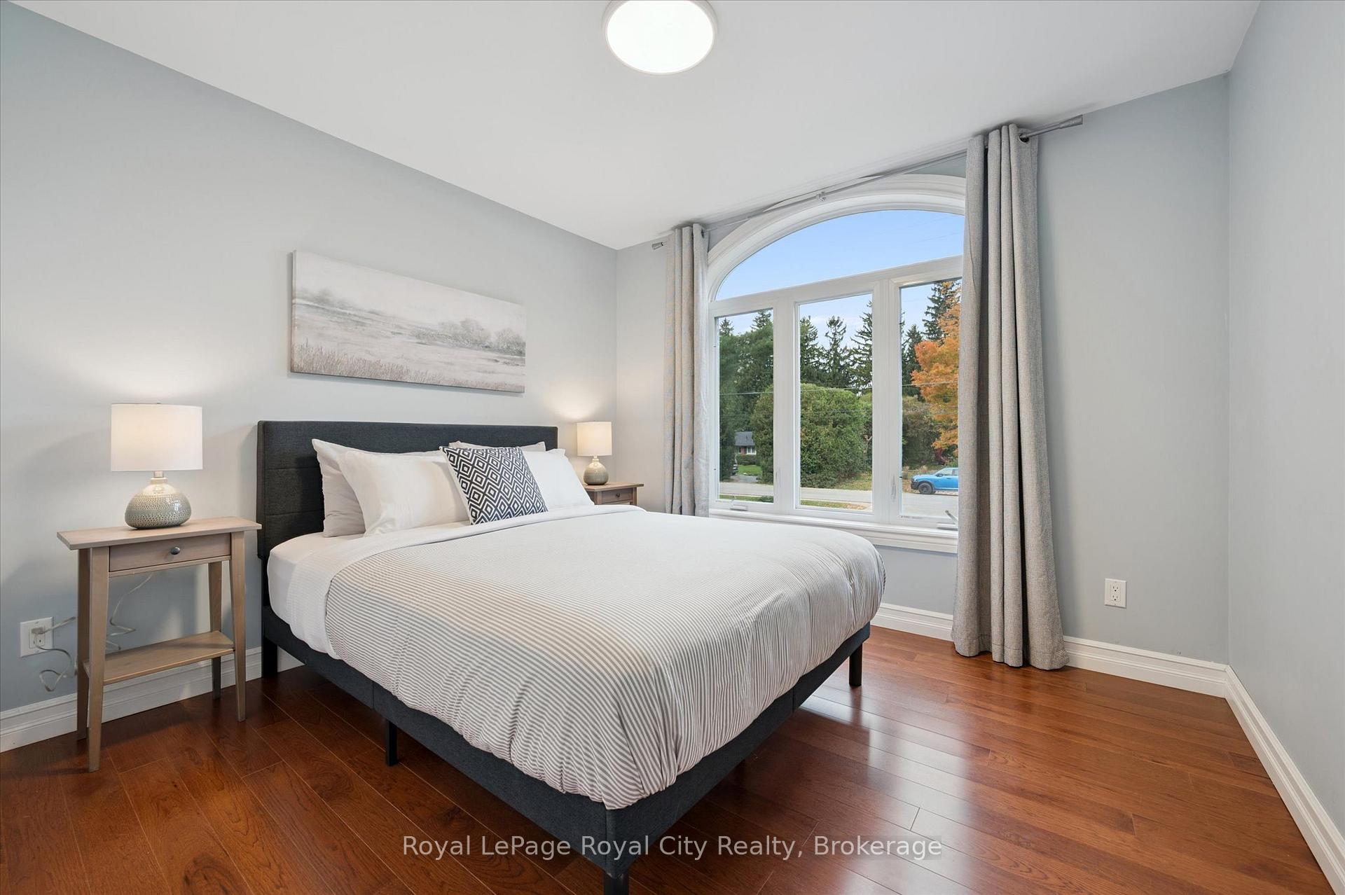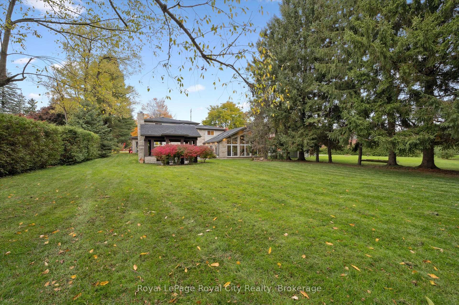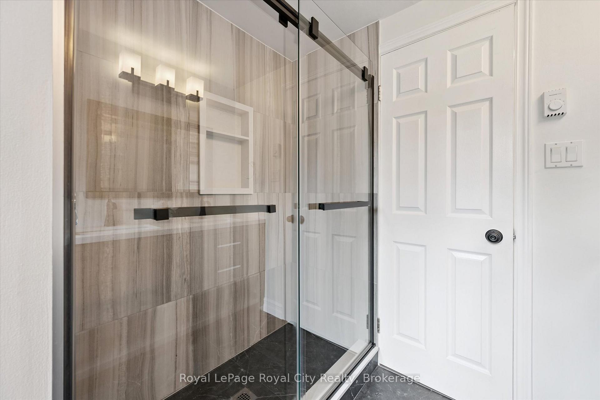 Tucked away on over an acre of peaceful, tree-lined property, this thoughtfully designed multi-level home offers a rare blend of space, style, and soul. From its inviting front porch to the rustic entertaining space out back, every inch of this 5-bedroom, 3-bathroom property invites connection with family, friends, and the natural beauty that surrounds it. Upon entrance, you will quickly fall in love with the open-concept design, enhanced by gleaming hardwood flooring. The chef-inspired kitchen showcases sleek Corian countertops, custom cabinetry, and a functional island that flows perfectly into the combined living/dining room, creating an elegant space for entertaining. A sizable main floor bedroom is ideal for guests or a home office, while a well-equipped mudroom supports busy family living. Descend to the show-stopping lower-level family room, anchored by an attractive fireplace, and flaunting vaulted ceilings, engineered hardwood, skylights, and floor-to-ceiling windows capturing breathtaking backyard views. The adjoining games/rec area is designed for fun and function, complete with heated floors, backyard access, and a modern 3pc bathroom. Upstairs, the 2nd level provides 2 generous bedrooms and a loft space, perfect for a reading nook or study, alongside an updated 4pc bathroom. The private, 3rd level offers a primary suite with a walk-in closet and a 5pc ensuite, as well as a 5th spacious bedroom. The finished basement extends a versatile living or recreational space, complemented by a dedicated laundry room and storage/utility room. Step outside and prepare to be captivated: a 2-tier stone patio frames alfresco dining and a rejuvenating hot tub area, while the rustic post-and-beam gazebo with a striking stone fireplace promises memorable evenings under the stars. Surrounded by mature trees and lush green space, this property evokes the feel of a private resort retreat- just minutes from essential amenities and ready to welcome your next chapter.