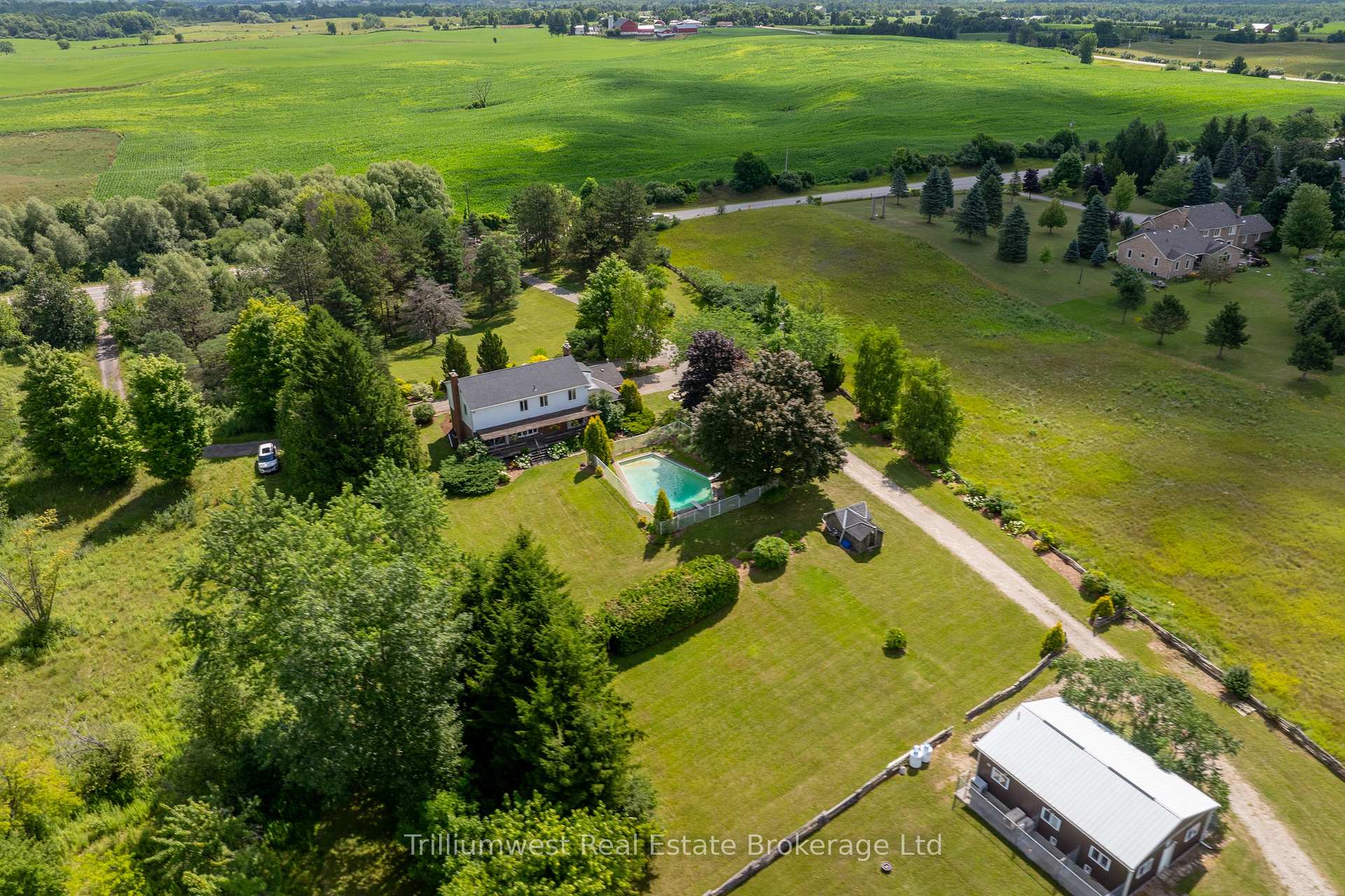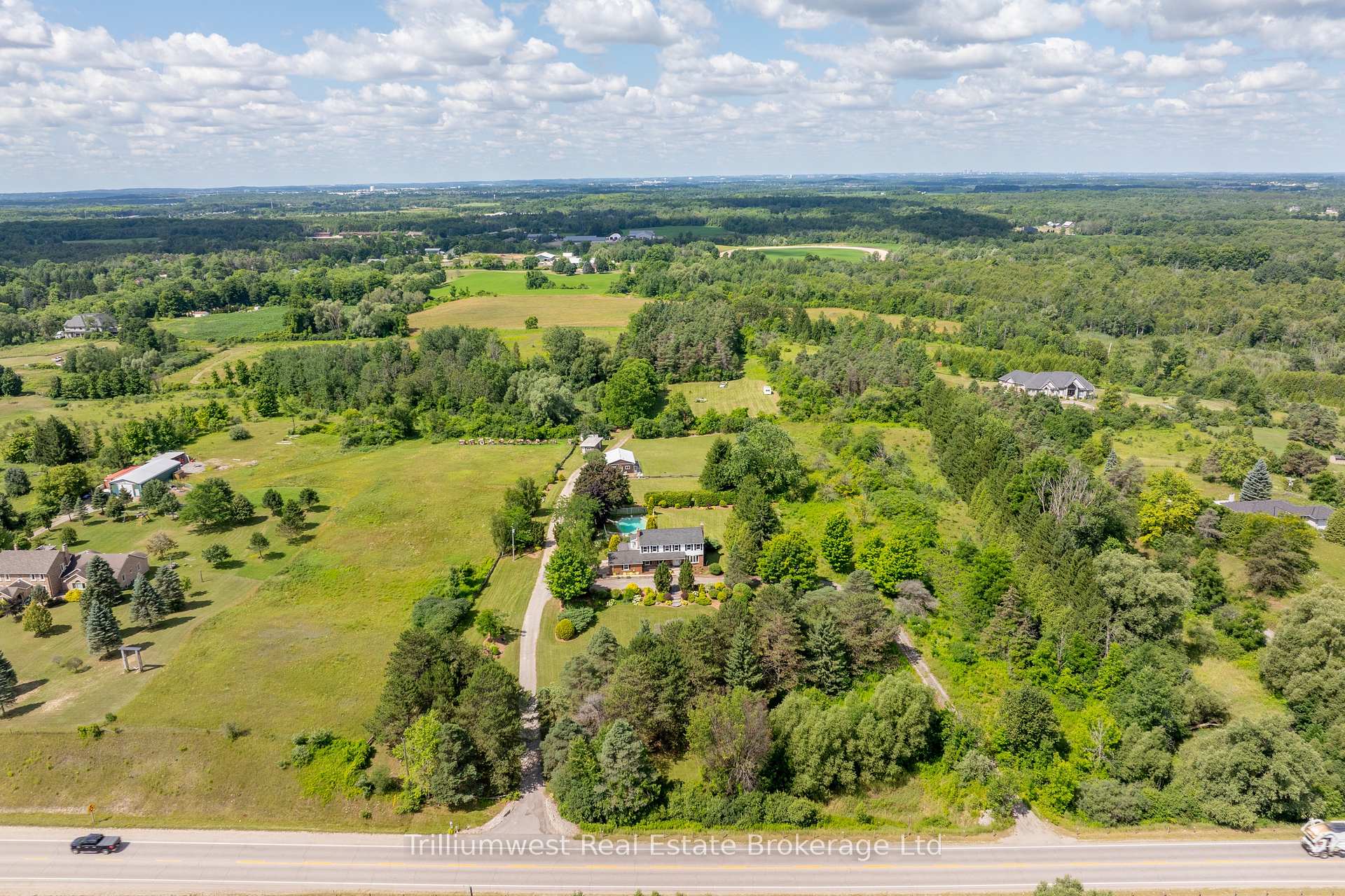 Stop the car!! An incredible opportunity awaits to own a stunning piece of property in a prime location just south of Guelph and only minutes to the 401. Offered for the first time in nearly 50 years, this cherished family estate spans over 9 acres with a depth of almost 1300 feet, offering a serene mix of forest and open fields and surrounded by other large properties for ultimate privacy. This expansive home offers ample space and opportunity to update and create your own dream. A morning coffee can be enjoyed on the covered front porch, and at the end of the day you can experience beautiful sunsets on the back deck. Explore winding trails, relax by the in-ground pool, or take advantage of the existing outbuilding formerly a dog kennel with endless potential for other uses. The approximately 3000 sq ft two-storey home features 4 spacious bedrooms and 4 bathrooms, including a large, bright eat-in kitchen with a centre island, a family room, living room, and a versatile converted garage space perfect for additional living, storage, or returning to a double garage. The basement with a separate entrance opens up even more possibilities. Beautifully landscaped and welcoming from the moment you arrive, this property offers a rare blend of peaceful country living with exceptional convenience – your private escape is here.