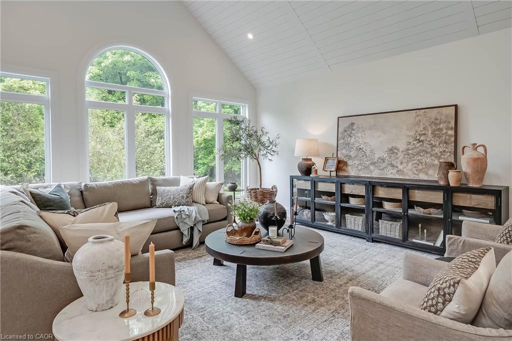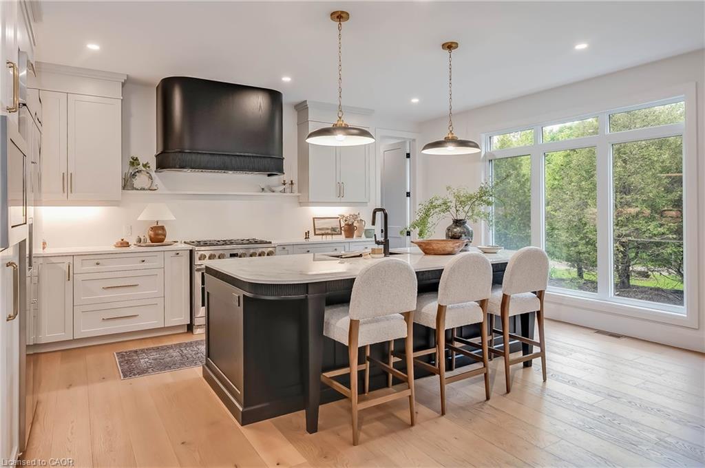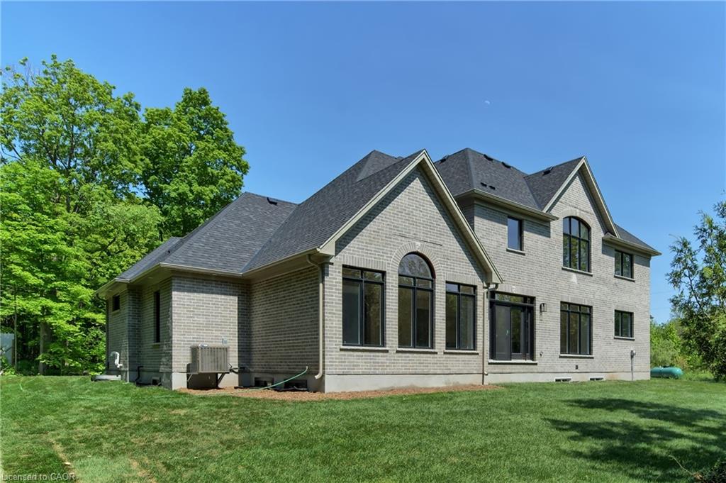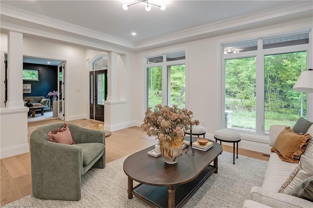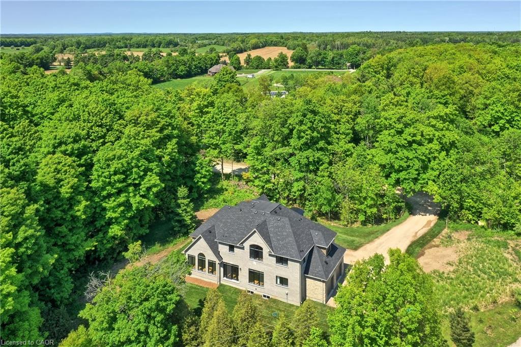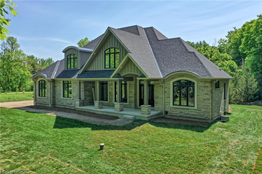 Nestled in the picturesque Puslinch community on a pristine country road, this immaculate custom home offers refined traditional elegance with contemporary convenience. Ideally located southeast of Guelph and northeast of Aberfoyle, this location combines the serenity of country living with easy access to city amenities just 10 min away. Meticulously crafted by renowned Charleston Homes, this 3600 square foot (plus 500 sf of finished lower level space)showcases exceptional craftsmanship, expansive glazing, cathedral ceilings + unique designer details on a 1-acre lot.The aesthetic is classic yet sophisticated, perfectly blending traditional charm with modern comforts. The clever floor plan connects principal living spaces while ensuring privacy when desired. The heart of the home is the stunning Barzotti kitchen, complete with a walk-in pantry + ample cabinetry. Connected to the informal dining area and family room with soaring cathedral ceiling, this central hub features full-wall glazing framing lush, treed views. The mudroom is highly functional w/built-ins + interior access to the triple garage, complemented by a well-placed three-piece bath + coat closet. The primary suite is a sanctuary w/double-door entry, vaulted ceiling, expansive glazing, generous walk-in closet + a luxurious ensuite featuring a deep soaker tub, oversized glass shower +water closet. Two additional bedrooms are generously sized, each with ample storage, extensive glazing+private ensuites. A convenient laundry area completes this level. The partially finished lower level adds a fourth bedroom with walk-in + private ensuite, plus additional space with large windows, a rough-in for a two-piece bath + high ceilings. Charleston Homes has been building exceptional custom homes for over 30 years, known for quality craftsmanship and timeless style. This exquisite home offers the perfect blend of sophisticated living, natural beauty + proximity to major highways and urban amenities.