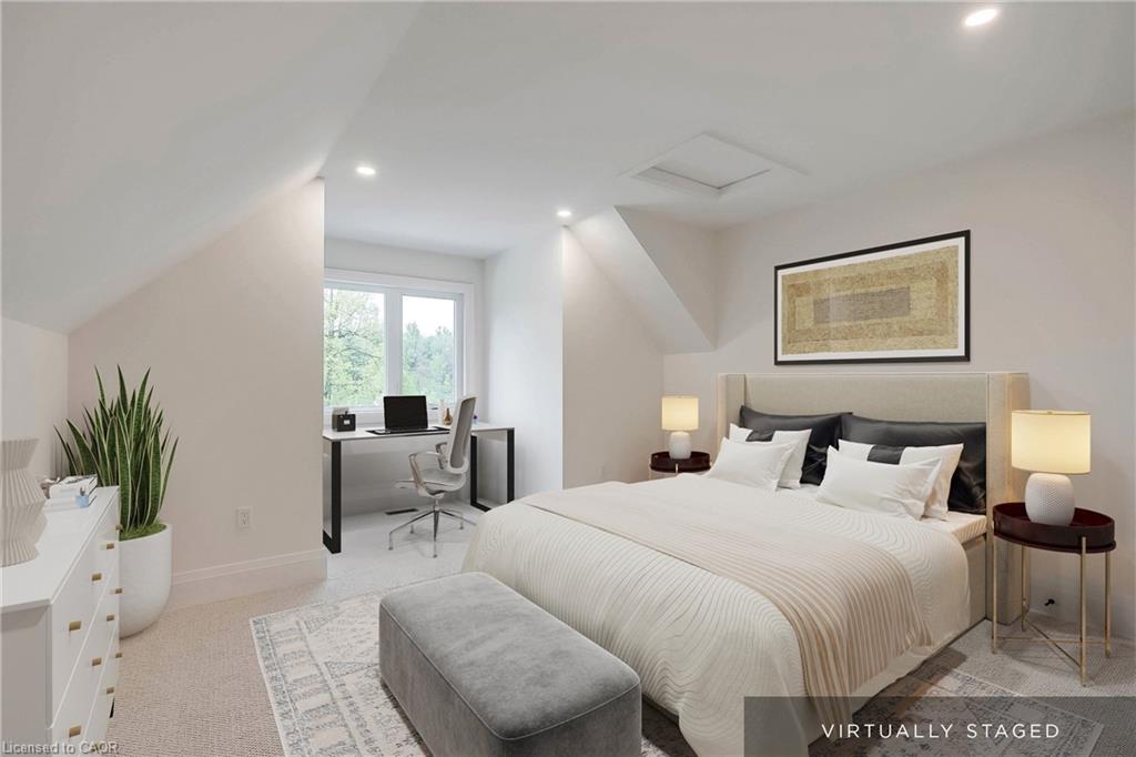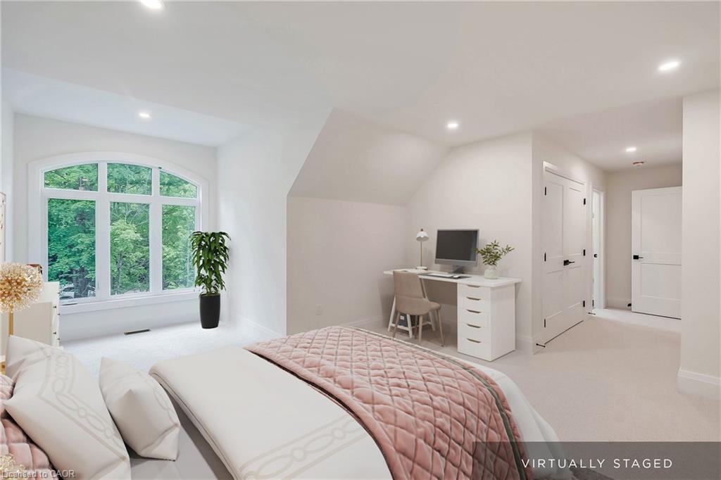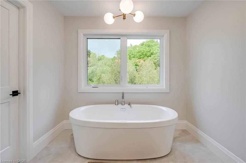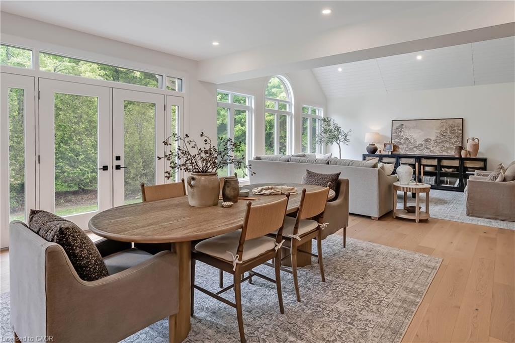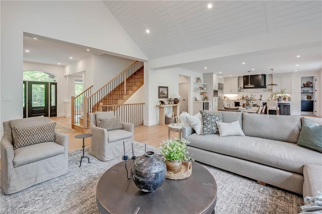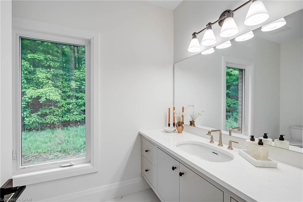 Nestled in the picturesque Puslinch community on a pristine country road, this immaculate custom home offers refined traditional elegance with contemporary convenience. Ideally located southeast of Guelph and northeast of Aberfoyle, this location combines the serenity of country living with easy access to city amenities just 10 min away. Meticulously crafted by renowned Charleston Homes, this 3600 square foot (plus 500 sf of finished lower level space)showcases exceptional craftsmanship, expansive glazing, cathedral ceilings + unique designer details on a 1-acre lot.The aesthetic is classic yet sophisticated, perfectly blending traditional charm with modern comforts. The clever floor plan connects principal living spaces while ensuring privacy when desired. The heart of the home is the stunning Barzotti kitchen, complete with a walk-in pantry + ample cabinetry. Connected to the informal dining area and family room with soaring cathedral ceiling, this central hub features full-wall glazing framing lush, treed views. The mudroom is highly functional w/built-ins + interior access to the triple garage, complemented by a well-placed three-piece bath + coat closet. The primary suite is a sanctuary w/double-door entry, vaulted ceiling, expansive glazing, generous walk-in closet + a luxurious ensuite featuring a deep soaker tub, oversized glass shower +water closet. Two additional bedrooms are generously sized, each with ample storage, extensive glazing+private ensuites. A convenient laundry area completes this level. The partially finished lower level adds a fourth bedroom with walk-in + private ensuite, plus additional space with large windows, a rough-in for a two-piece bath + high ceilings. Charleston Homes has been building exceptional custom homes for over 30 years, known for quality craftsmanship and timeless style. This exquisite home offers the perfect blend of sophisticated living, natural beauty + proximity to major highways and urban amenities.