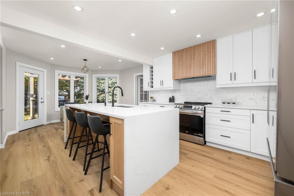Welcome to 455 Winchester Drive! A beautifully updated 4-bedroom home in Waterloo’s Beechwood West, offering nearly 2,500 sq. ft. of refined living plus a finished basement. With its mature lot, double garage, and stylish updates throughout, it’s the perfect blend of space, comfort, and sophistication. Check out our TOP 7 reasons why this home could be the one for you: #7: BEECHWOOD WEST: Located in one of Waterloo’s most desirable neighbourhoods, Beechwood West is known for its quiet streets, mature trees, and strong community atmosphere. You’re minutes from top-rated schools, scenic trails, community pool & tennis courts plus local parks. #6: CURB APPEAL & LOT: From the extended double driveway to the inviting covered porch, this home makes a beautiful first impression. #5: MAIN FLOOR LAYOUT: The bright, open main floor features luxury vinyl plank flooring and plenty of pot lights throughout. You’ll also find a cozy family room with a wood-burning fireplace and main-floor laundry. #4: STYLISH EAT-IN KITCHEN: The updated kitchen features quartz countertops, S/S appliances, under counter lighting and an elegant waterfall island. Just off the kitchen, enjoy a formal dining room while a bright dinette with a walkout to the deck provides effortless indoor-outdoor living. #3: FULLY-FENCED BACKYARD: Host summer BBQs on the deck, unwind in the hot tub, or enjoy a good book beneath mature trees. #2: BEDROOMS & BATHROOMS: The primary suite offers a walk-in closet with custom built-ins, and a private 5-piece ensuite with double sinks and dual shower heads. #1: FINISHED BASEMENT: The expansive, carpet-free basement adds impressive versatility, featuring two large rec rooms illuminated by abundant pot lights. One includes a stylish feature wall and fireplace, while the other boasts a sleek wet bar. A flexible bonus room makes an ideal home gym or office, and you’ll also find an oversized cold cellar plus an updated 3-piece bathroom with heated floors and a walk-in shower.
