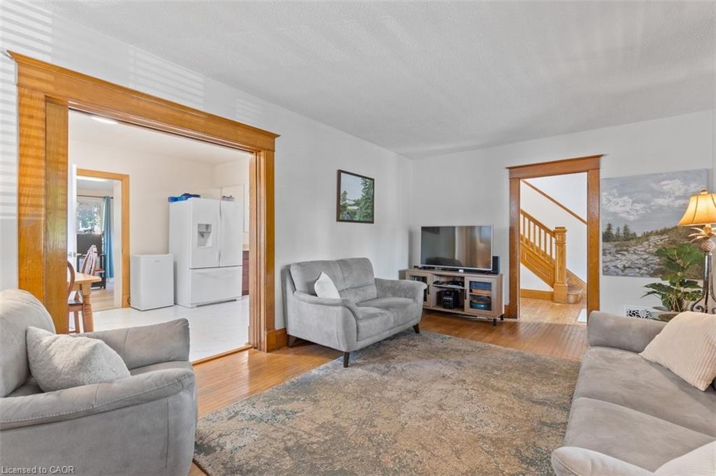 Wow! Over $100,000 in updates, a main floor addition featuring a bedroom or home office with its own separate entrance and 3 piece bathroom. This home offers 3 full bathrooms, and is just 2 minutes to the Bob McMullen Linear Trail and Grand River! Location matters and this one delivers. You’re in the heart of Preston, just a short walk to the high school, public school, downtown shops and cafés. This is the kind of neighbourhood people stay in for years because it simply feels like home. Curb appeal is spot on with a new roof (2025) classic brick exterior, newer windows framed with white siding, all set on a sunny corner lot. The covered front porch spans the width of the home making it perfect for morning coffee or evening chats. Step inside and you’re greeted by original hardwood trim, hardwood flooring, and a cozy wood burning fireplace that sets the tone right away. The main floor flows easily from living room to dining room to kitchen, with sliding glass doors connecting the spaces for effortless everyday living and entertaining. Upstairs, you’ll find three generous bedrooms with hardwood floors, high ceilings, and plenty of natural light, plus a well appointed 4 piece bathroom. The finished basement adds even more living space featuring a comfortable rec room, an additional bedroom and a 3 piece bathroom, with a separate side entrance ideal for extended family, guests, or income potential. Newer windows 2019, new water softener 2024, Electrical updated 2014