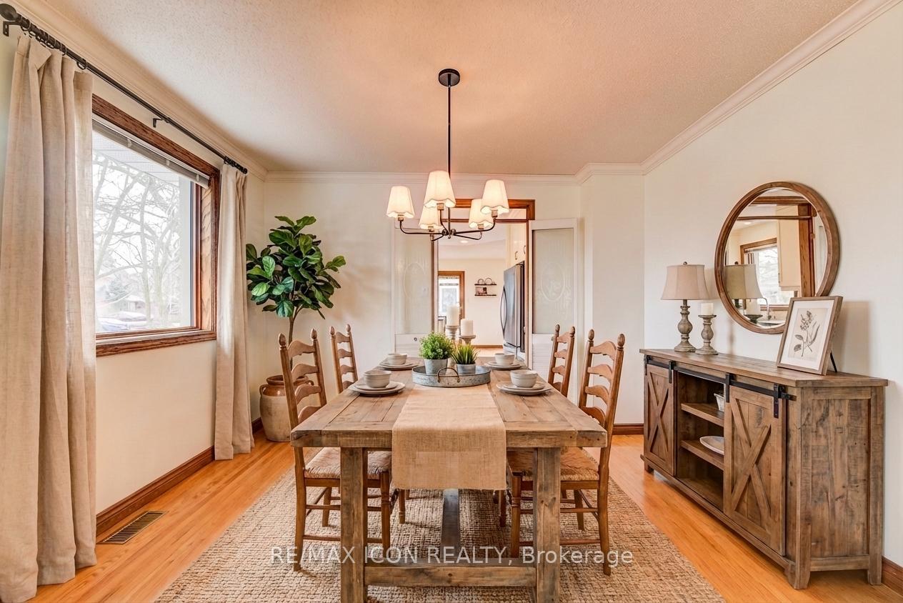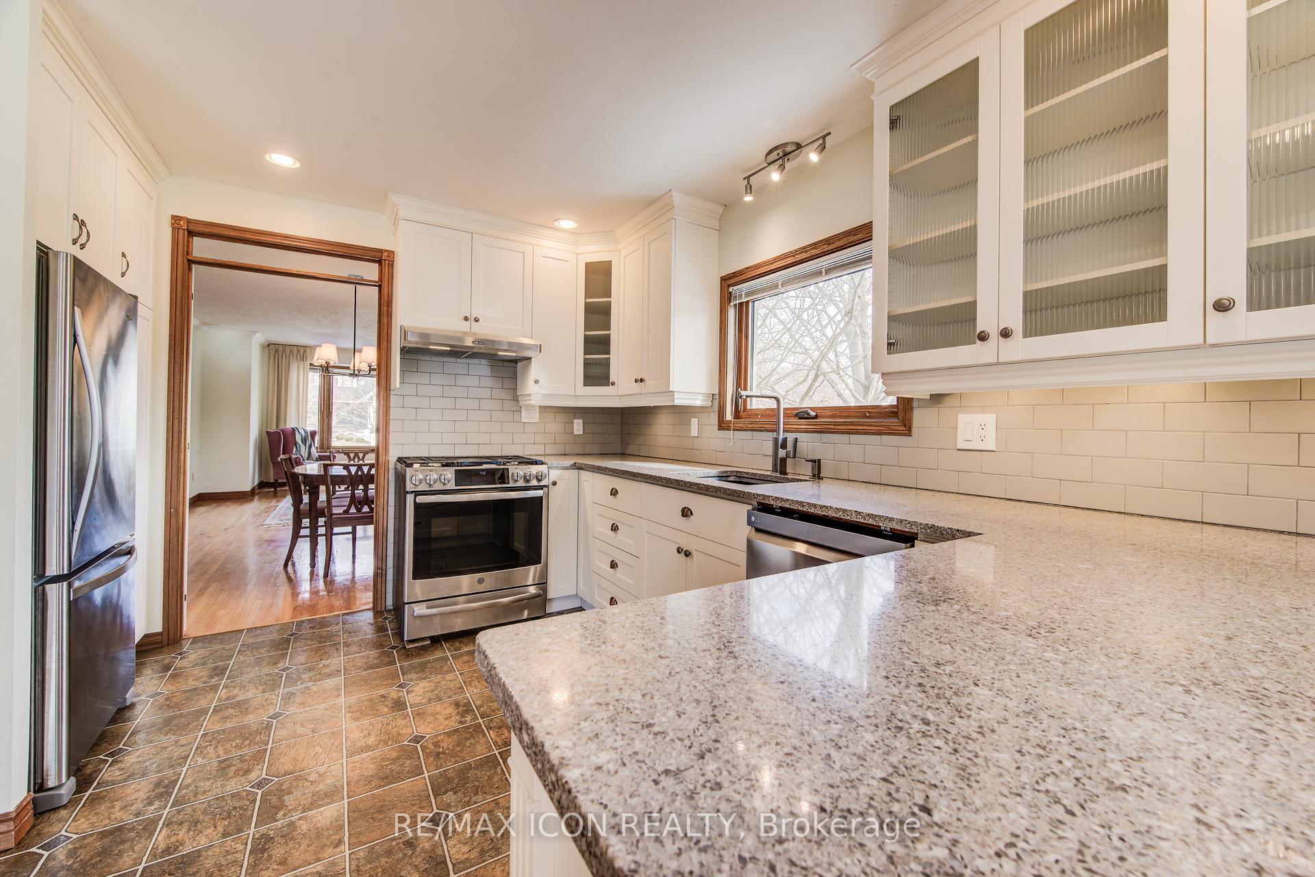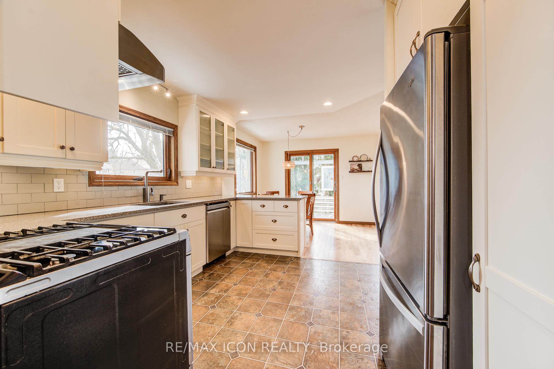 Welcome to 458 Winston Blvd. This Executive-style Hespeler bungalow offers over 3,000 sq ft of finished living space, set on a large private lot and featuring a double car garage. From the moment you enter, you’re welcomed by wide hallways finished with engineered hardwood, creating an immediate sense of space and quality. The main floor features a spacious separate living room and a dedicated formal dining room, along with 3 generously sized bedrooms and 2 full bathrooms, including a generous primary suite with its own ensuite. Bright, oversized rooms and large windows throughout provide an abundance of natural light. The fully renovated kitchen showcases custom cabinetry and stainless steel appliances, quartz countertop and includes a bright kitchen dinette with views of the rear yard. The kitchen opens into a welcoming living room with a cozy gas fireplace and large bay windows-perfect for everyday living and entertaining. The finished basement adds exceptional versatility with a dedicated office space, a full spa-style bathroom with sauna, and plenty of additional living area. Step outside to enjoy the expansive yard complete with a deck featuring a durable vinyl surface, a separate shed, and ample space for a workshop. Triple-pane, top-of-the-line windows throughout the home add comfort and efficiency. Additional features include a secondary electrical panel and central vacuum, Windows 2014, 35 year shingled roof 2005, Furnace and A/C 2014. A rare opportunity to own a spacious, well-appointed bungalow with premium features inside and out.