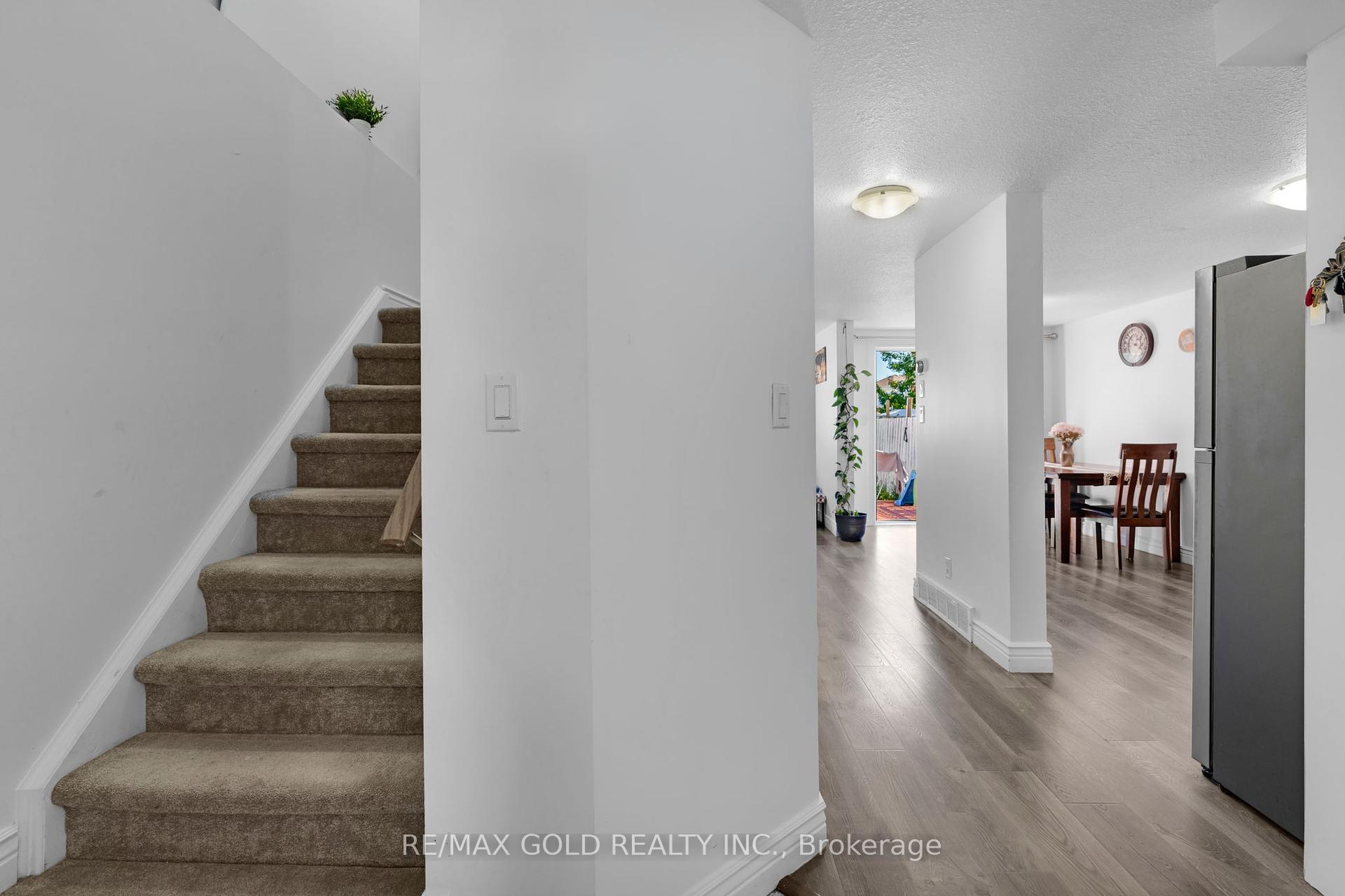 Welcome to your new home! This well-cared semi offers 3 bedrooms and 2 bathrooms, and plenty of space for the whole family. The spacious living room features a large window that fills the space with natural light, while the eat-in kitchen has a convenient walkout to the backyard. Fire up the BBQ and get ready to enjoy some burgers in this outdoor space. Outside, you’ll love the partially fenced yard with a private deck. The top level has 3 Spacious Bedrooms and a full4-piece family bathroom. Additional features include an attached garage. The Home Owners has recently changed all windows, Roof 2019, Heating and Air Conditioner service 2024, Newly Painted. You can move in with peace of mind. This home is close to schools, transit, trails, shopping, and major highways (HWY 7/8 & 401) making this property the perfect starter home in a family-friendly location. Come see it today!