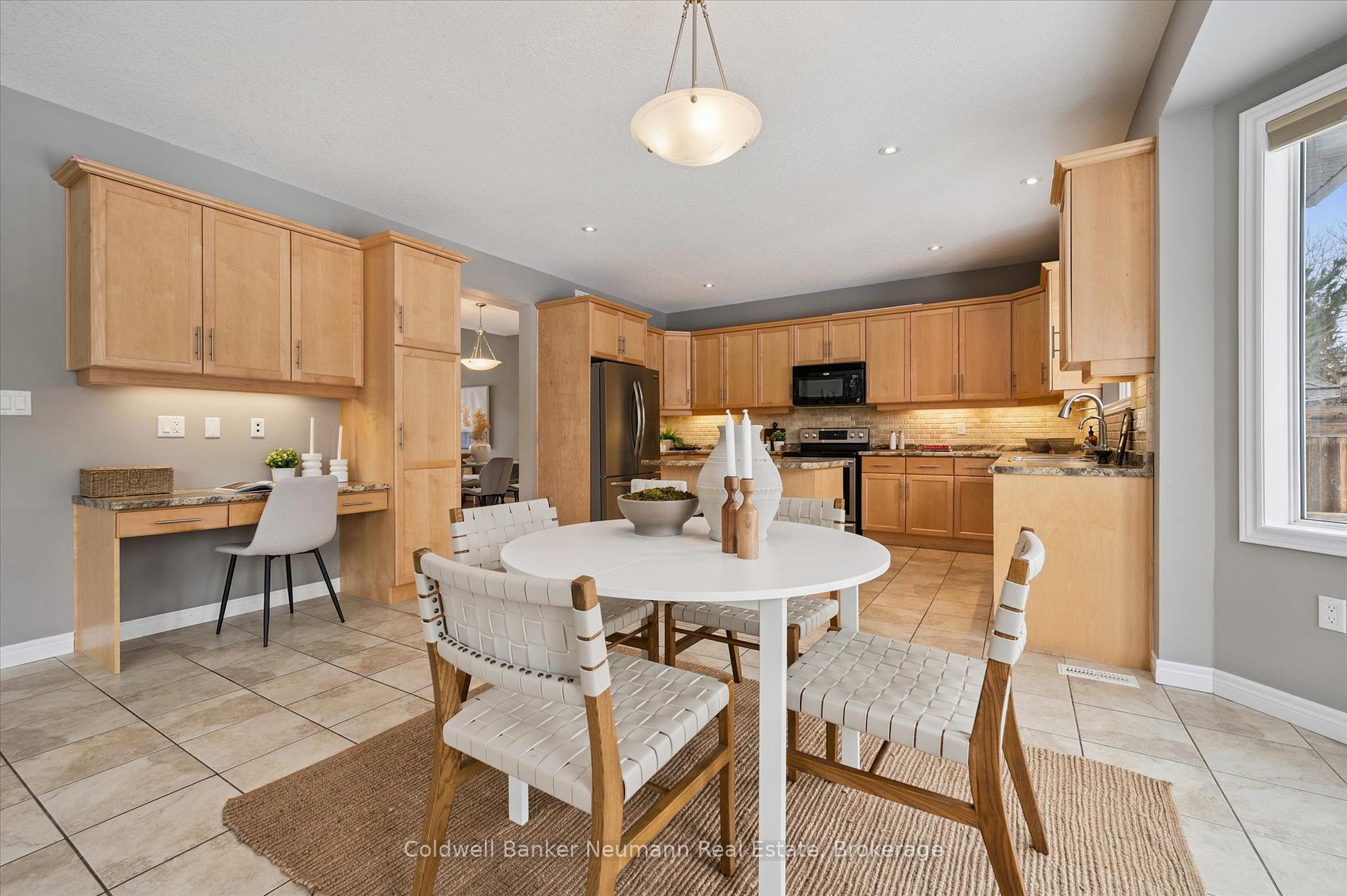 Built in 2015 by Carson Reid Homes, this beautifully crafted home offers a blend of space, natural light, and timeless curb appeal in the heart of Elora. Set on a quiet street in one of Elora’s most desirable communities, the home features a classic exterior. The perennial gardens flourish all summer long and received one of the “Elora and Salem Horticulture Society Award for Great Garden Awards” (2022). Inside, this home offers generous living space designed for comfortable family living. A gracious front entrance welcomes you, where large windows fill the living room with natural light. Behind the living room is the dining room which provides an inviting place to gather. Across the back of the home and overlooking the backyard, the kitchen offers abundant cupboard and counter space along with an island and a breakfast area. The kitchen flows seamlessly into a spacious family room filled with natural light-an ideal setting for everyday living. Through the patio doors is direct access to the backyard. The main floor features a versatile office that could serve as a fifth bedroom. Accompany this floor is the laundry room and powder room. One of the home’s most striking features is the staircase, where large windows, skylights, and a voluminous ceiling create a dramatic and light-filled focal point. Upstairs, there are four well-sized bedrooms. The primary suite includes a walk-in closet and a luxurious ensuite. The three additional bedrooms are generous in size. The large front room features a Murphy bed, making it a versatile space. The basement provides excellent ceiling height and endless possibilities for future living space – a recreation room, gym, or additional bedrooms (roughed in for additional bathrooms). Located just minutes from the shops, restaurants, and natural beauty that make Elora so beloved, this home is close to parks, schools, and scenic countryside while remaining accessible to the surrounding community.