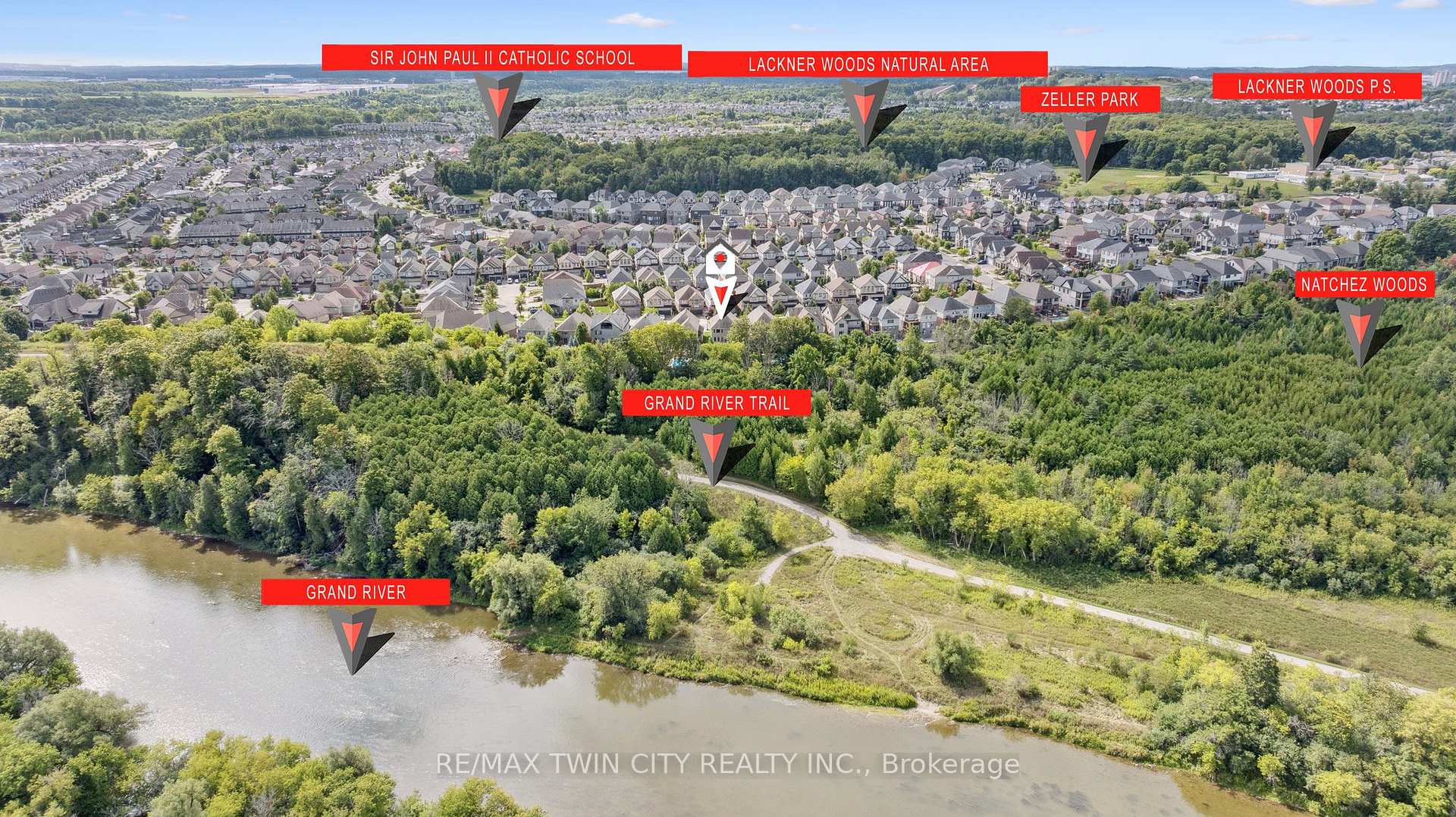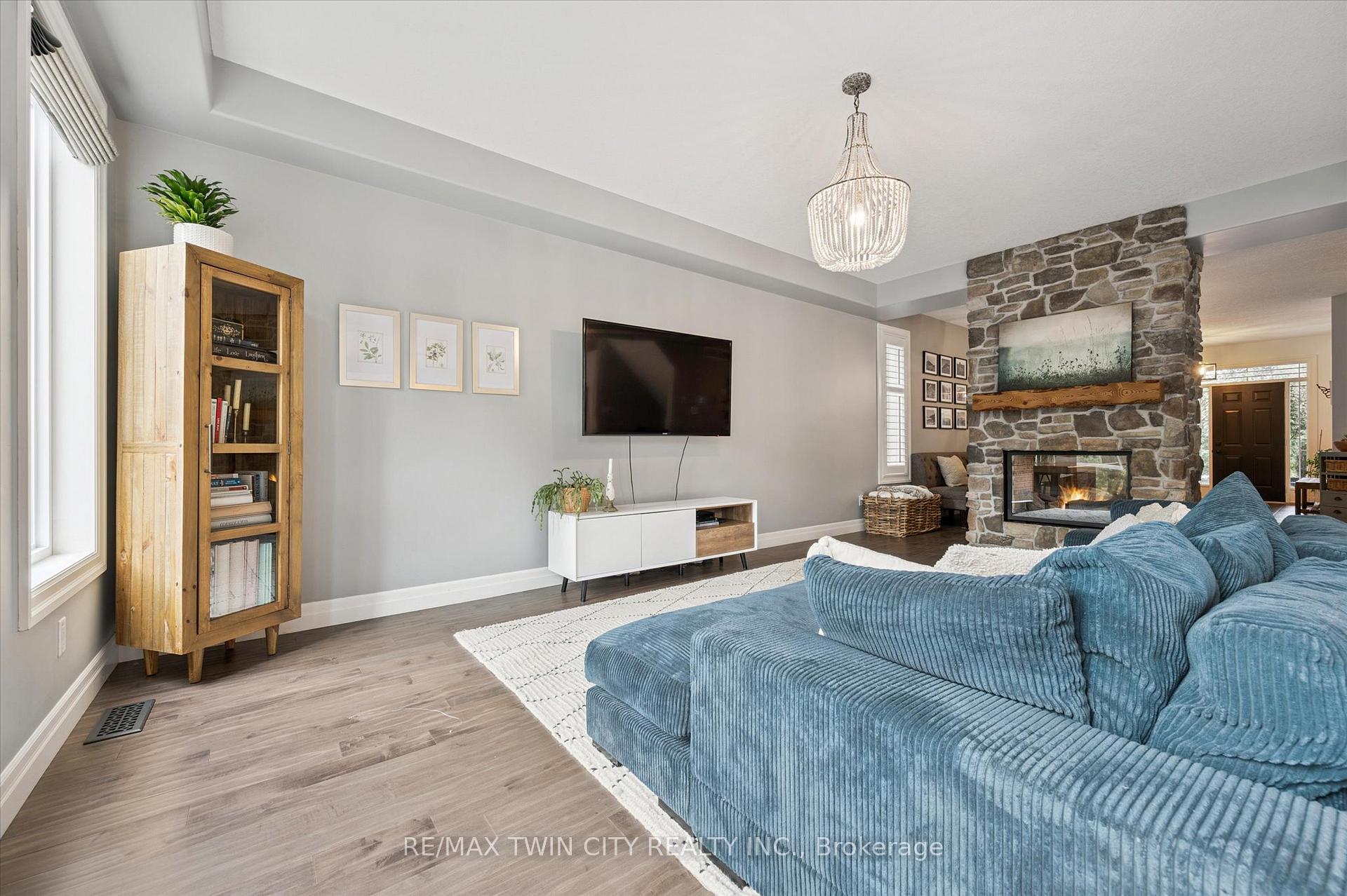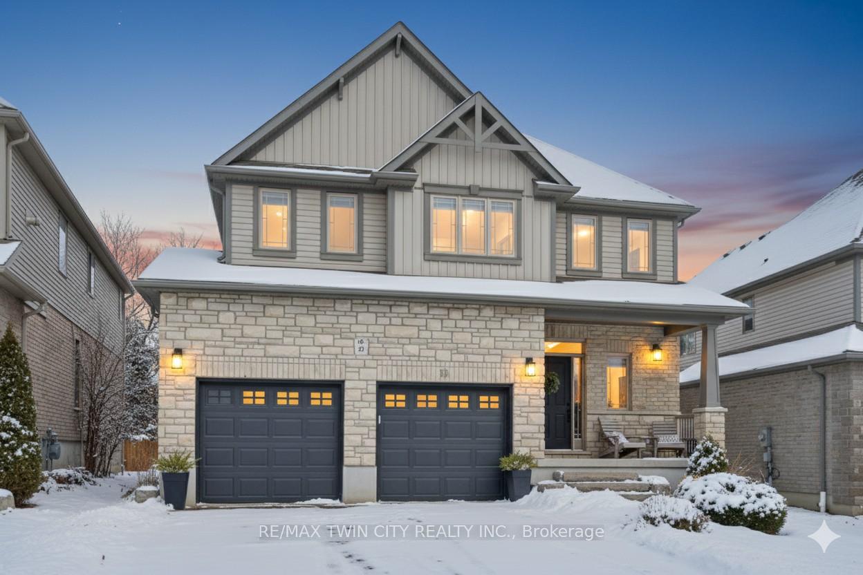 Welcome to this stunning custom-built home in the highly sought-after Lackner Woods neighbourhood in Kitchener. Tucked against a backdrop of mature trees and backing onto green space with no rear neighbours, this home offers a peaceful, nature-inspired lifestyle just minutes from city conveniences. Outdoor enthusiasts will love the endless options for hiking, jogging, canoeing and exploring the surrounding parks and trails including direct access to the scenic Grand Valley Trail and Walter Bean Grand River Trail. Located close to Springmount Park, Idlewood Creek, and the Grand River Natural Area. Chicopee Ski & Summer Resort is also nearby, offering snowboarding, downhill skiing, tubing and more! Inside, the home is equally impressive. The heart of the main floor is a breathtaking floor-to-ceiling Muskoka-style, two-sided stone fireplace that warms both the great room and the dining area. The chefs kitchen is a show stopper featuring an oversized island and open-concept layout with direct access to the large laundry/mudroom and a walkout to the backyard deck. Upstairs, the primary suite is a true retreat with its spacious dressing room/walk-in closet and luxurious 5-piece ensuite. Two additional bedrooms, a 4-piece bath, and a flexible upper-level family room or office space complete this level. The walkout basement offers 9 foot high ceilings, oversized windows, rough-in for a bathroom, and endless potential to customize to your needs. Step outside to enjoy additional living space with a backyard deck off the kitchen, a beautiful stone patio, outdoor firepit and a level yard that backs onto nature. A 16′ x 10′ concrete pad is ready for your future shed. Situated on one of the largest lots in the neighbourhood, this home offers a Muskoka-like setting right in the city with easy access to Highway 401, Highway 24, Guelph, and all the amenities you need. Come experience the perfect blend of nature, comfort, and convenience.