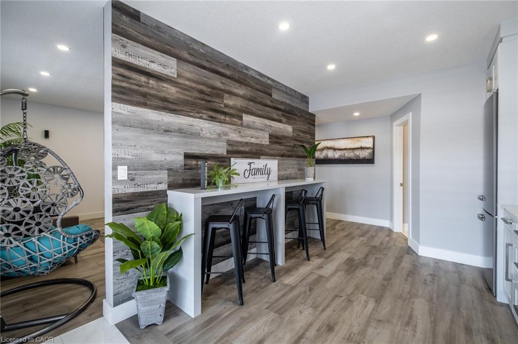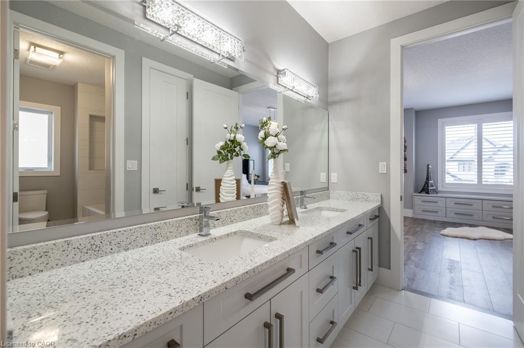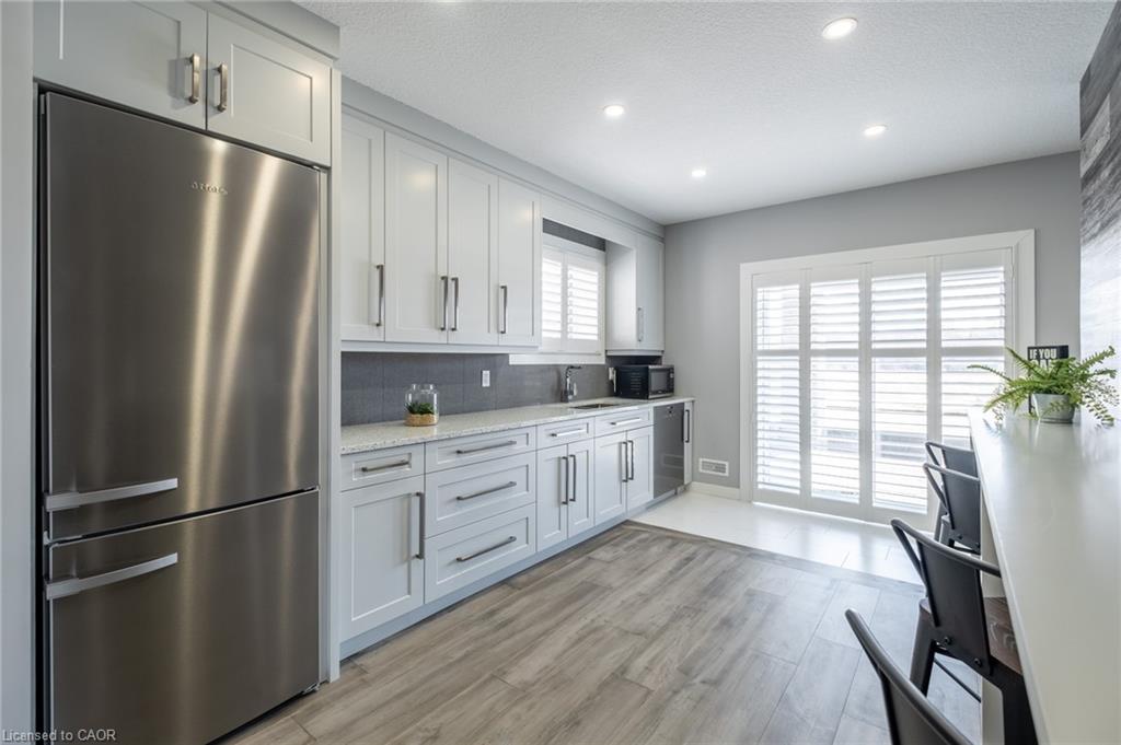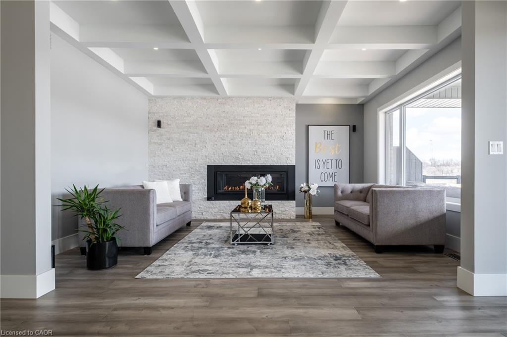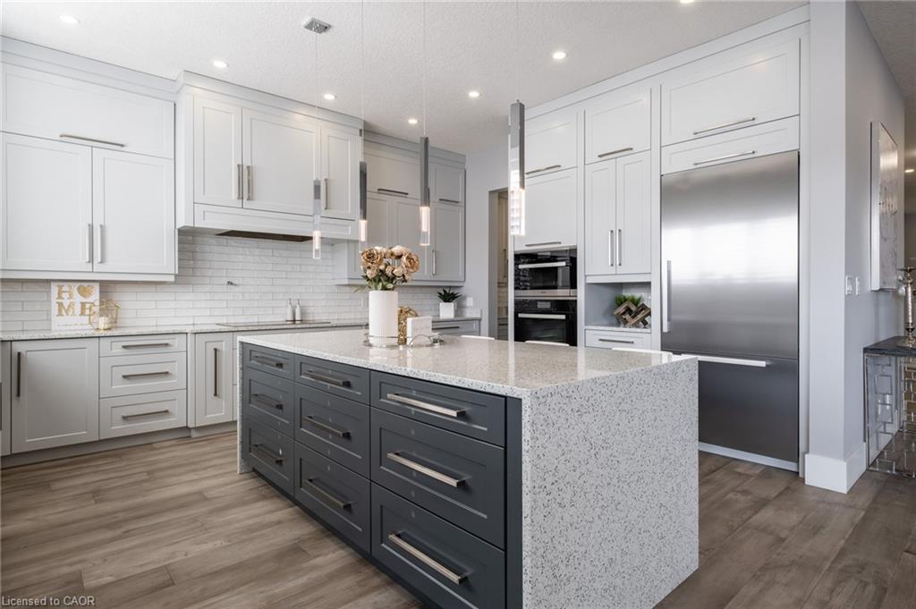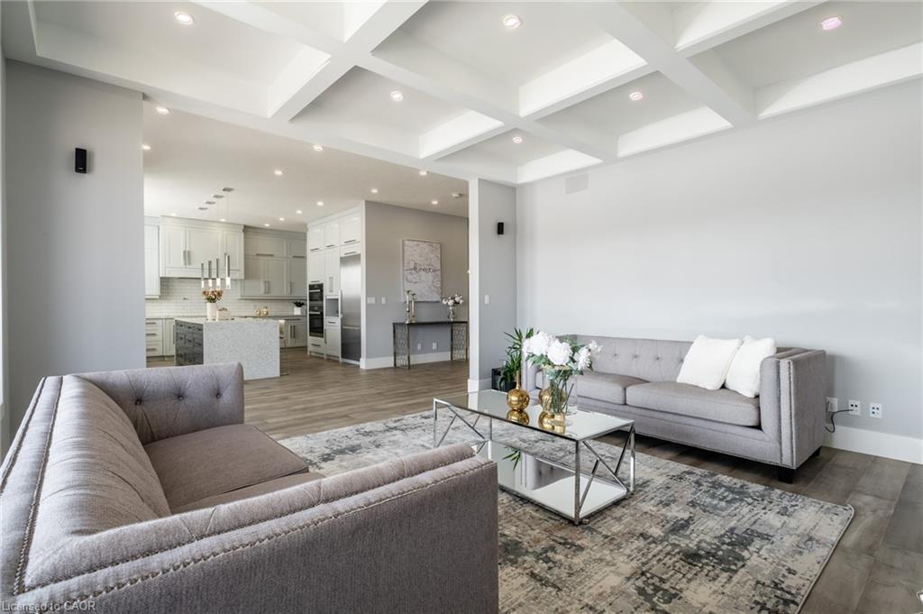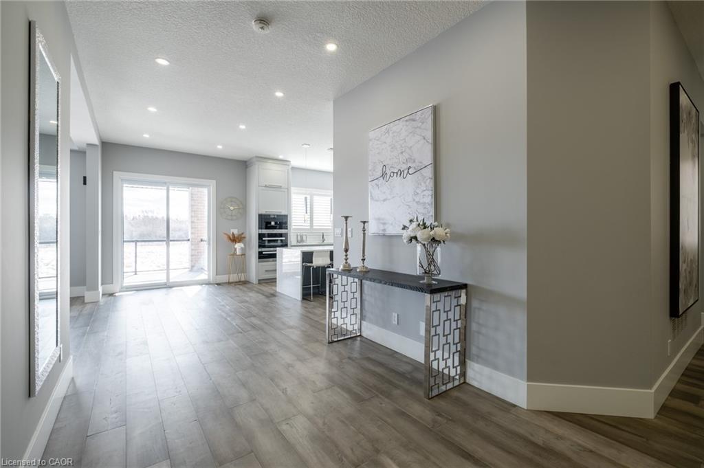 Modern Luxury nestled along the banks of the Grand River. Beautifully appointed 4+3 bedroom, 5.5 bathroom home sits on a rare greenspace walkout lot backing onto a protected naturalized area. Open concept living, smart controlled home including elaborate surveillance system, built in sound, exterior lighting, irrigation, garage, front door and more. Enjoy entertaining in your oversized kitchen where you will create amazing meals and memories. Storage won’t be an issue with cabinetry running floor to ceiling featuring built in high end Miele appliances & waterfall countertop centre island. A butler pantry & walk in pantry separates the kitchen from the dining room. The family room takes full advantage of the unobstructed beautiful greenspace view. A linear gas fireplace & waffle ceiling create ambiance & style. The covered composite deck with glass rails provides additional premium outdoor entertaining space. A stunning maple staircase with stainless steel spindles leads to the spacious second level which features 4 large bedrooms, 3 beautiful bathrooms, practical second floor laundry, & additional loft space. Primary bedroom is located at the back of the home to also take advantage of the stunning views; also featuring beautiful tray ceiling, his & her walk-in closets and luxury 5 pc ensuite with free standing tub and multi-jet glass shower with automated temperature control. The walkout fully finished basement makes it ideal for an extended family; large windows and high quality finishing is also consistent throughout the basement. Three bedrooms, 2 – 3pc bathrooms, second laundry, recreation room with projection system and surround sound, and a wet bar that can easily serve as a kitchenette. An additional ground level patio space makes for a second separate outdoor entertaining area complete with firepit.