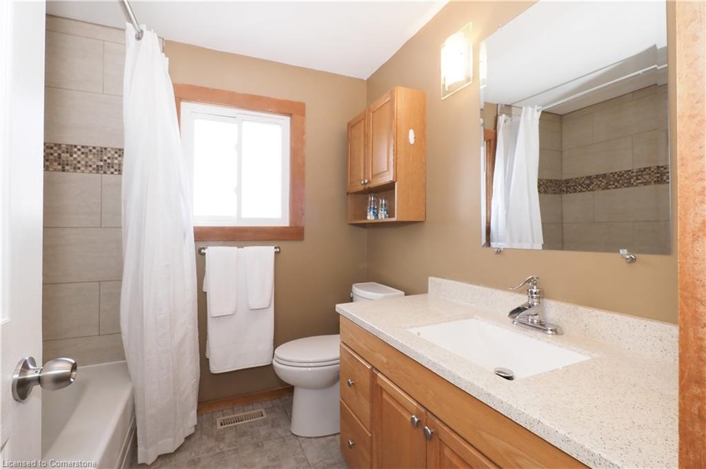 The upper-level bathroom was updated in 2014 with a new vanity, toilet, shower surround, and window. The lower level was professionally renovated down to the studs in 2014, including new drywall, a 3-piece bath, updated laundry room windows, and a cozy family room with California ceilings.