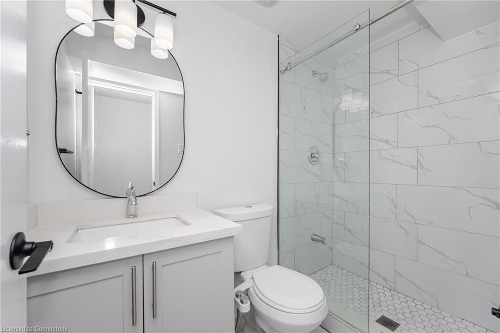 entrance, new custom kitchen with stainless steel appliances, a 3-piece bathroom,