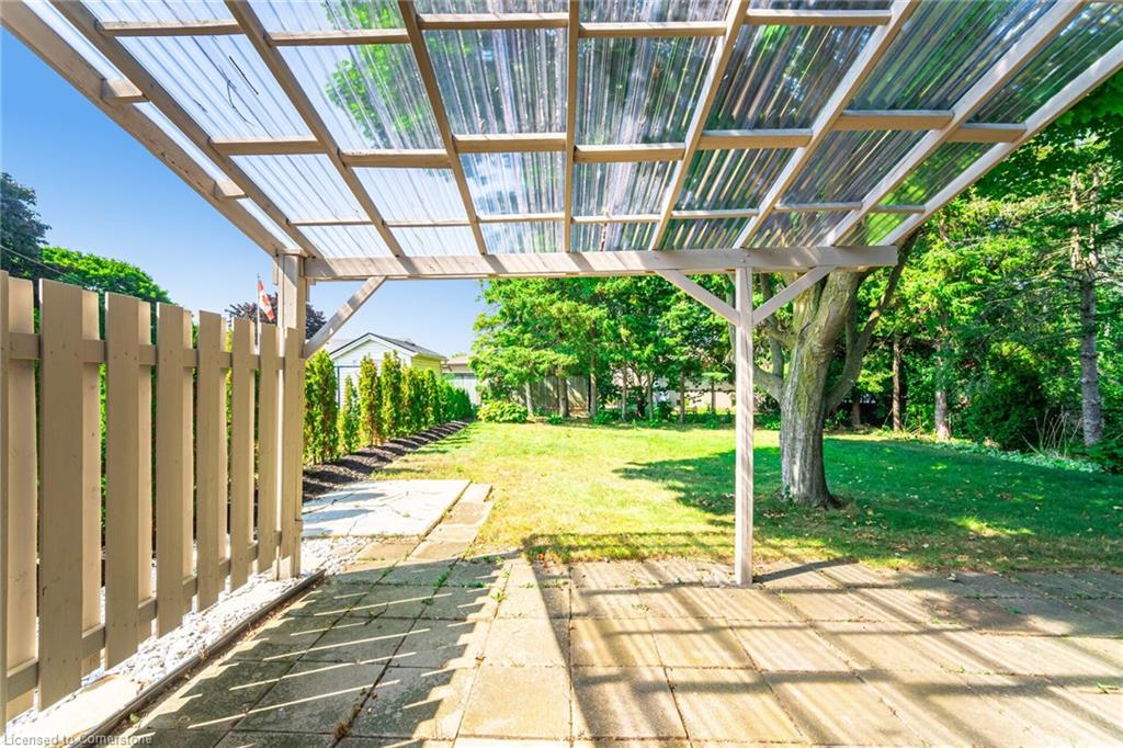 kitchen to a private backyard with patio and mature trees—perfect for relaxing or