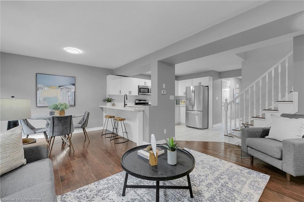 474 Colt st is an executive townhome in an exceptional area, equipped with 3 beds & 4 baths, while featuring a backyard that is rarely found in a townhome, full sun & 149 feet deep! Home sits on a beautiful street with mature trees, pride of ownership throughout entire community will be felt , with real curb appeal. Ample driveway space and a private single car garage with a man-door to the inside and one to the instagram ready back yard. It will be virtually impossible to find a town home in Waterloo with a better backyard. Partially fenced with an entertainers deck and lush landscaping! Host family functions, gatherings, quiet evenings and BBQ’s in your new homes back yard space! Colt street is carpet free on the main and upper levels, with beautiful wide plank hardwood flooring, a tasteful rock accent wall in the living room & a completely upgraded kitchen with quartz counters, modern matte black Faucets and brand new back splash, all finished in 2025. Tremendous cupboard space & ample counter space for cooking and entertaining. Main floor boasts storage with a pantry space, powder room & sliding glass doors to your outdoor space! Upper level master bedroom feels like home & a beautiful ensuite bath! Lower level provides additional rec room living area, cold room & utility room for storage, and a perfect office nook for those working from home or in need of a games computer! Your 4th bathroom completes the lower level. 474 Colt st is surrounded by the best amenities Waterloo has to offer. Steps to trials and the grand river, quickest access to RIM park, community golf and some of the best and most sought after schools. This home is within the boundaries of some of the top educators in the region, including best in class ECE, Brittany C @ Lexington Public School! Homes in this area rarely become available, this home will be gone in a hot minute, book a viewing ASAP. Great Area – Great Neighbours – Great Home!