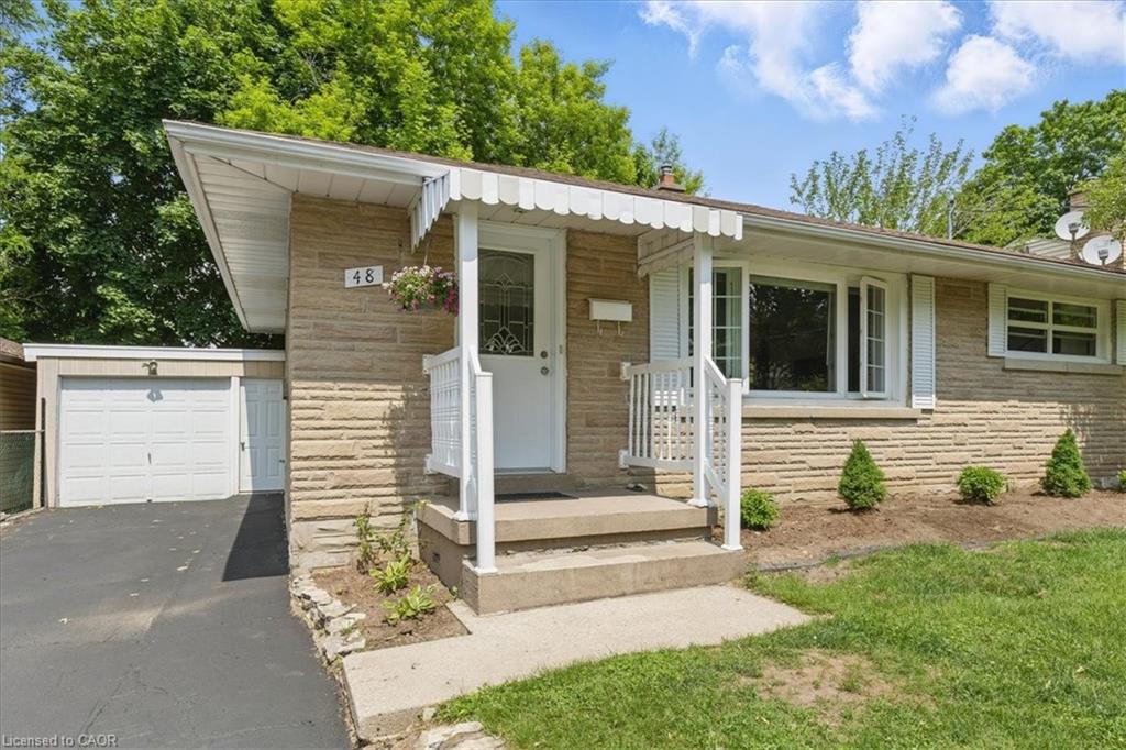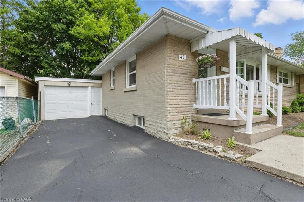 Bungalow Bliss in Kitchener! Welcome to 48 Broadmoor Avenue, a charming and move-in-ready bungalow nestled in a family-friendly neighbourhood in Kitchener. This home offers 3 spacious bedrooms, 2 full bathrooms, and parking for three vehicles plus a single-car garage—plenty of room for your growing family or guests. Step inside to an inviting open-concept living and dining area, filled with natural light from the large front window—an ideal space for both everyday living and entertaining. The galley-style kitchen comes equipped with four appliances and offers direct access to the finished basement or a separate backyard entrance, adding convenience and flexibility. The main floor bathroom features a tub/shower combo—perfect for relaxing soaks or easy bath time with the kids. Downstairs, you’ll find a generously sized rec room, perfect for a kids’ play area, media space, or both. A flex room nearby can easily serve as a home office, gym, or storage area. There’s also a second full bathroom with a walk-in shower for added comfort. Step outside into your fully fenced backyard oasis, complete with a covered patio and a perfect spot for a fire pit—ideal for summer nights and year-round gatherings. Located minutes from Fairview Park Mall, community and fitness centres, schools, and more. With easy access to Highway 7/8 and the 401, commuting and daily errands are a breeze. Don’t miss your chance to own this warm and welcoming home in one of Kitchener’s most convenient locations!