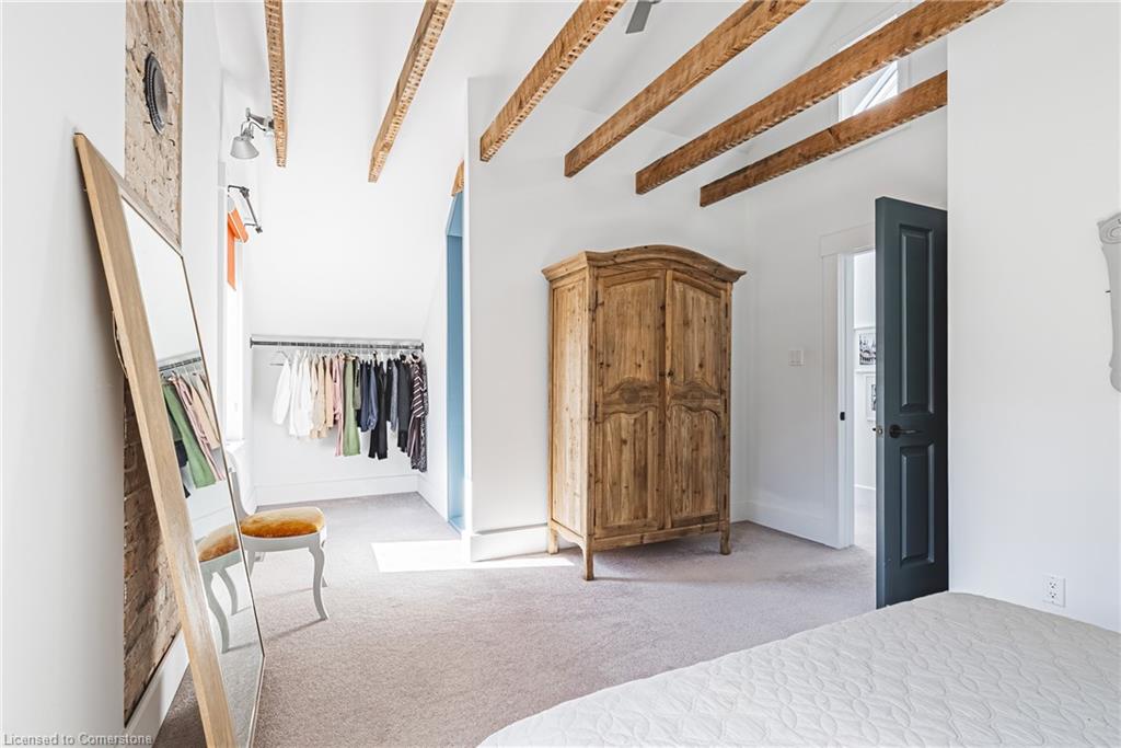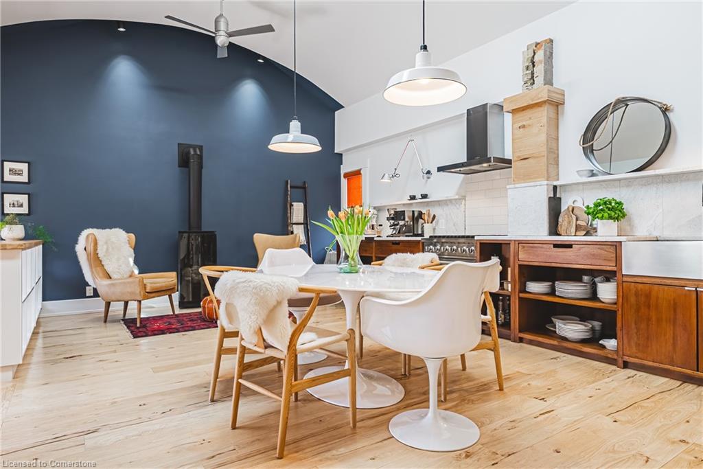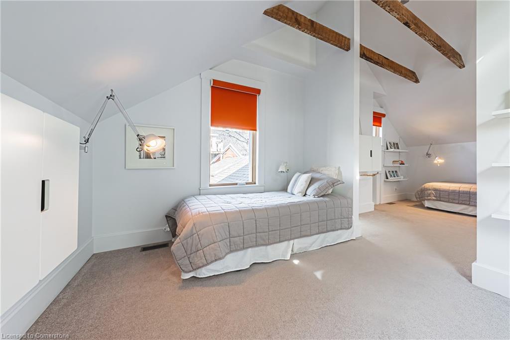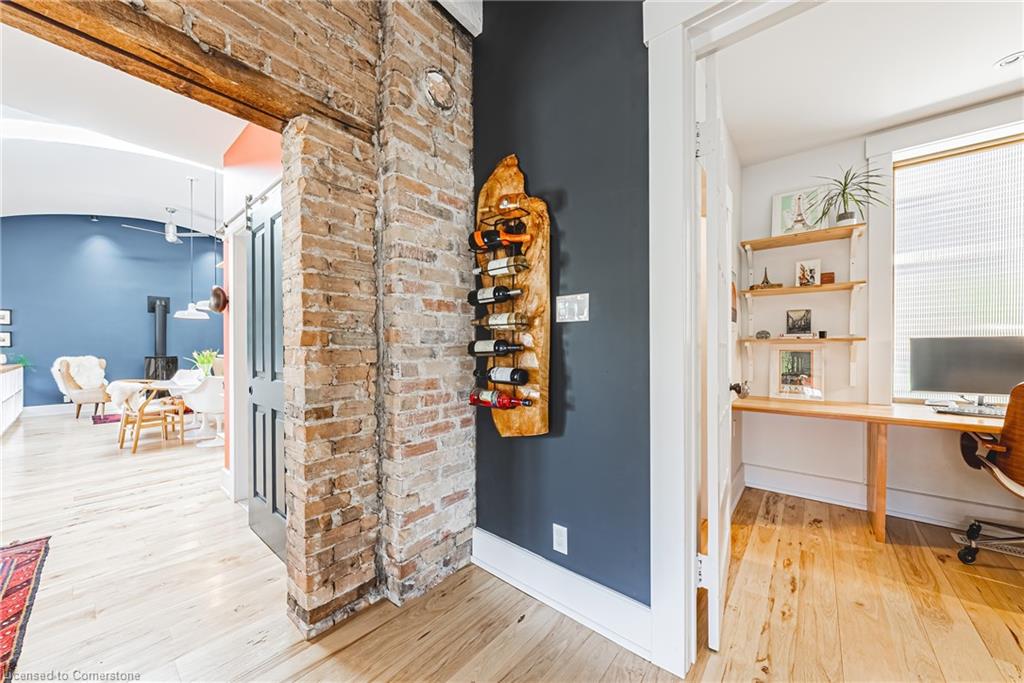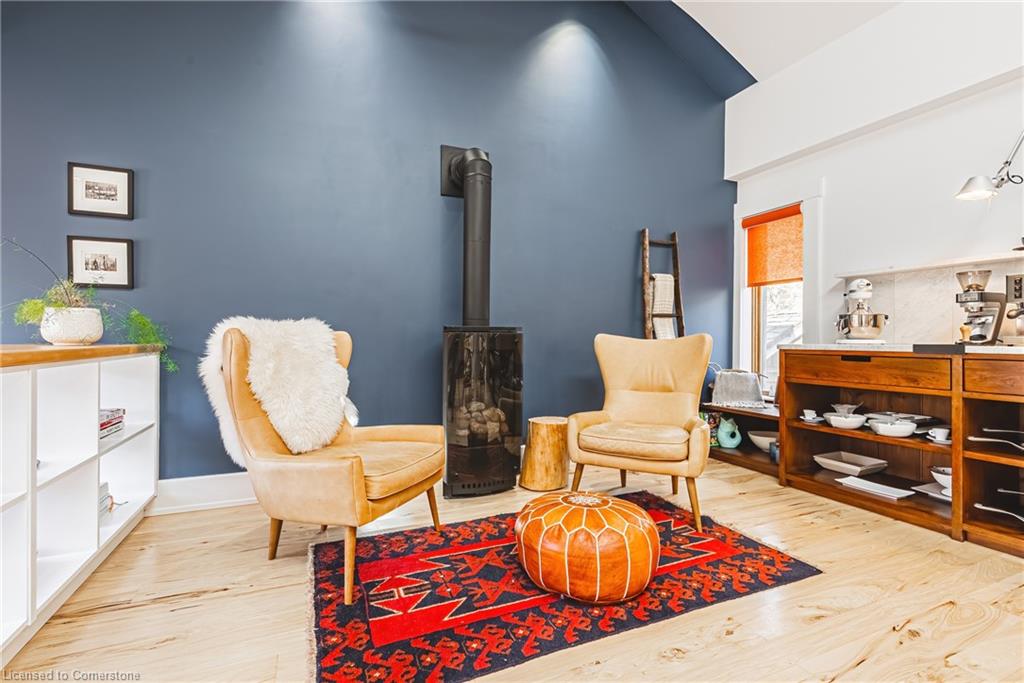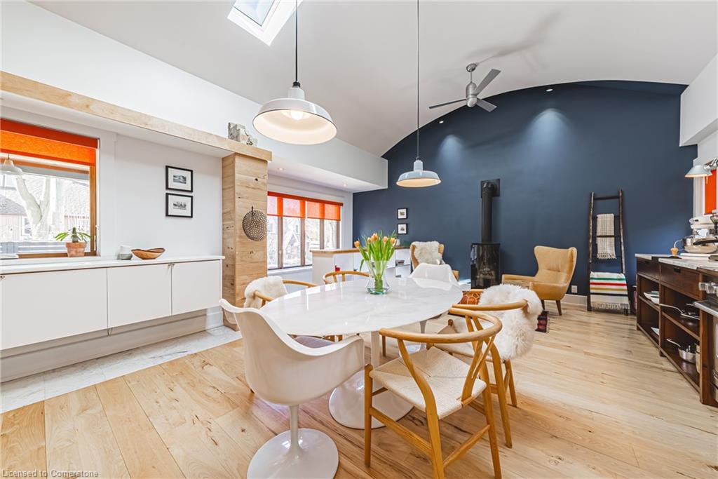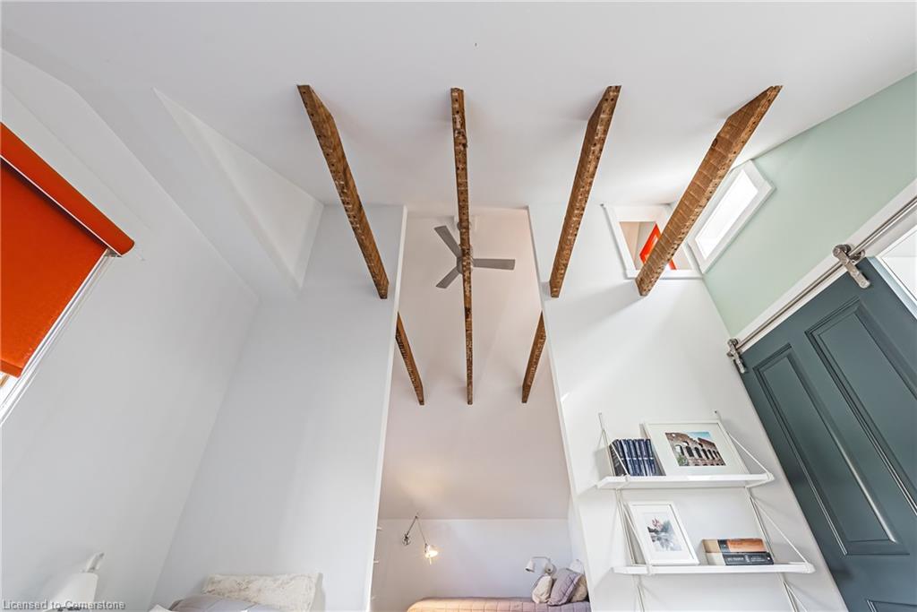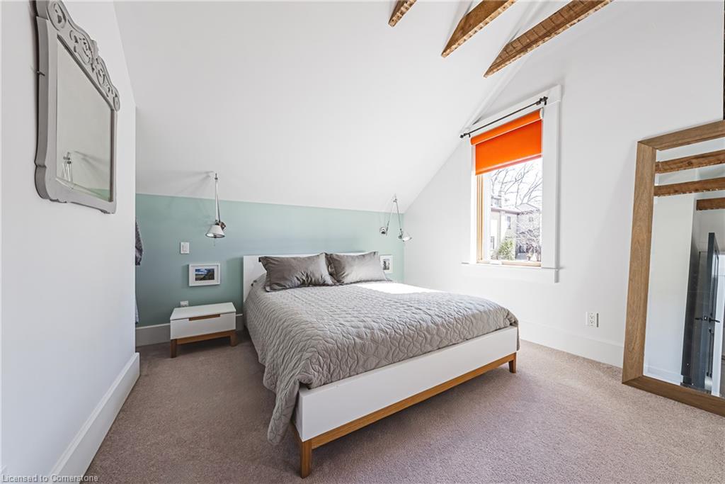 Architectural Gem in Uptown Waterloo – A rare opportunity to own a one-of-a-kind home in the heart of Waterloos Mary Allen neighbourhood. Built in 1886, this property blends historic character with a modern Scandinavian-inspired design across 2,000 sq ft of carefully renovated living space. Exposed original beams and brick, a dramatic curved arched ceiling in the expansive great room, and loft cut-outs in the bedrooms provide aerial views of the living spaces below and the sky above. Hickory flooring and Carrara marble flow throughout the home, complementing its refined design. The heart of this home is the custom, European-inspired kitchen featuring a bespoke unfitted layout and high-end stainless steel appliances (Viking gas range, Liebherr fridge, Miele dishwasher), designed for both style and functionality. Natural light fills the space, enhancing its open, airy feel. The propertys fully landscaped gardens have been recognized for their design and year-round appeal. Thoughtfully planned outdoor spaces offer areas for dining, gathering, and enjoying the changing seasons, seamlessly extending the homes living space into nature. Located in a highly walkable neighbourhood, with a strong sense of community, most errands can be accomplished on foot. This is truly a unique home that stands out not just for its history but for its modern enhancements and unique character. Dont miss the chance to own this exceptional home everyone wants but only you can have.