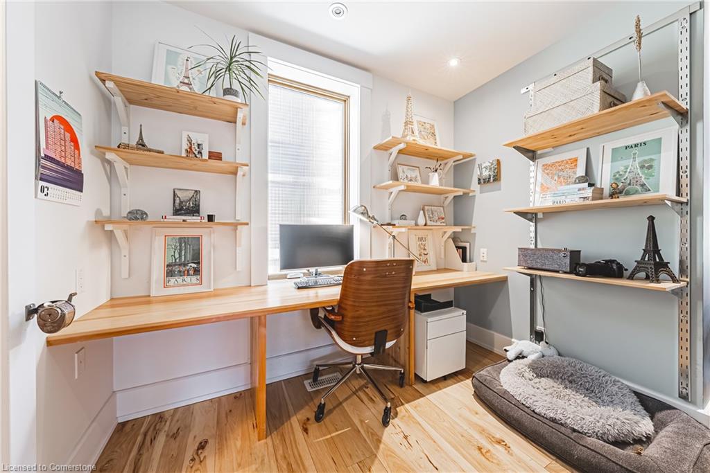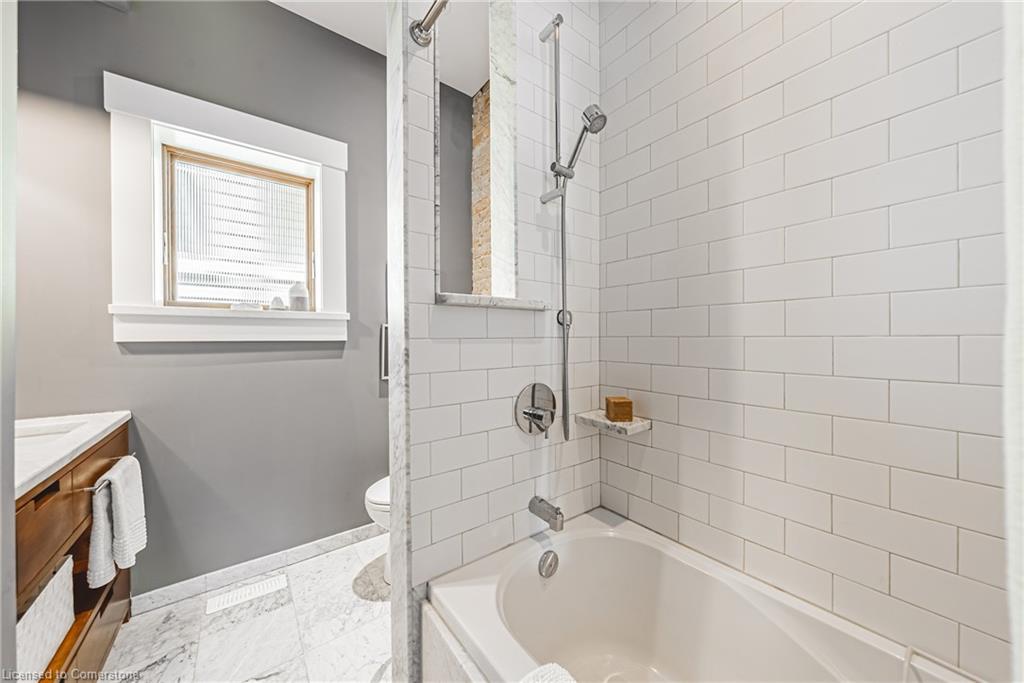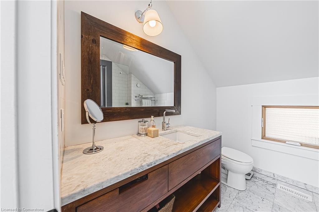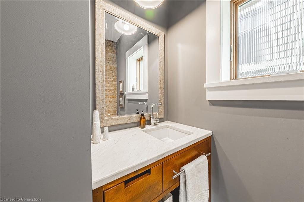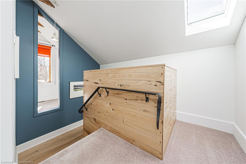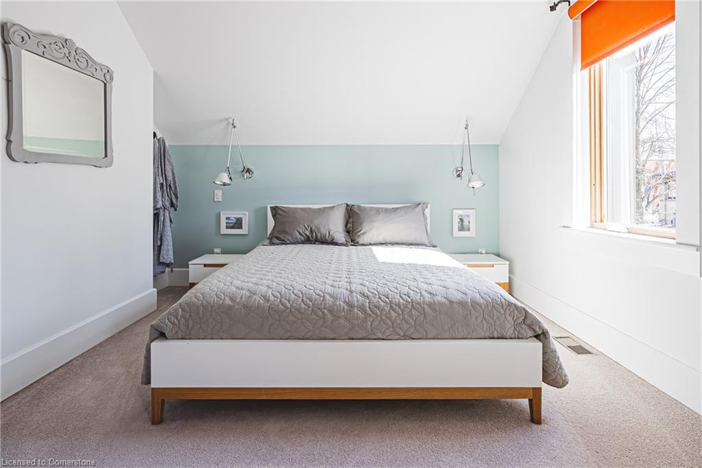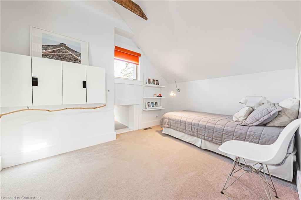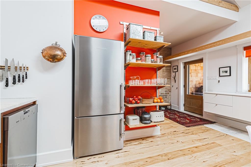 Architectural Gem in Uptown Waterloo – A rare opportunity to own a one-of-a-kind home in the heart of Waterloos Mary Allen neighbourhood. Built in 1886, this property blends historic character with a modern Scandinavian-inspired design across 2,000 sq ft of carefully renovated living space. Exposed original beams and brick, a dramatic curved arched ceiling in the expansive great room, and loft cut-outs in the bedrooms provide aerial views of the living spaces below and the sky above. Hickory flooring and Carrara marble flow throughout the home, complementing its refined design. The heart of this home is the custom, European-inspired kitchen featuring a bespoke unfitted layout and high-end stainless steel appliances (Viking gas range, Liebherr fridge, Miele dishwasher), designed for both style and functionality. Natural light fills the space, enhancing its open, airy feel. The propertys fully landscaped gardens have been recognized for their design and year-round appeal. Thoughtfully planned outdoor spaces offer areas for dining, gathering, and enjoying the changing seasons, seamlessly extending the homes living space into nature. Located in a highly walkable neighbourhood, with a strong sense of community, most errands can be accomplished on foot. This is truly a unique home that stands out not just for its history but for its modern enhancements and unique character. Dont miss the chance to own this exceptional home everyone wants but only you can have.