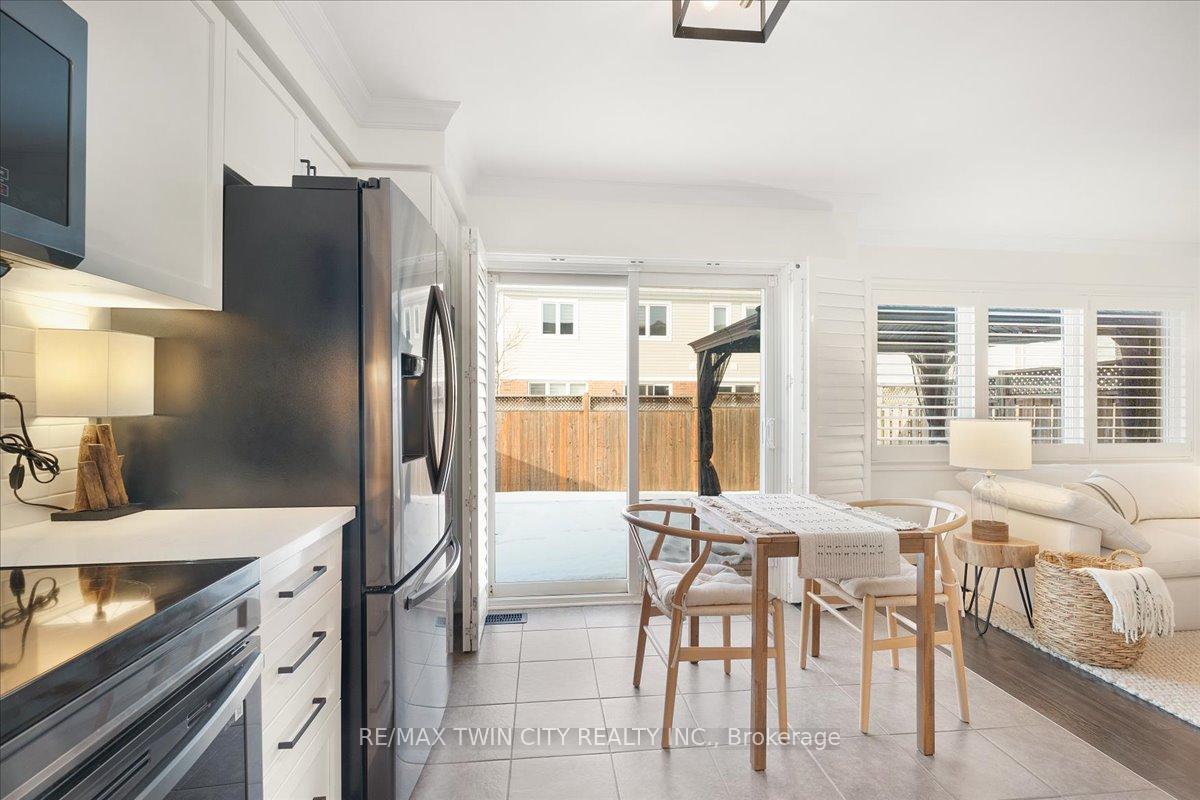 Welcome to this beautifully maintained 3-bedroom, 2.5-bath end-unit townhouse located in the heart of Cambridge. Offering exceptional space, comfort, and style, this move-in-ready home showcases numerous upgrades and refined finishes throughout. The bright open-concept main floor is ideal for both everyday living and entertaining, featuring upgraded laminate flooring throughout all levels, spacious living and dining areas enhanced with elegant crown molding, and timeless California shutters on main-floor. The upgraded kitchen is both stylish and functional, complete with quality countertops, ample cabinetry, a classic subway-tiled backsplash, and upgraded black stainless steel appliances .Upstairs, you’ll find three generously sized bedrooms, including a spacious primary retreat with a private en-suite bath and walk-in closet. The fully finished basement provides valuable additional living space – perfect for a recreation room, home office, gym, or media area, all finished with upgraded laminate flooring for a seamless, modern look. Step outside to your private backyard oasis featuring a beautiful deck and gazebo, ideal for summer gatherings or relaxing evenings outdoors. Additional highlights include a single-car garage with private driveway parking. Conveniently located close to schools, parks, shopping, Highway 401 and major commuter routes, this exceptional home truly checks all the boxes.