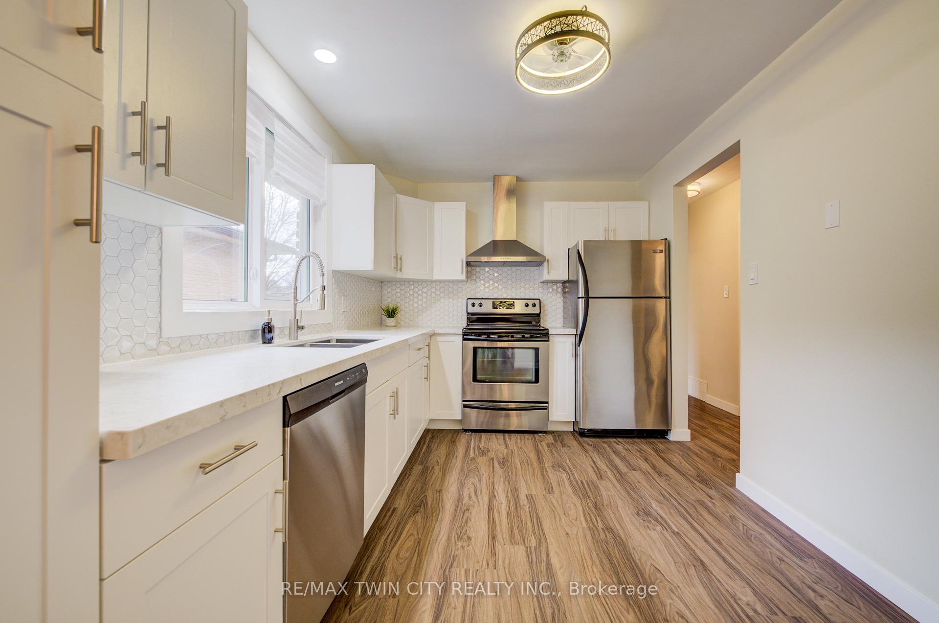 Welcome to this well-maintained 4-bedroom, 2-bath raised all-brick bungalow located on a quiet crescent in a family-friendly West Galt neighborhood. Conveniently close to schools, shopping, parks, and public transit, this home has been lovingly cared for by the same family since 1977 and is truly a rare find. Professionally renovated in 2025, the home features: all new windows, and furnace as of 2025 (bay window 2015) new bedroom, bathroom, and closet doors; a brand-new garage door with opener and new exterior garage entry door; a new 100-amp electrical panel; luxury vinyl plank flooring throughout (no carpet); updated window and baseboard trim; freshly painted interior walls and ceilings; additional blown-in insulation upgraded to R60; all new lighting fixtures; an updated kitchen with a quartz countertops to the kitchen, soft-close cabinets and drawers; and gutter leaf guards for added convenience. The basement is partially finished and offers the potential to add an in-law suite, or large recreation room. With its extensive updates, flexible closing option, and charming location, this move-in-ready home is the perfect opportunity for buyers seeking quality, comfort, and peace of mind.
