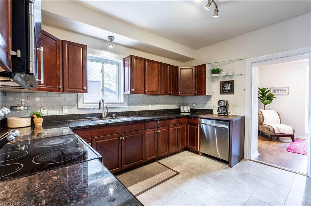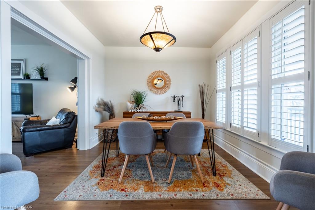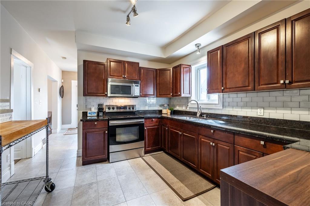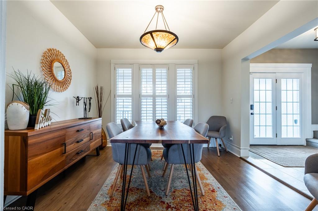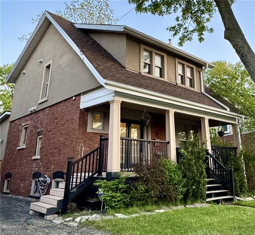 Timeless Century Home with Modern Flair! This beautifully updated circa 1926 home seamlessly blends classic character with today’s comforts. Step inside to discover a surprisingly spacious interior filled with natural light, warm tones, and preserved original details including millwork and California shutters. The main floor offers a stylish kitchen with granite counters, luxury vinyl flooring, stainless steel appliances, an adjoining living and dining room, a 2-piece bath, and a versatile rear addition—ideal for a home office, pantry, or laundry area. Upstairs, you’ll find 3 bedrooms, including a primary bedroom with a private ensuite, plus a well-appointed 4-piece main bath. The fully finished lower level extends your living space with a large rec room and a modern 4-piece bath. Outdoor living shines with a charming covered front porch and a sprawling 18’x30’ deck in the private, fully fenced, mature-treed backyard (50’ x 105.75’). A double-wide driveway accommodates 4+ cars. Updated vinyl windows throughout. Perfectly located just a short walk to the Bruce Trail, James Mountain Stairs, and Keddy Trail, with shopping, schools, hospital, and highway access minutes away. A truly exceptional home—shows 10+++!