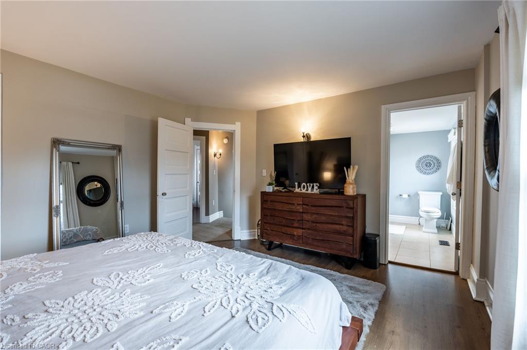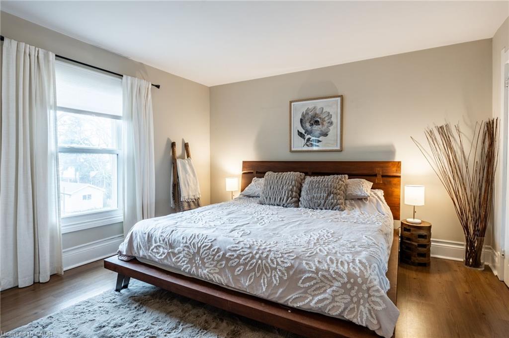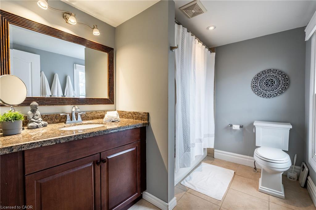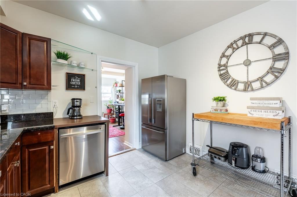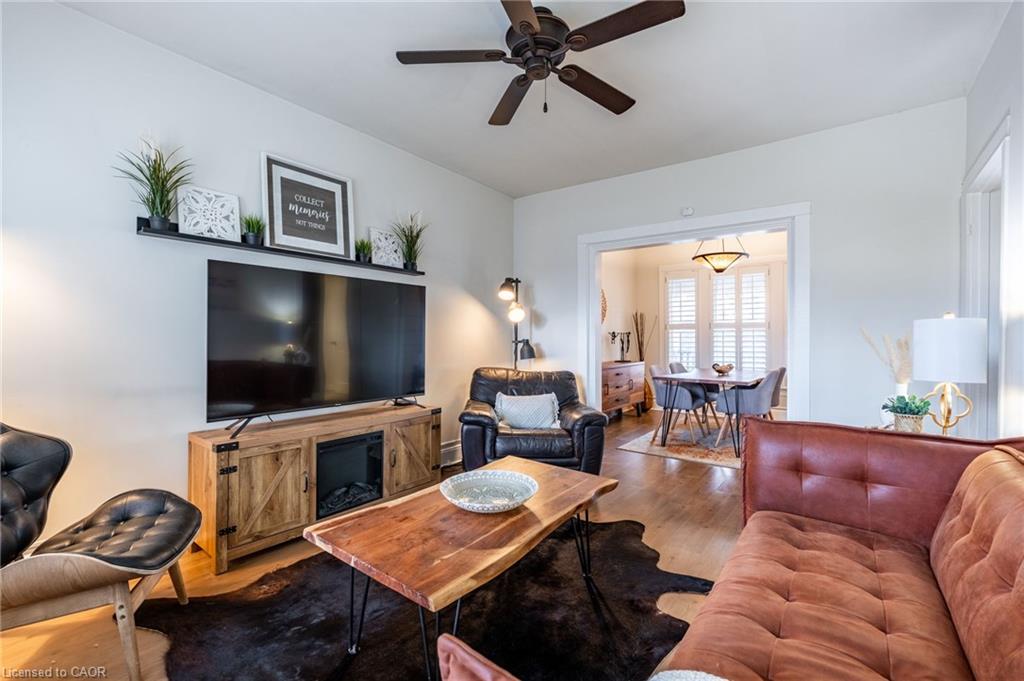 Timeless Century Home with Modern Flair! This beautifully updated circa 1926 home seamlessly blends classic character with today’s comforts. Step inside to discover a surprisingly spacious interior filled with natural light, warm tones, and preserved original details including millwork and California shutters. The main floor offers a stylish kitchen with granite counters, luxury vinyl flooring, stainless steel appliances, an adjoining living and dining room, a 2-piece bath, and a versatile rear addition—ideal for a home office, pantry, or laundry area. Upstairs, you’ll find 3 bedrooms, including a primary bedroom with a private ensuite, plus a well-appointed 4-piece main bath. The fully finished lower level extends your living space with a large rec room and a modern 4-piece bath. Outdoor living shines with a charming covered front porch and a sprawling 18’x30’ deck in the private, fully fenced, mature-treed backyard (50’ x 105.75’). A double-wide driveway accommodates 4+ cars. Updated vinyl windows throughout. Perfectly located just a short walk to the Bruce Trail, James Mountain Stairs, and Keddy Trail, with shopping, schools, hospital, and highway access minutes away. A truly exceptional home—shows 10+++!