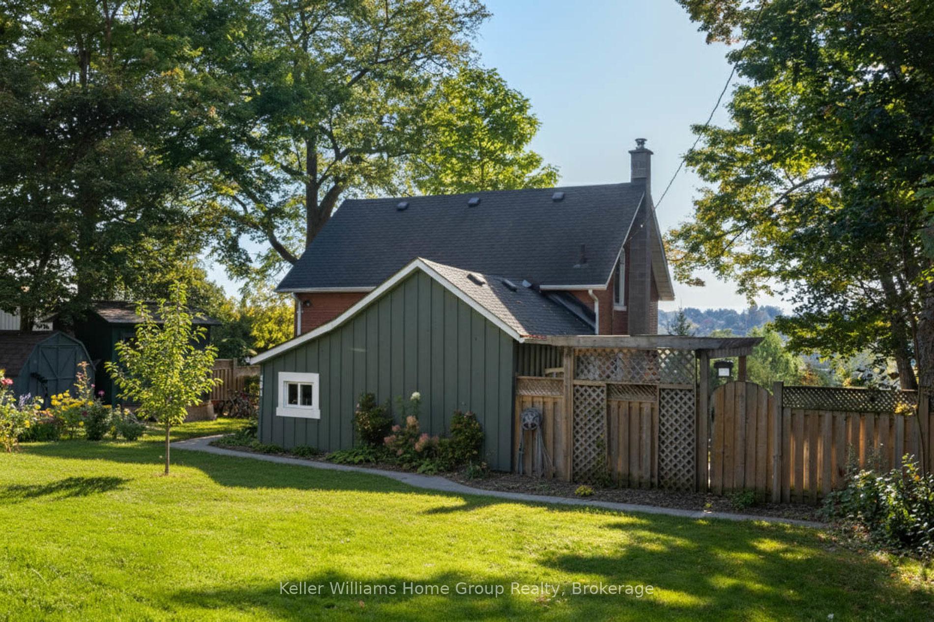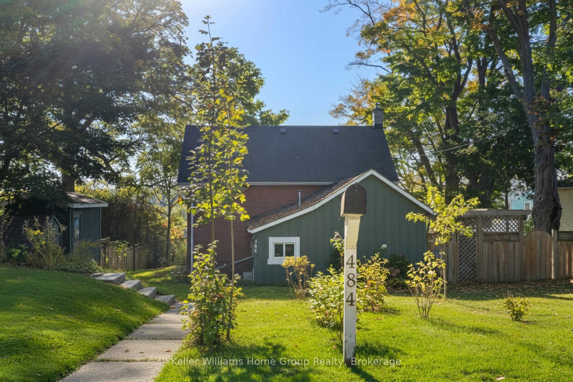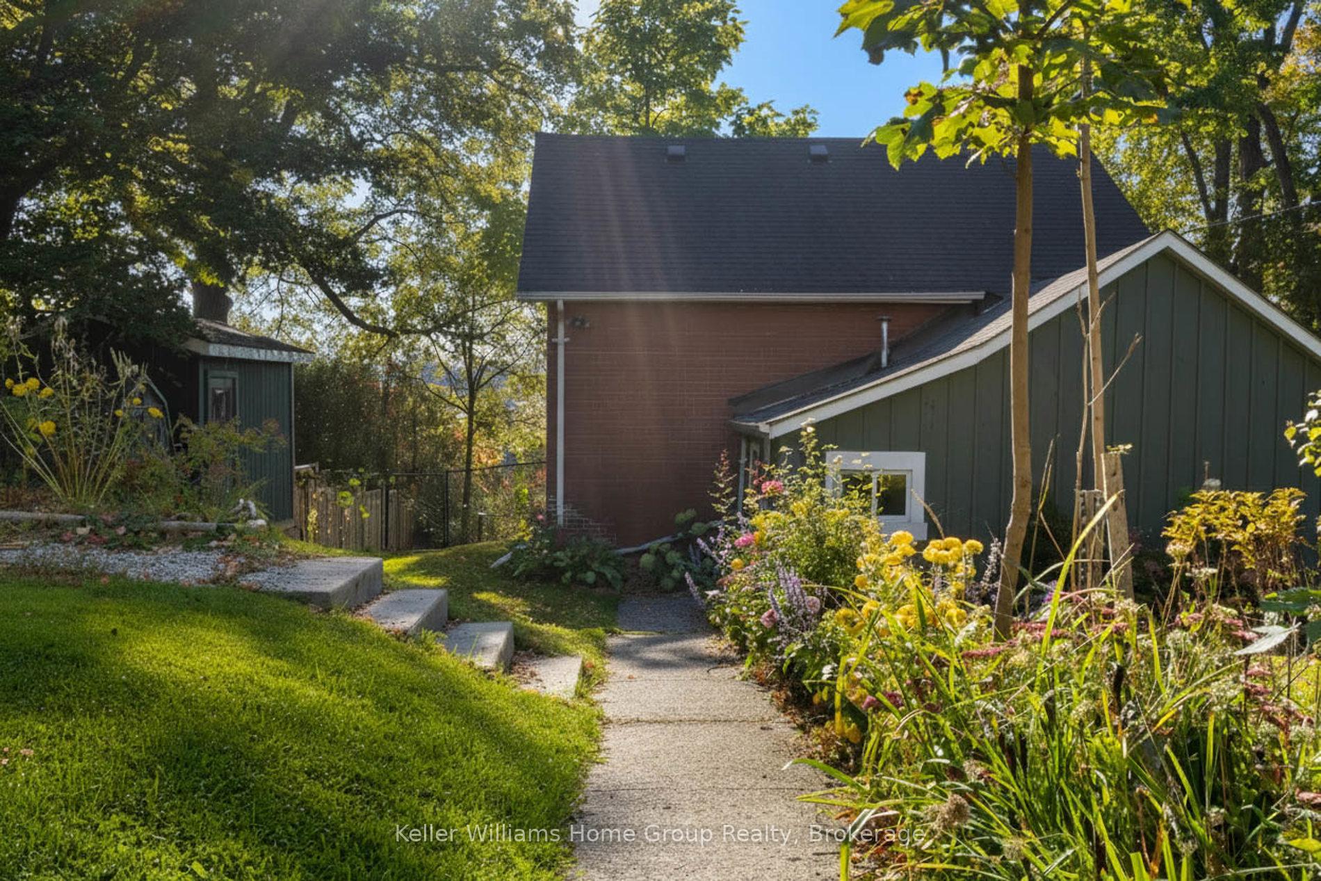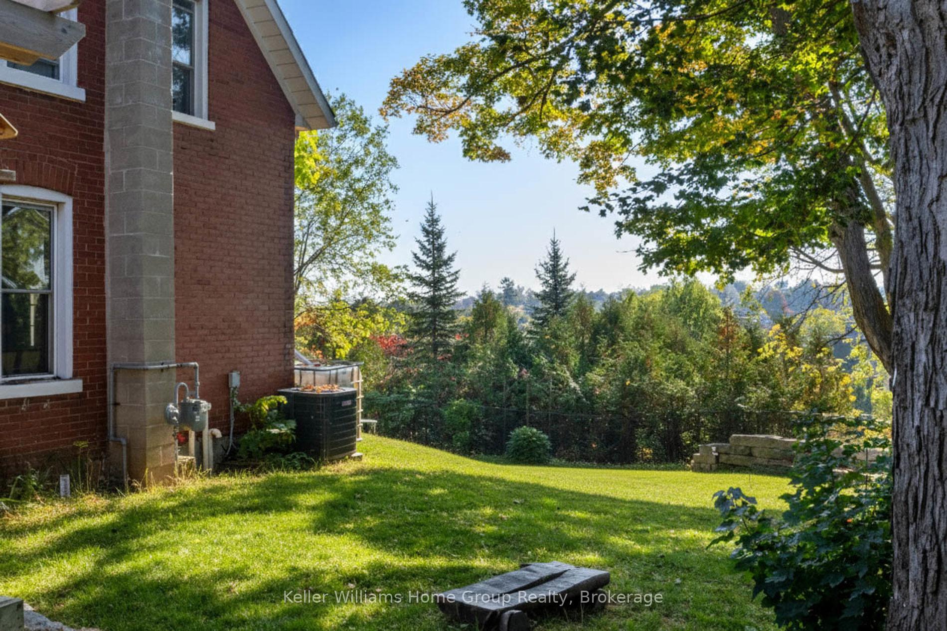 Welcome to 484 St Patrick St E, Fergus. A classic red brick beauty in a truly privileged location, just steps from downtown Fergus and set on an impressive 82.5 x 127 ft lot. Enjoy your morning coffee or an evening glass of wine from the rear porch, taking in a bird’s-eye view of the professionally landscaped backyard. Designed for entertaining, the yard features an outdoor firepit framed with armour stone, a fully fenced layout and a newly constructed 12′ x 8′ storage shed, perfect for hosting family and friends. Inside, the main floor offers a functional and welcoming layout with main floor laundry and a bright kitchen featuring patio door access to the side deck with pergola, ideal for summer BBQs. High ceilings and large windows flood the home with natural light. The spacious living and dining rooms provide plenty of room for gatherings and include access to the rear porch. Upstairs, you’ll find original hardwood flooring in excellent condition throughout the hallway and all three bedrooms. This level also includes a 4-piece bathroom and a charming reading nook overlooking the backyard, a perfect place to unwind. Location, Location, Location. Situated in a beautiful, historic neighbourhood with mature trees offering privacy, this home is just a short walk to downtown Fergus, local schools, parks, riverside restaurants and boutique shops. A dream setting for families, with a large backyard and a fantastic playground just steps away. Don’t miss the opportunity to make 484 St Patrick St E your new home.