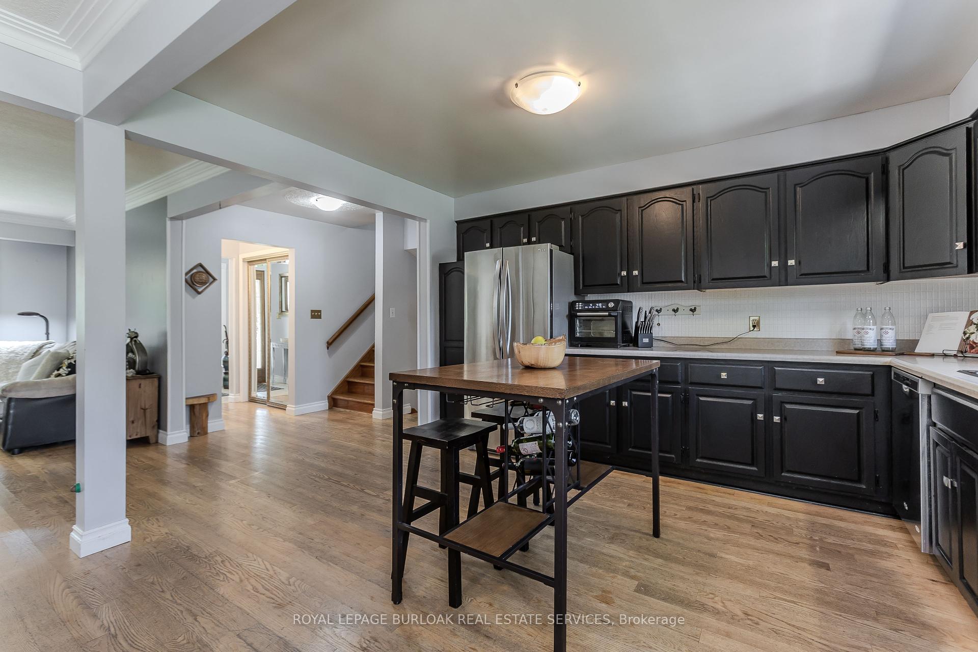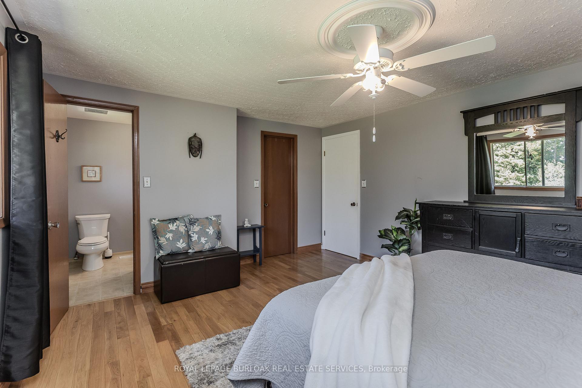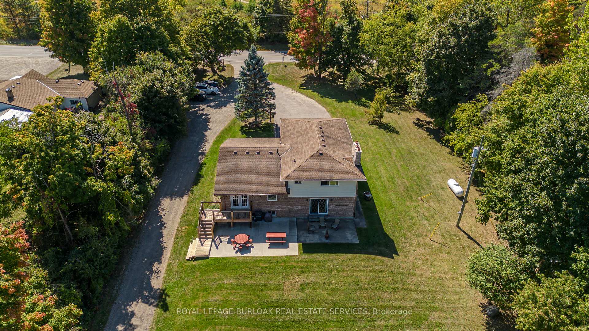 Set on a rare just over 1.6-acre lot, with an expansive commercially zoned workshop, this property offers endless potential for families seeking both a welcoming home and unique investment or business opportunities. With over 3040sq. ft. of total living space across a 5-level side-split, it blends lifestyle, functionality, and future value. Perfectly located just minutes from Guelph, Eden Mills, Rockwood, and Hwy 401, it combines privacy and tranquility with exceptional convenience. The front exterior features a landscaped setting with mature trees, a welcoming porch, and a driveway accommodating 20+ vehicles. Inside, the main floor shines with hardwood floors, an open-concept design, and a bright eat-in kitchen with stainless steel appliances, ample cabinetry, tile backsplash, and over-sink window. The dining room, finished with crown moulding and French door walkout, leads to an elevated deck, while the living room offers a fireplace and bay window for relaxed family gatherings. The upper level hosts a spacious primary suite with walk-in closet and 3-piece ensuite, plus three additional bedrooms and a 4-piece bathroom. On the lower levels, enjoy a family room with brick-surround fireplace, convenient laundry, a 2-piece bath, and a versatile rec room with ample storageideal for play, fitness, or hobbies. The backyard is the true highlight: zoned for commercial use and designed with families in mind, it features a fire pit, concrete patio, elevated deck, and expansive green space. For those with entrepreneurial vision, the 80 x 40 (3,200 sq. ft.) fully insulated and heated shop is unmatched equipped with water, separate hydro service, and 600V, 240V, and 110V power, plus a laser CNC machine. This is more than a family home- its a lifestyle property offering comfort, privacy, and commercial flexibility, all within minutes of everyday amenities.