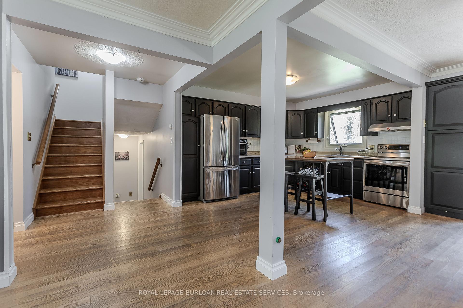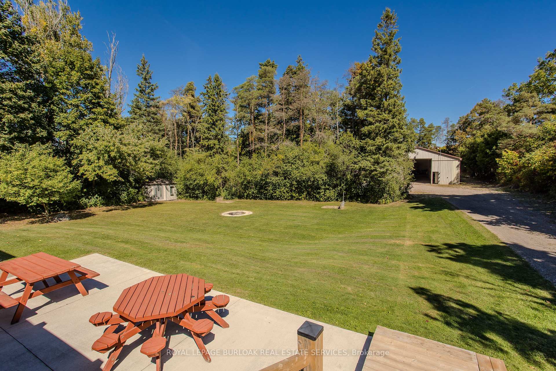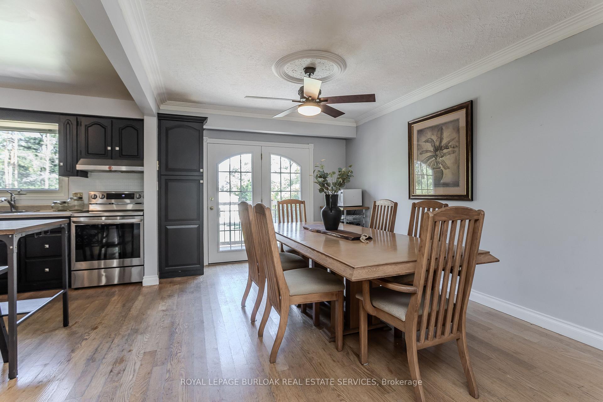 Set on a rare just over 1.6-acre lot, with an expansive commercially zoned workshop, this property offers endless potential for families seeking both a welcoming home and unique investment or business opportunities. With over 3040sq. ft. of total living space across a 5-level side-split, it blends lifestyle, functionality, and future value. Perfectly located just minutes from Guelph, Eden Mills, Rockwood, and Hwy 401, it combines privacy and tranquility with exceptional convenience. The front exterior features a landscaped setting with mature trees, a welcoming porch, and a driveway accommodating 20+ vehicles. Inside, the main floor shines with hardwood floors, an open-concept design, and a bright eat-in kitchen with stainless steel appliances, ample cabinetry, tile backsplash, and over-sink window. The dining room, finished with crown moulding and French door walkout, leads to an elevated deck, while the living room offers a fireplace and bay window for relaxed family gatherings. The upper level hosts a spacious primary suite with walk-in closet and 3-piece ensuite, plus three additional bedrooms and a 4-piece bathroom. On the lower levels, enjoy a family room with brick-surround fireplace, convenient laundry, a 2-piece bath, and a versatile rec room with ample storageideal for play, fitness, or hobbies. The backyard is the true highlight: zoned for commercial use and designed with families in mind, it features a fire pit, concrete patio, elevated deck, and expansive green space. For those with entrepreneurial vision, the 80 x 40 (3,200 sq. ft.) fully insulated and heated shop is unmatched equipped with water, separate hydro service, and 600V, 240V, and 110V power, plus a laser CNC machine. This is more than a family home- its a lifestyle property offering comfort, privacy, and commercial flexibility, all within minutes of everyday amenities.