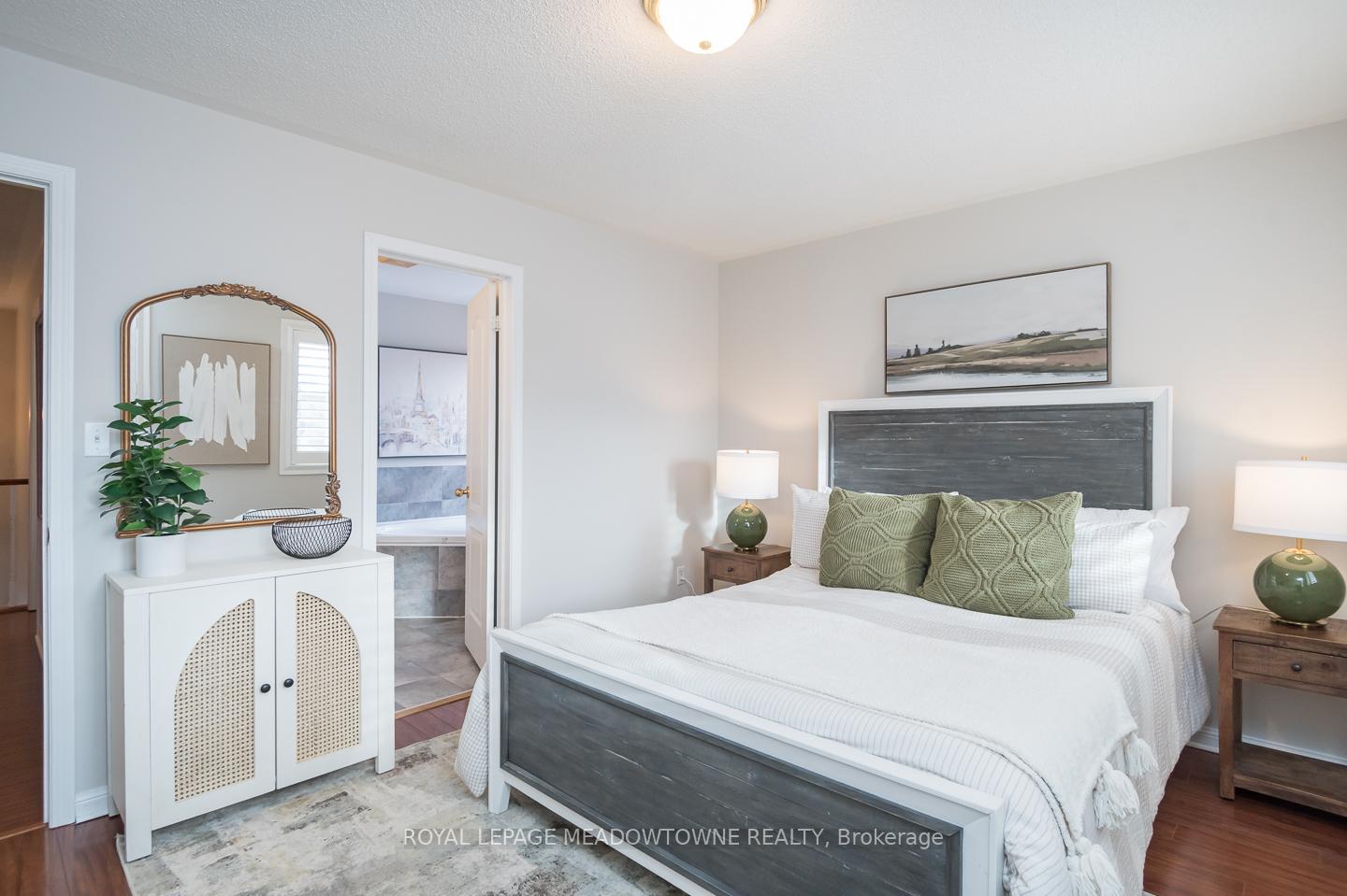 Welcome home! This detached property offers 5 total bedrooms and is perfectly situated within walking distance of 3 great schools, parks, and restaurants. A short drive to the dog park, highway 401 & community center. Offering 1800sqft, this freshly painted home features newly upgraded lighting, kitchen cabinets, quartz countertops, and plenty of storage space perfect for culinary enthusiasts. The floor plan flows into the dining and living areas, creating the perfect space to entertain. Bonus!! Some newer windows and California shutters throughout. The home offers four generously sized bedrooms, providing ample space for family, guests or a home office setup. The primary suite is a complete with an ensuite bathroom and plenty of closet space. The finished basement with newly installed vinyl flooring, offers an additional bedroom, full bathroom and living space perfect for a recreation room, home theater, or gym. Outside, enjoy a backyard retreat, ideal for outdoor dining, relaxation, or playtime with children and pets. The family-friendly neighborhood provides a large park within walking distance, ensuring an active and fulfilling lifestyle. Don’t miss the opportunity to own this great home and experience all it has to offer!
