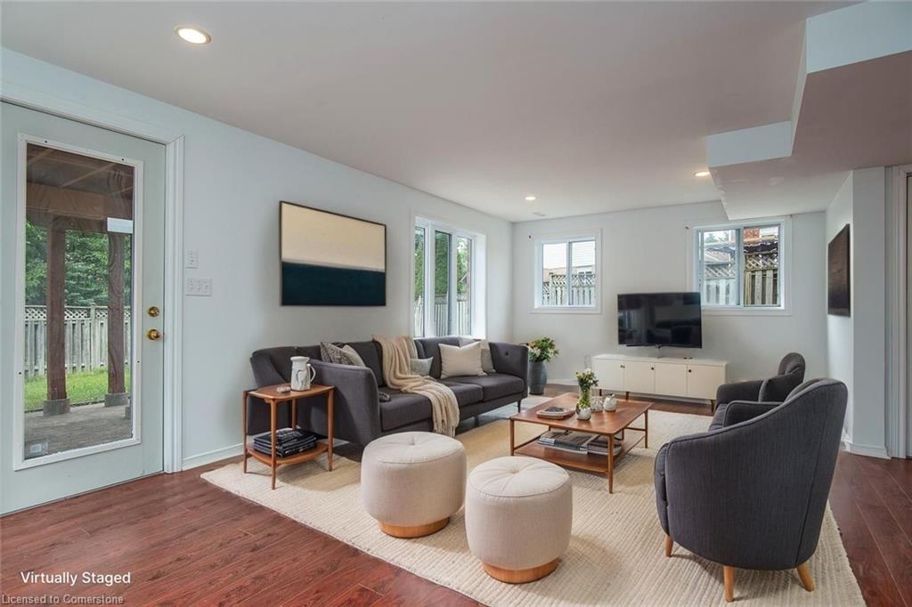 Tucked away in a quiet cul-de-sac in one of Guelph’s most desirable neighbourhoods, this well-maintained detached home sits on a premium pie-shaped lot with a huge private backyard. This beautiful home offers three spacious bedrooms, 2.5 bathrooms, a walkout basement, and a double garage. It is carpet-free throughout and features a bright, open-concept main floor with hardwood flooring connecting a sun-filled living room, dining room, and kitchen. A standout feature is the walkout from the dining room to the patio deck and the large backyard—ideal for outdoor entertaining, BBQs, or simply relaxing in peaceful seclusion.
