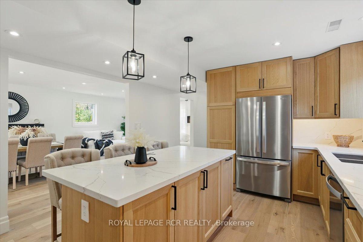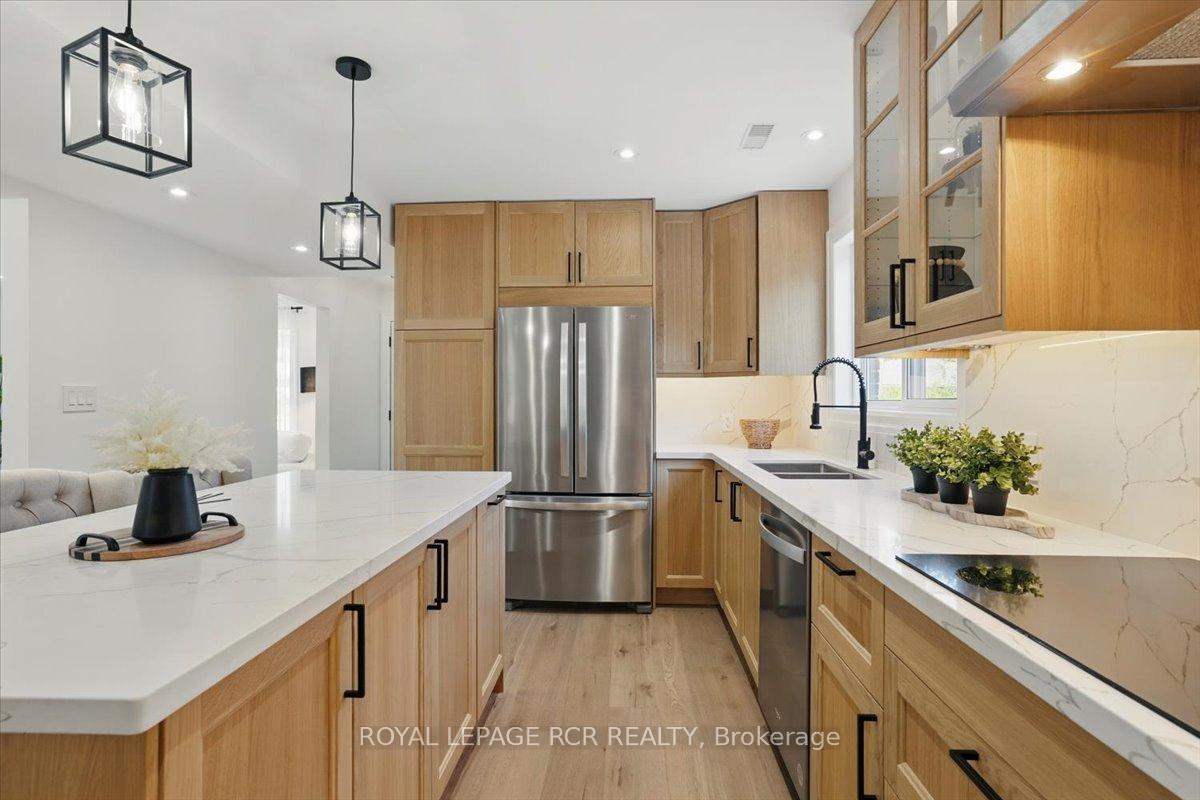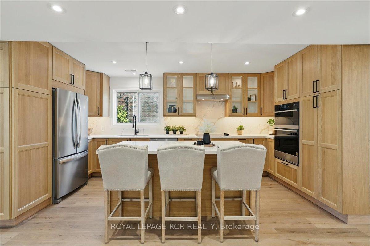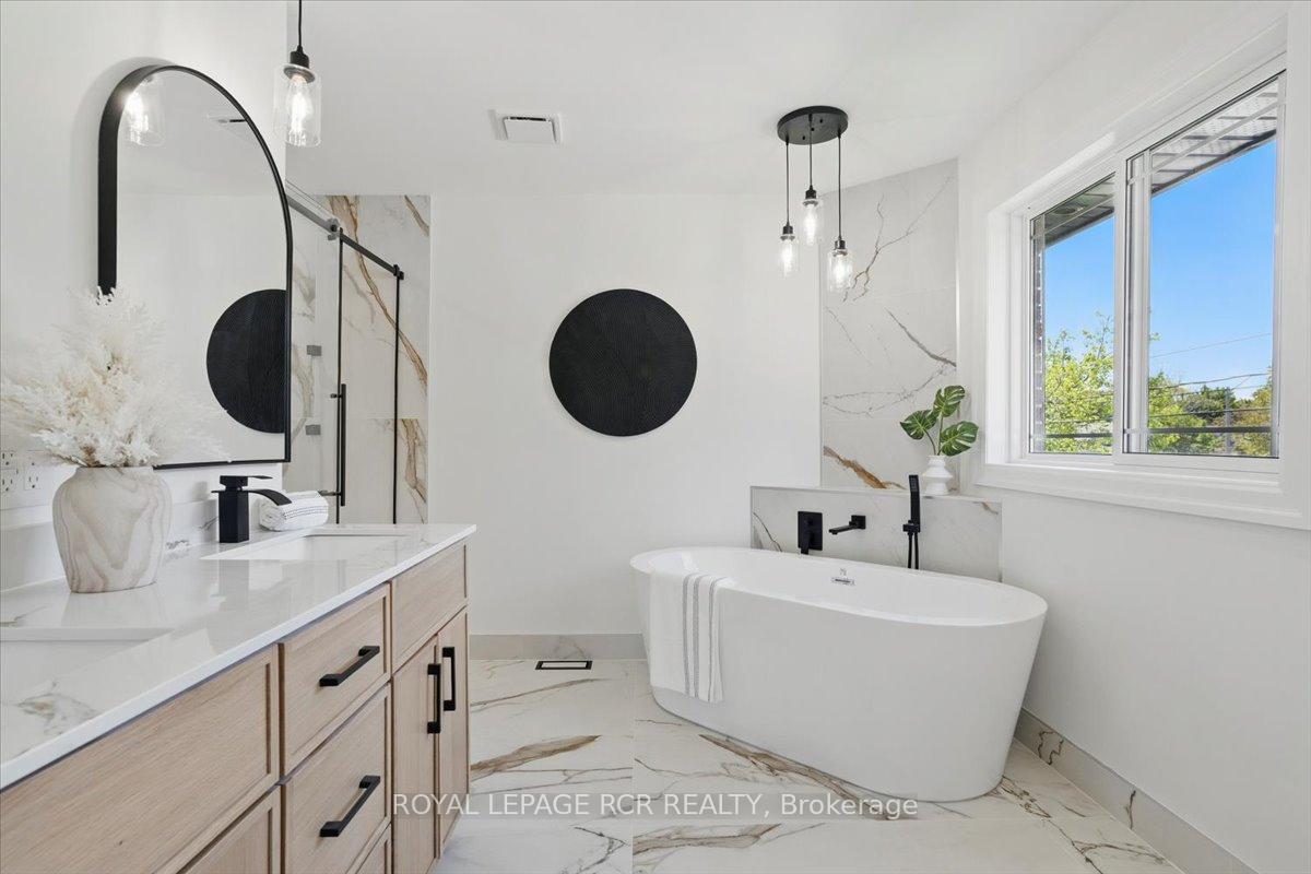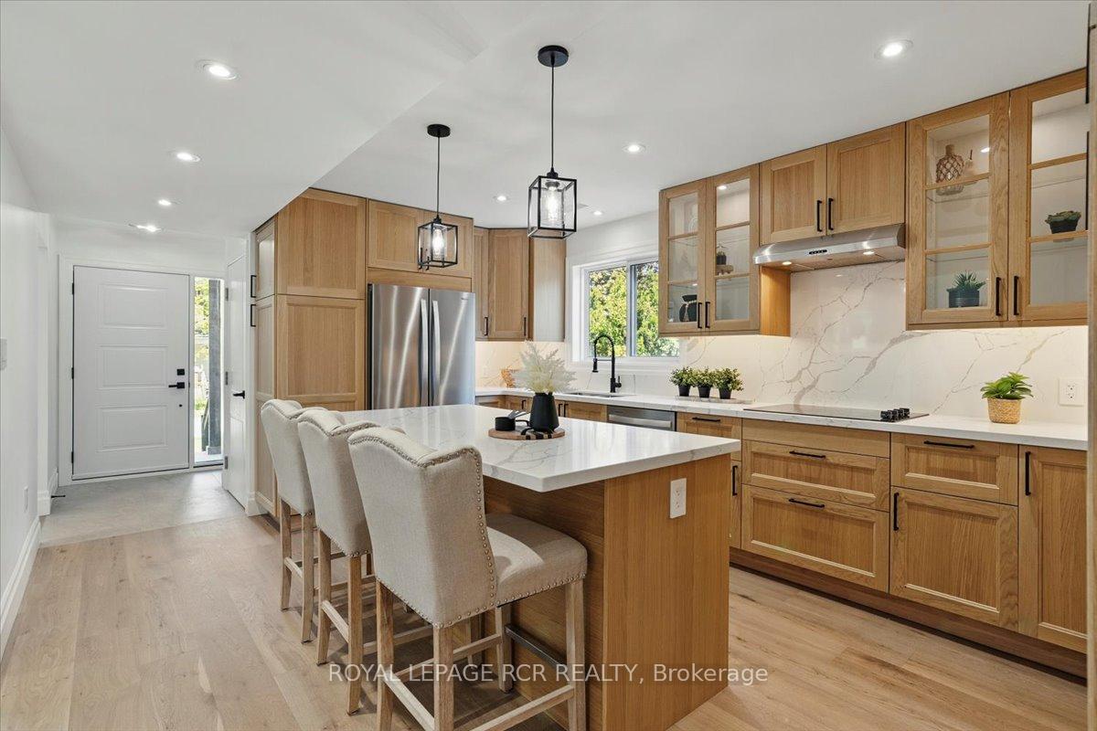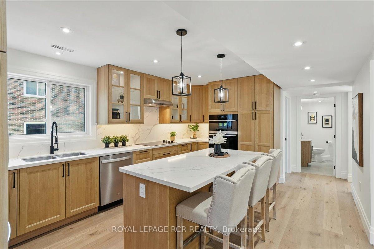 Step into luxury with this beautifully renovated home, transformed from top to bottom, leaving nothing to do but move in & enjoy! From the moment you walk through the front door, you’re greeted with a bright & airy atmosphere & gorgeous engineered hardwood flooring that flows seamlessly through the home. At the heart of the home is a custom-designed kitchen, featuring a large centre island w/breakfast bar, elegant pendant lighting, & warm cabinetry w/under-cabinet lighting. The open-concept layout makes entertaining effortless, with a formal sitting area, dining area, & living rm, all bathed in natural light from a stunning picture window. The dining area is an entertainer’s dream, featuring a sleek electric fireplace & a stylish dry bar w/floating wood shelves enhanced by built-in lighting & built-in bar fridge. At the back of the home, the spacious living rm offers indoor-outdoor living w/a patio door leading to the back deck. A main-level bdrm/office & 2-pce powder rm complete this floor. Upstairs, the primary suite is a true retreat, featuring a vaulted ceiling, two walk-in closets, and an elegant 5-pce ensuite. This spa-inspired ensuite includes a double vanity, a soaker tub, heated floor & a stunning walk-in shower with a custom lighted niche, rain shower head, and body jets. Down the hall, you’ll find 2 addit’l bdrms, a 4-pce bathroom, & convenient upper-level laundry. The fully finished lower level is a fantastic bonus, offering a legal apartment w/separate entrance, full-size eat-in kitchen, spacious living rm, a large bdrm w/2 closets & an egress window, & a 4-pce bathroom w/stackable laundry. Whether for extended family, guests, or potential rental income, this space offers incredible flexibility. With parking for 6 vehicles plus a detached 2-car garage, this home is tucked away in a well-established neighbourhood & offers modern living in a timeless setting. Paved driveway (2025), New sod (2025)
